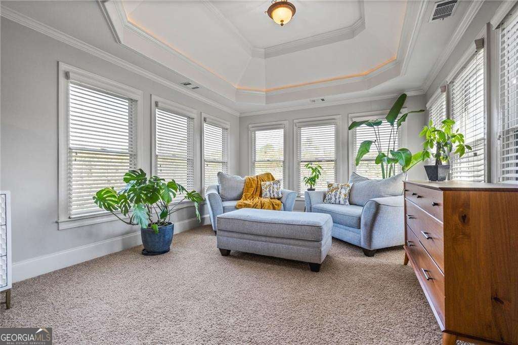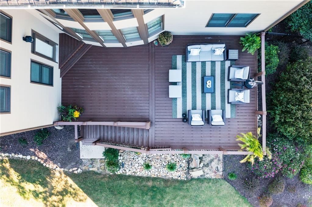 A Masterpiece of Luxury Living - Impeccably Renovated and Designed to Perfection. Experience refined elegance in this completely renovated, June 2025, estate home, where timeless architecture meets modern sophistication. Nestled on a beautifully landscaped 1-acre lot with new aluminum fencing, this six bedroom, five bathroom residence showcases extraordinary craftsmanship and thoughtful design at every turn. From the moment you arrive, the three-sided brick and stone exterior and three-car garage hint at the grandeur within. Step inside to discover an interior defined by new site-finished hardwood floors, exquisite trim work, and plantation shutters throughout. The dramatic two-story living room with a sweeping curved wall of windows floods the home with natural light and creates an inspiring sense of space. At the heart of the home lies the brand-new custom kitchen, a culinary work of art completed less than three months ago. Every detail has been meticulously curated - from the ceiling-height cabinetry and built-in beverage station with wine cooler to the solid quartz backsplash and a magnificent sage green island with quartz countertop and seating for the entire family. Elegant pendant lighting and soft-close cabinetry complete this showpiece kitchen, designed for both everyday living and entertaining in style. The main level also features an elegant dining room with coffered ceiling, a richly appointed library/office with a custom wall treatments, and a spacious guest suite with full bath. Upstairs, the primary suite is a serene sanctuary, featuring a lighted tray ceiling, private fireplace, and tranquil sitting area. The completely redesigned spa-inspired bathroom is a vision of luxury, with custom cabinetry, a freestanding soaking tub, a glass-enclosed walk-in shower, and a designer tile surround. A wall of linen cabinets and an expansive walk-in dressing room provide both beauty and function. Three additional bedrooms - one en suite and two sharing a Jack-and-Jill bath - offer vaulted ceilings and exceptional comfort. A convenient upstairs laundry room with utility sink completes the upper level. The finished terrace level is an entertainers dream, featuring stone columns, tray ceilings with beams, a custom wet bar with full-sized refrigerator, built-in sound system, and versatile living spaces for media, fitness, and a guest suite with French doors lend access to the private patio. Step outside to enjoy breathtaking views from the expansive TREX deck or relax on the terrace level patio, both ideal for entertaining or quiet evenings surrounded by nature. Additional upgrades include a 2023 17-SEER HVAC system, new tankless water heater, expanded septic fields for seven-bedroom capacity! Located within an active swim and tennis community, this home perfectly balances luxury and livability - a rare combination of sophistication, comfort, and thoughtful design. Though lovingly renovated as a forever home, the sellers relocation to Florida offers a once-in-a-lifetime opportunity to make this exquisite property your own.