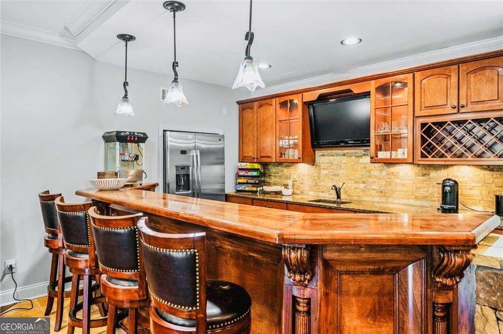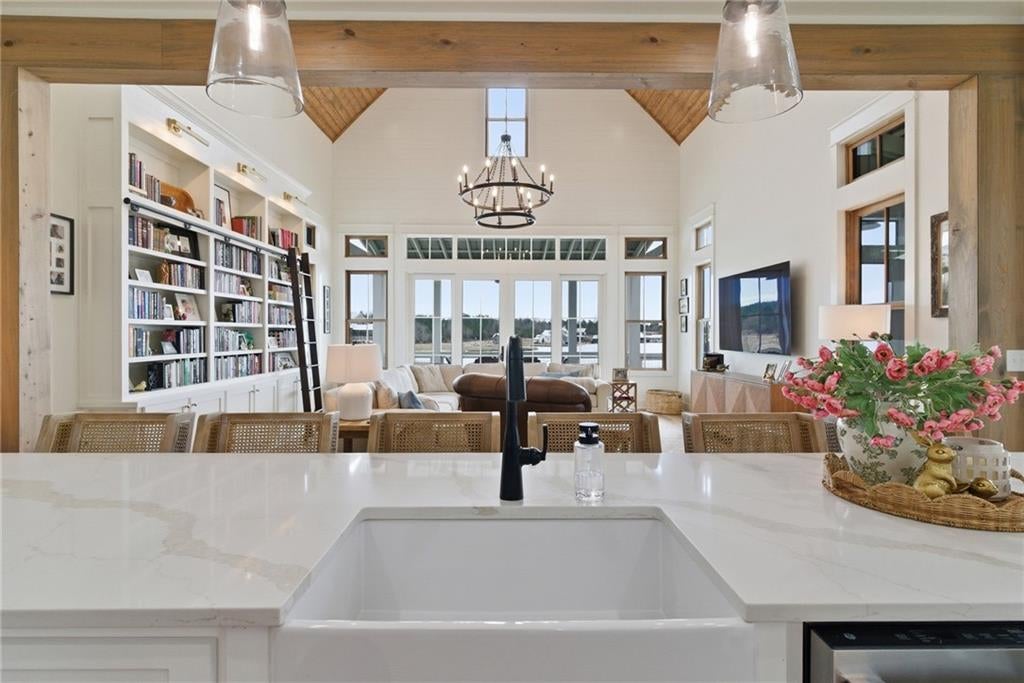 A Masterpiece of Luxury Living Impeccably Renovated and Designed to Perfection. Experience refined elegance in this completely renovated, June 2025, estate home, where timeless architecture meets modern sophistication. Nestled on a beautifully landscaped 1-acre lot with new aluminum fencing, this six bedroom, five bathroom residence showcases extraordinary craftsmanship and thoughtful design at every turn. From the moment you arrive, the three-sided brick and stone exterior and three-car garage hint at the grandeur within. Step inside to discover an interior defined by new site-finished hardwood floors, exquisite trim work, and plantation shutters throughout. The dramatic two-story living room with a sweeping curved wall of windows floods the home with natural light and creates an inspiring sense of space. At the heart of the home lies the brand-new custom kitchen, a culinary work of art completed less than three months ago. Every detail has been meticulously curated from the ceiling-height cabinetry and built-in beverage station with wine cooler to the solid quartz backsplash and a magnificent sage green island with quartz countertop and seating for the entire family. Elegant pendant lighting and soft-close cabinetry complete this showpiece kitchen, designed for both everyday living and entertaining in style. The main level also features an elegant dining room with coffered ceiling, a richly appointed library/office with a custom wall treatments, and a spacious guest suite with full bath. Upstairs, the primary suite is a serene sanctuary, featuring a lighted tray ceiling, private fireplace, and tranquil sitting area. The completely redesigned spa-inspired bathroom is a vision of luxury, with custom cabinetry, a freestanding soaking tub, a glass-enclosed walk-in shower, and a designer tile surround. A wall of linen cabinets and an expansive walk-in dressing room provide both beauty and function. Three additional bedrooms one en suite and two sharing a Jack-and-Jill bath offer vaulted ceilings and exceptional comfort. A convenient upstairs laundry room with utility sink completes the upper level. The finished terrace level is an entertainers dream, featuring stone columns, tray ceilings with beams, a custom wet bar with full-sized refrigerator, built-in sound system, and versatile living spaces for media, fitness, and a guest suite with French doors lend access to the private patio. Step outside to enjoy breathtaking views from the expansive TREX deck or relax on the terrace level patio, both ideal for entertaining or quiet evenings surrounded by nature. Additional upgrades include a 2023 17-SEER HVAC system, new tankless water heater, expanded septic fields for seven-bedroom capacity! Located within an active swim and tennis community, this home perfectly balances luxury and livability a rare combination of sophistication, comfort, and thoughtful design. Though lovingly renovated as a forever home, the sellers relocation to Florida offers a once-in-a-lifetime opportunity to make this exquisite property your own.