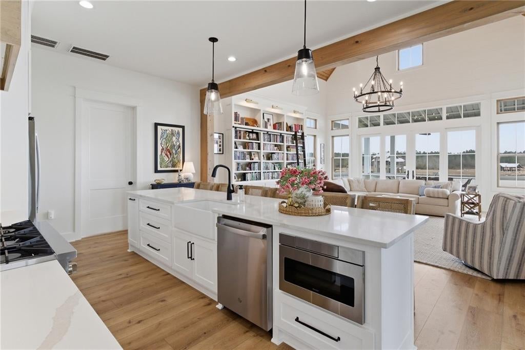 Louisiana Buyers - Your Lake escape is closer than you think! Just 90 minutes from New Orleans, this stunning Big Bay Lake home offers breathtaking sunset views, 2,564 feet of living space, and 2,823 sq ft of porches and decks right over the water. Enjoy fireplaces, boat and jet ski slips, quartz counter. The open-concept kitchen features an oversized quartz island, upgraded appliances and lighting, and panoramic water views from nearly every angle. Also, on the main level: a butlers pantry, laundry room, half bath, and primary suite. With porch access from the living room, kitchen, and primary bedroom, youre never more than a few steps from the water. The screened porch just off the kitchen is already plumbed for an outdoor kitchen. Upstairs, a large bedroom with an adjoining upscale bath provides a private retreat for guests or family. Luxury vinyl plank flooring runs throughout the entire home ideal for easy lake living. The current owners are the original owners and have thoughtfully enhanced the property with numerous upgrades, including a striking custom library wall with rolling ladder, the addition of the butlers pantry, electronic Roman shades, upgraded landscaping, and more. Located just 30 minutes from Hattiesburg and 90 minutes from New Orleans, this home offers both convenience and escape. Big Bay Lake is a 1,000-acre private lake with 21 miles of shoreline inside a gated community featuring a beach and boat ramp. Here, your days can be filled with boating, skiing, paddleboarding, fishing, birdwatching, grilling with friends, and soaking in unforgettable sunrises and sunsets. Give yourself the gift of tranquility and serenity, adventure and sport.