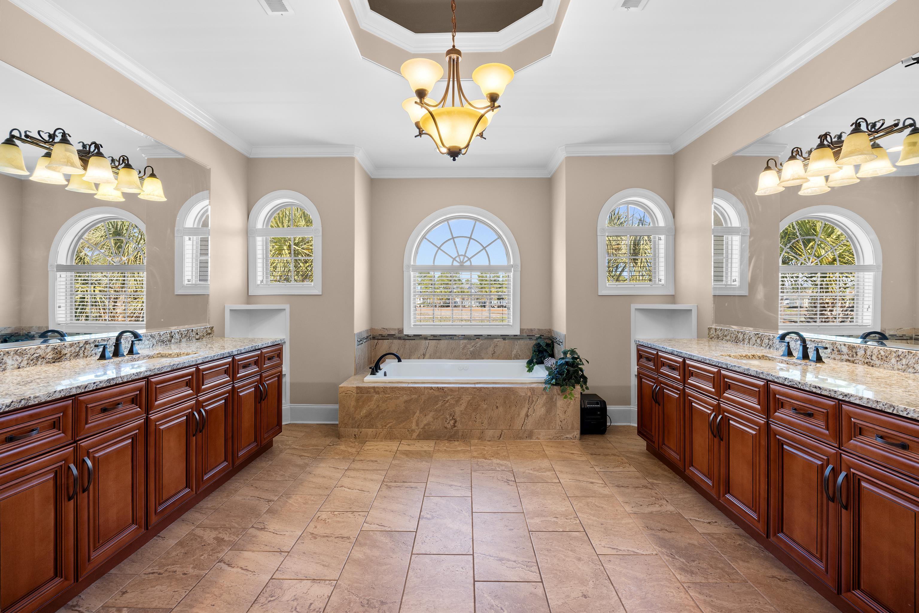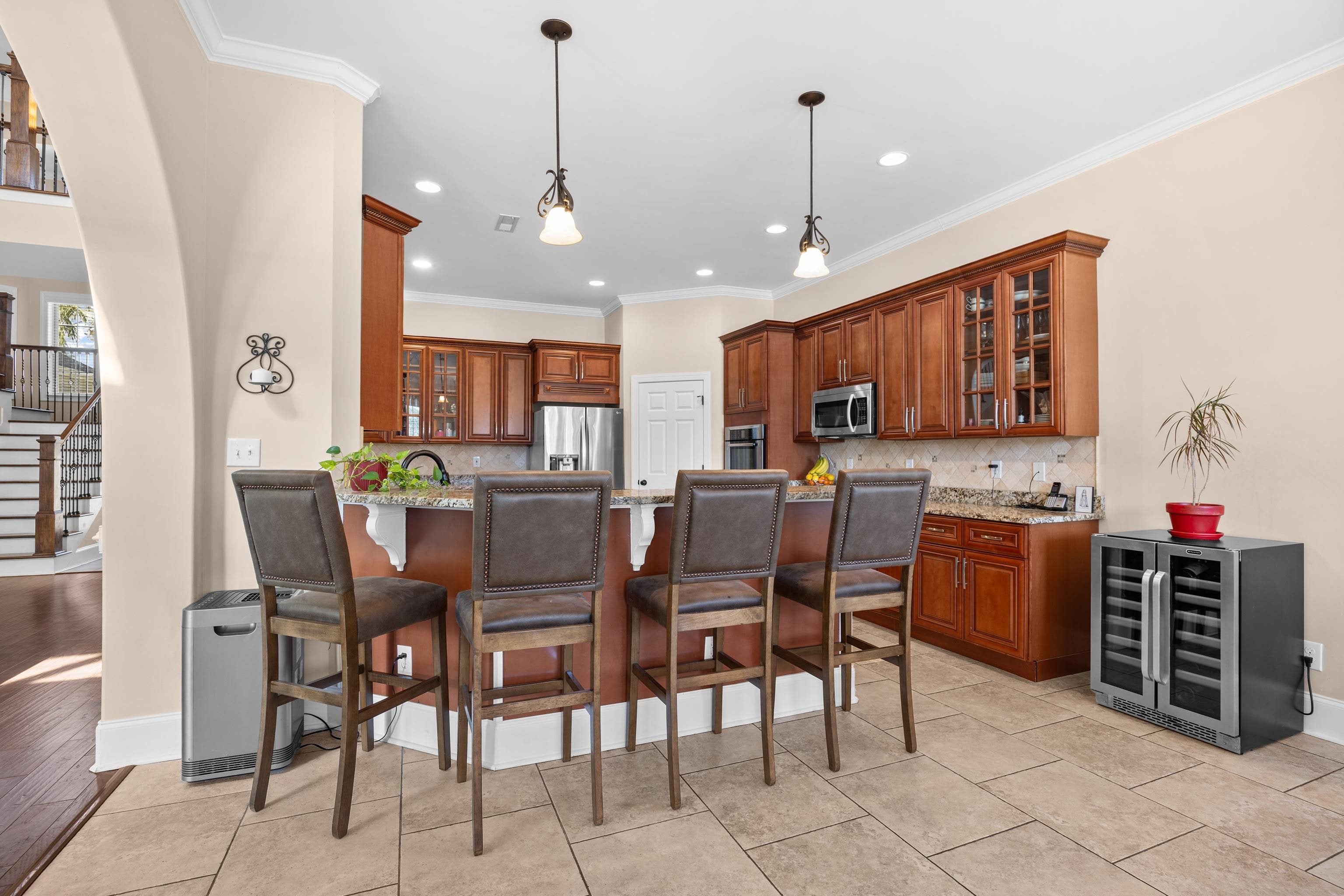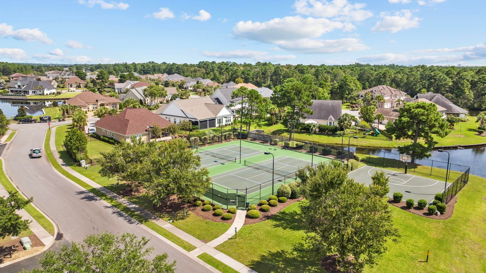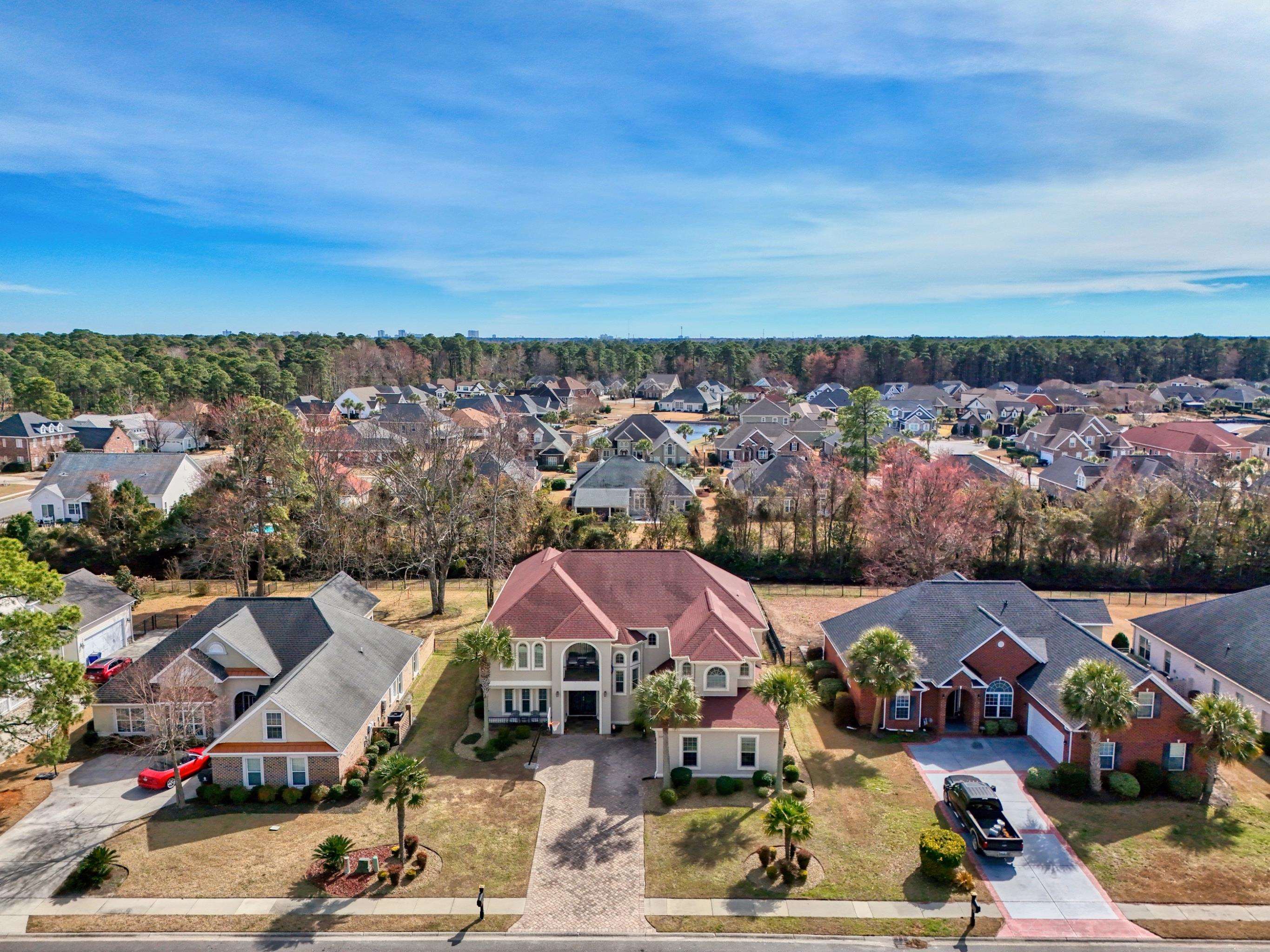 This exceptional five-bedroom, four-bath custom home with over 6,000 sq. ft. under roof, is perfectly situated on a quiet street with cul-de-sacs at both ends, offering privacy and no through traffic. Designed for both everyday living and entertaining, the home features a dramatic two-story great room with fireplace and direct access to an incredible outdoor retreat. Step outside to your own resort-style oasis, complete with a 22,000-gallon heated saltwater pool and spa, tanning shelf, umbrella sleeves, expansive paver patio, fire pit with pergola and sunshade, covered porches, and an outdoor kitchen with built-in grill and sink perfect for year-round enjoyment. Inside, the spacious layout includes a versatile flex room ideal as a formal dining room, media space, playroom, or home office. The large kitchen showcases beautiful wood cabinetry with soft close drawers, granite countertops, and a generous dining area. A main-level bedroom and full bath provide an ideal guest suite or multigenerational living option and feature a large custom walk-in closet. Abundant storage is found throughout, including multiple linen closets. Upstairs, youll find four additional bedrooms and three full baths, including a private guest suite with en-suite bath and private balcony, plus two bedrooms connected by a Jack-and-Jill bath. The spacious primary suite offers two walk-in closets, a large primary bath with jacuzzi tub and oversized tile shower, and a separate room ideal for a home office, nursery, or exercise space. The oversize garage (over 1,000 sq ft) offers incredible flexibility as a workshop, storage area, or ultimate man cave. A garage of this size is very hard to find and there is plenty of room to store all of your toys! Throughout the home, youll appreciate tile and hardwood flooring (with carpet in only two bedrooms), granite finishes, and extensive crown molding. Plantation Lakes residents enjoy outstanding community amenities, including two resort-style pools, tennis and pickleball courts, sand volleyball courts, basketball court, playground, clubhouse with kitchen and fitness room, boat launch, day docks, and a scenic lake with approximately 17 miles of shoreline. This home truly combines luxury, comfort, and lifestyle inside and out.