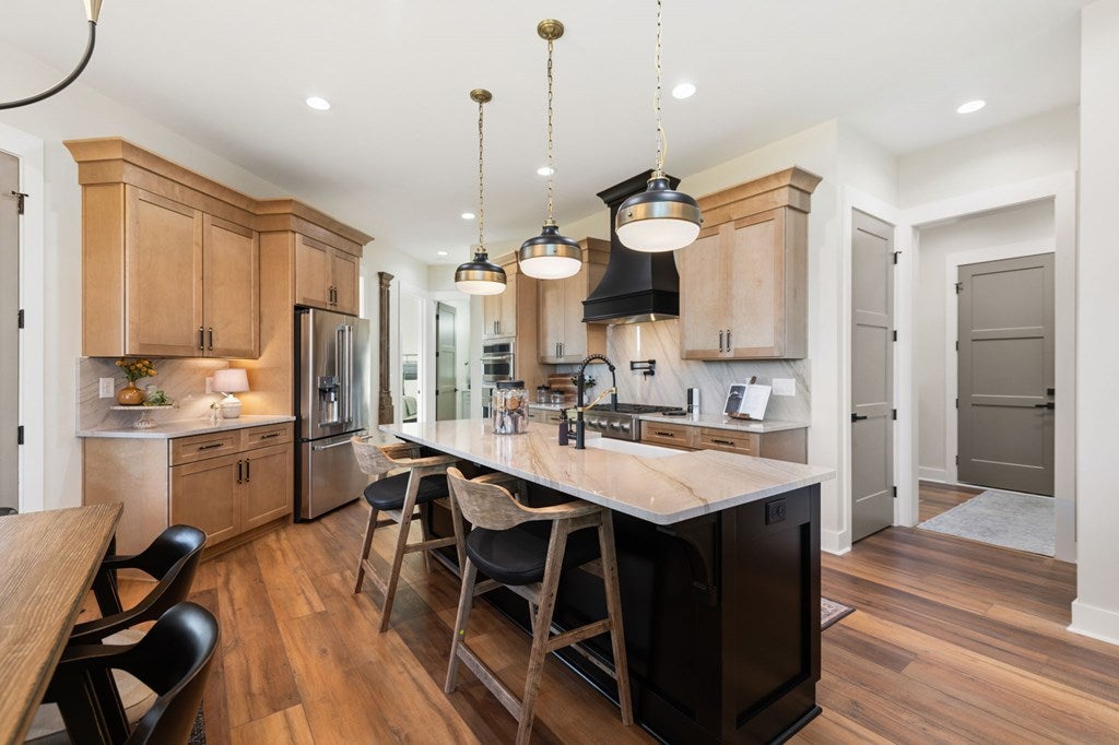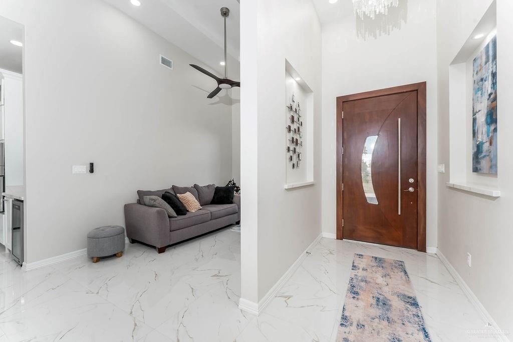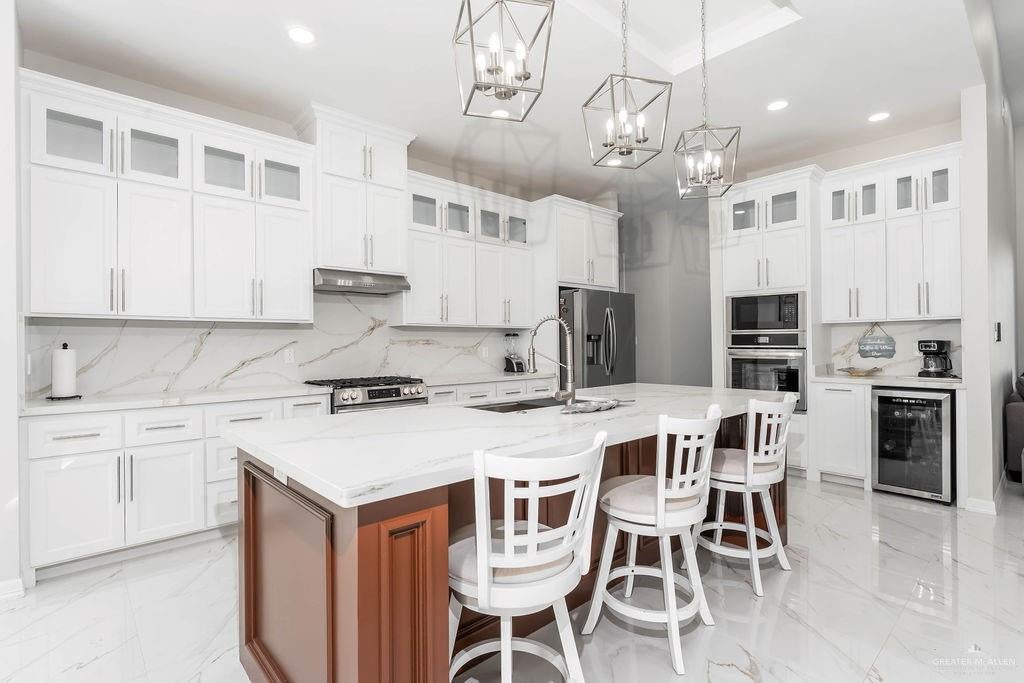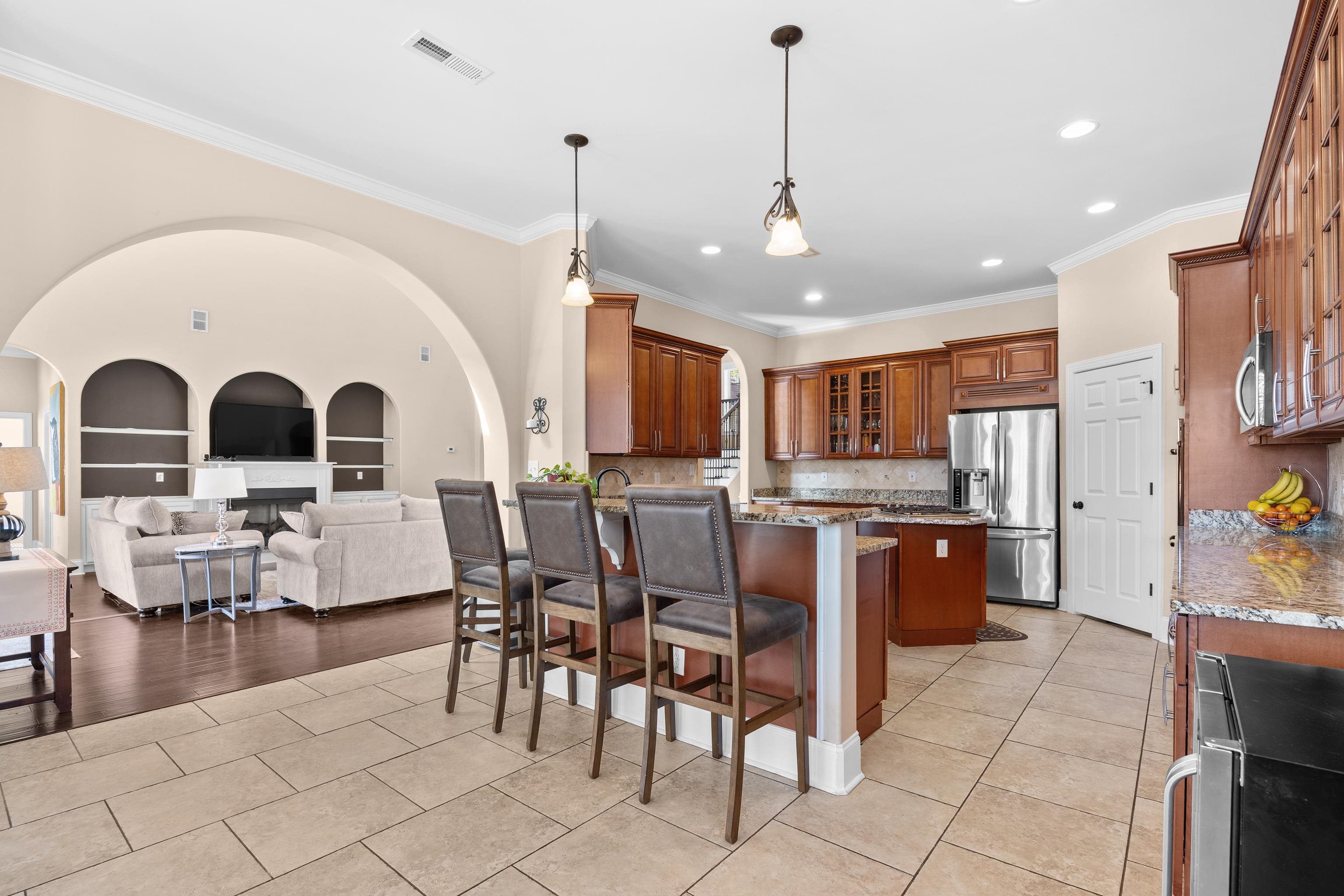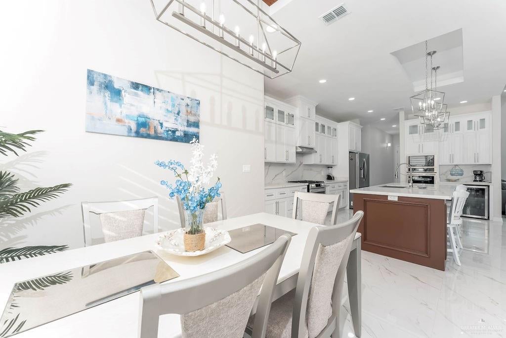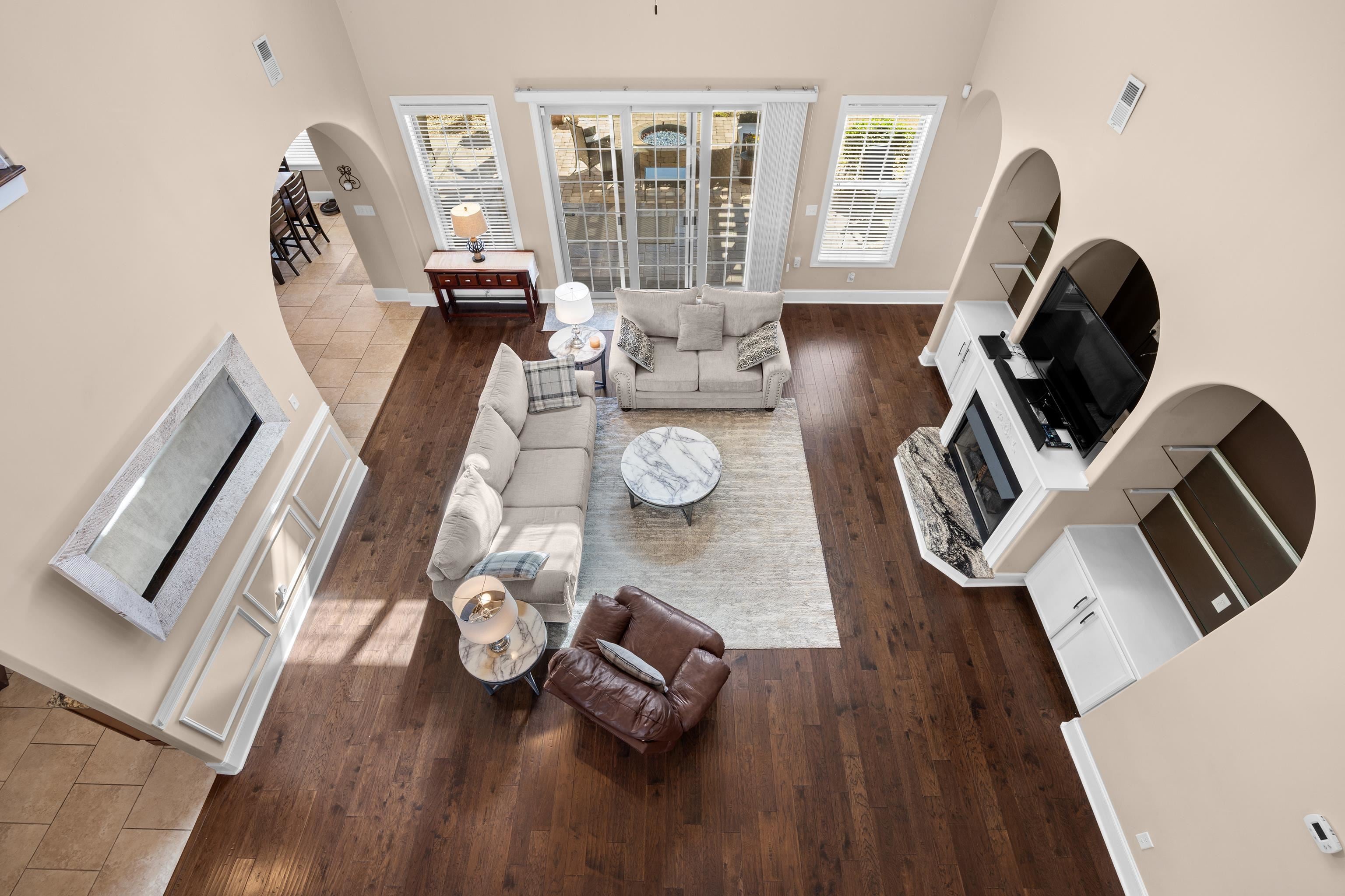 This exceptional five-bedroom, four-bath custom home with over 6,000 sq. ft. under roof, is perfectly situated on a quiet street with cul-de-sacs at both ends, offering privacy and no through traffic. Designed for both everyday living and entertaining, the home features a dramatic two-story great room with fireplace and direct access to an incredible outdoor retreat.