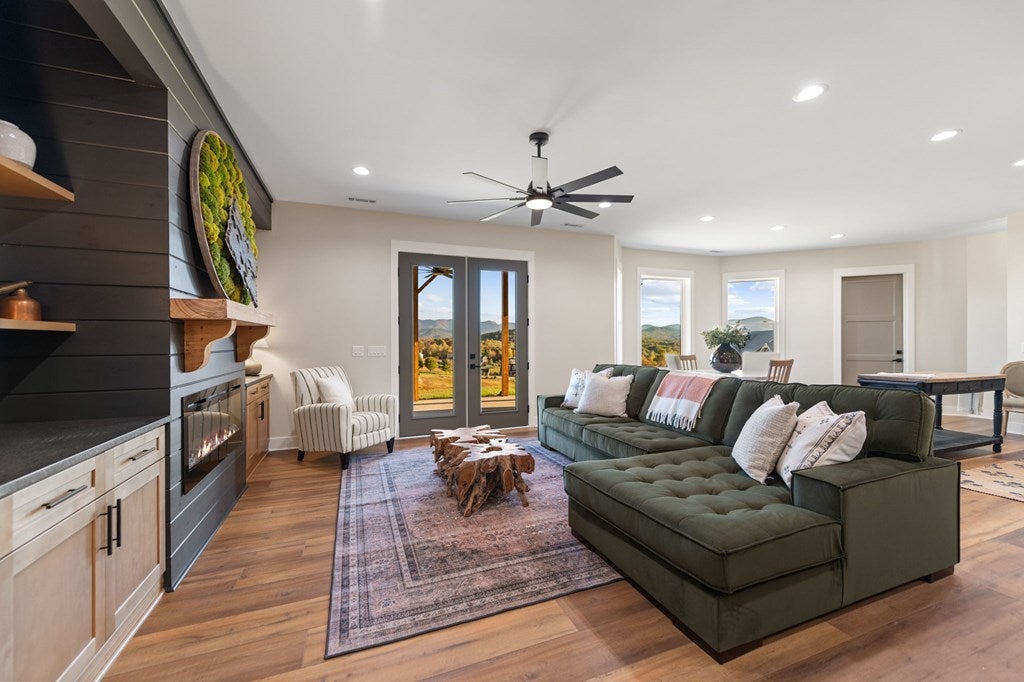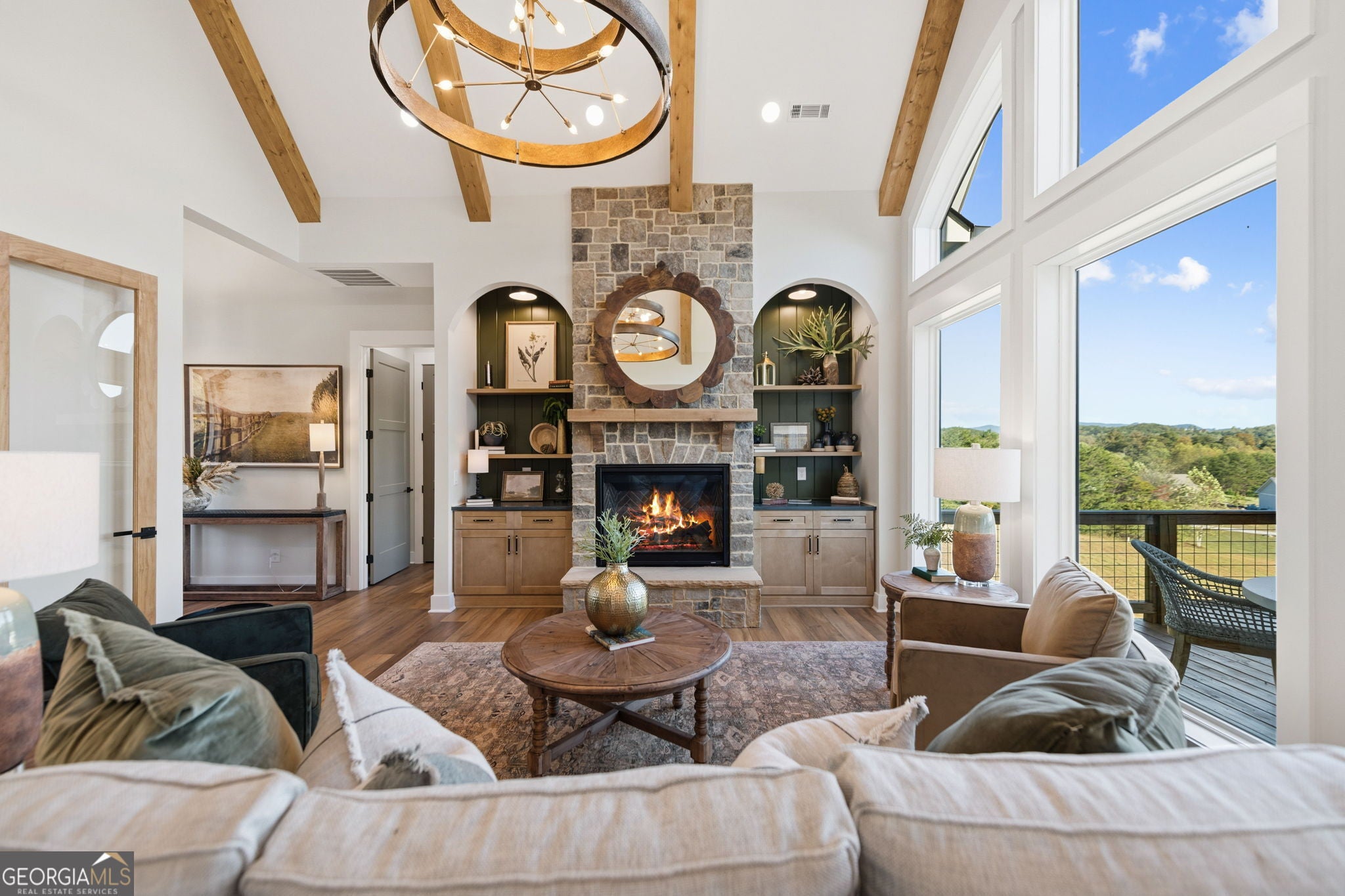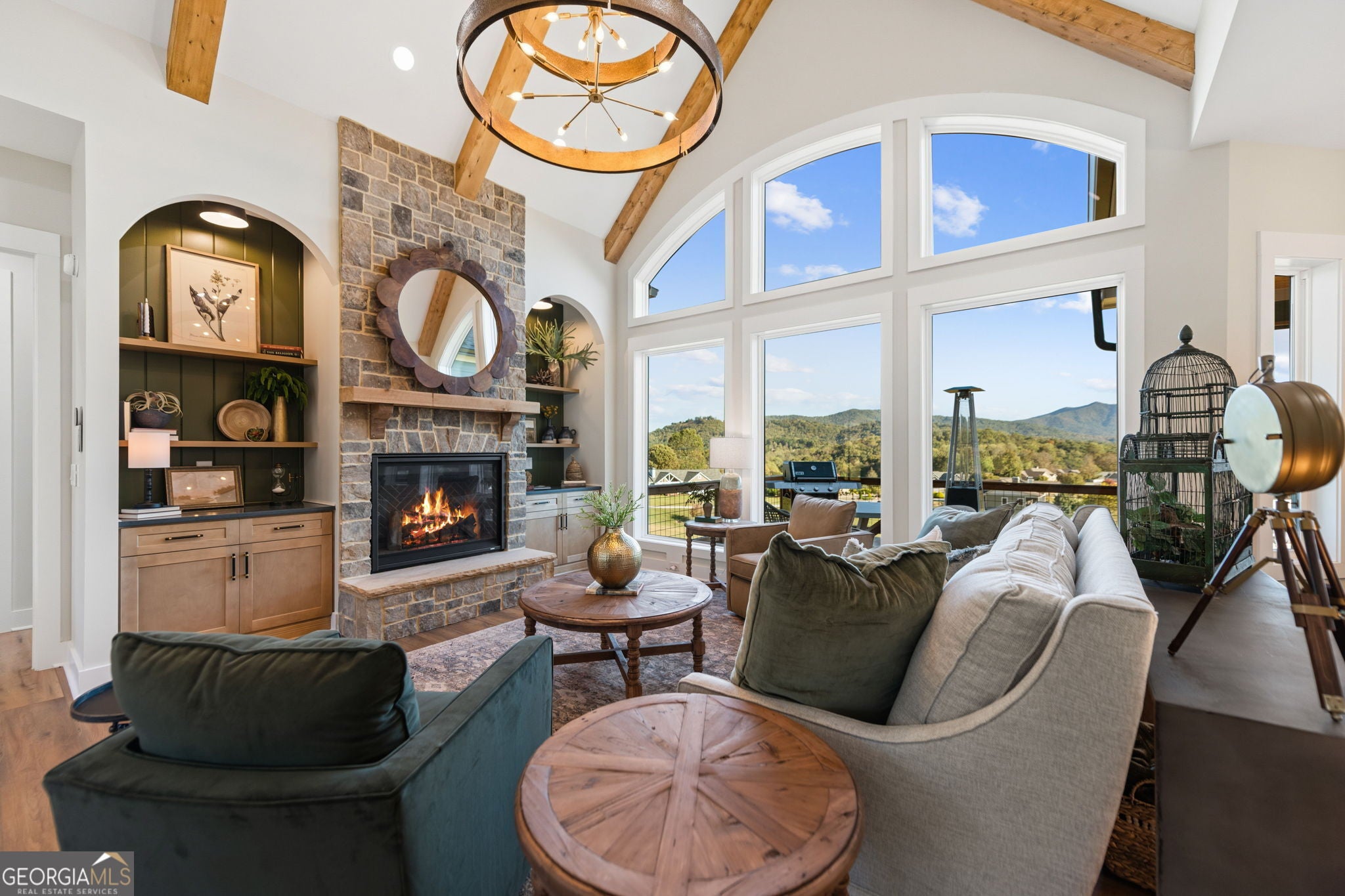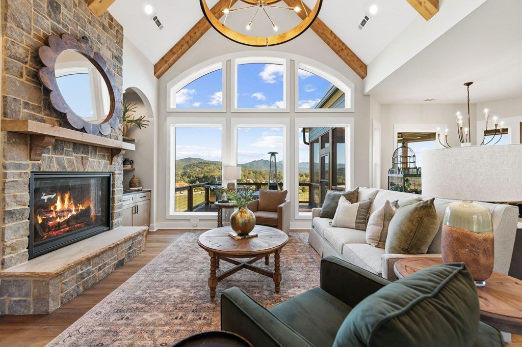 Exquisite new construction with big year-round mountain views. Superior craftsmanship throughout this beautiful home. Master on Main Level with 2 other bedrooms. One bedroom on Lower Level with large entertainment area and full bath. Two-car garage on Main Level and one-car garage on Lower Level. Gourmet chefs kitchen. Great Room has real stone fireplace, custom built-ins, and vaulted beamed ceilings. Upper Level has large bonus room. Furnished with all new high-end furnishings. Call for an appointment to view luxury at its finest!
