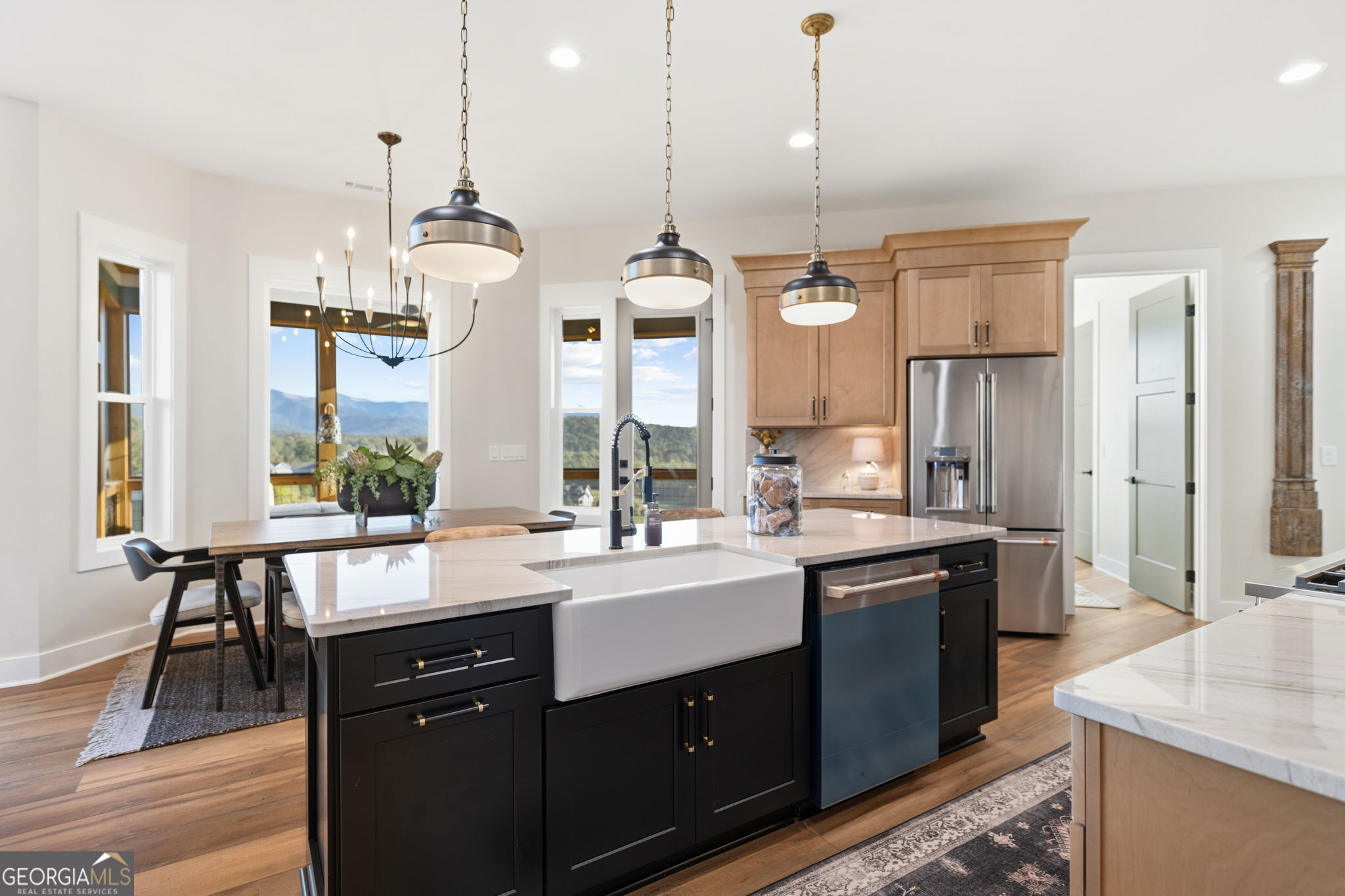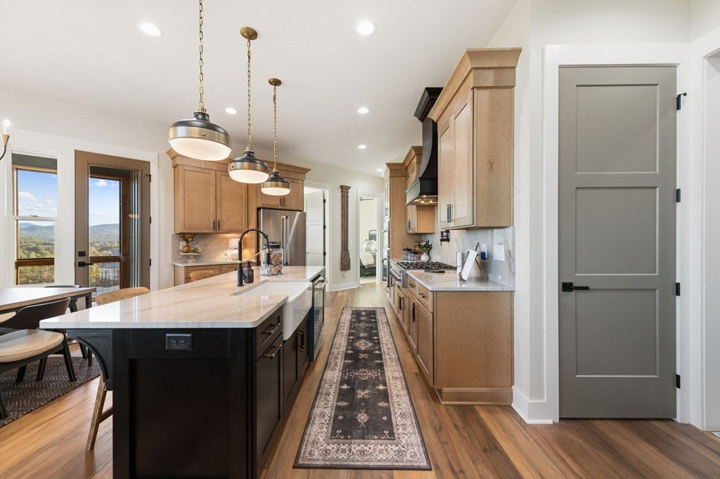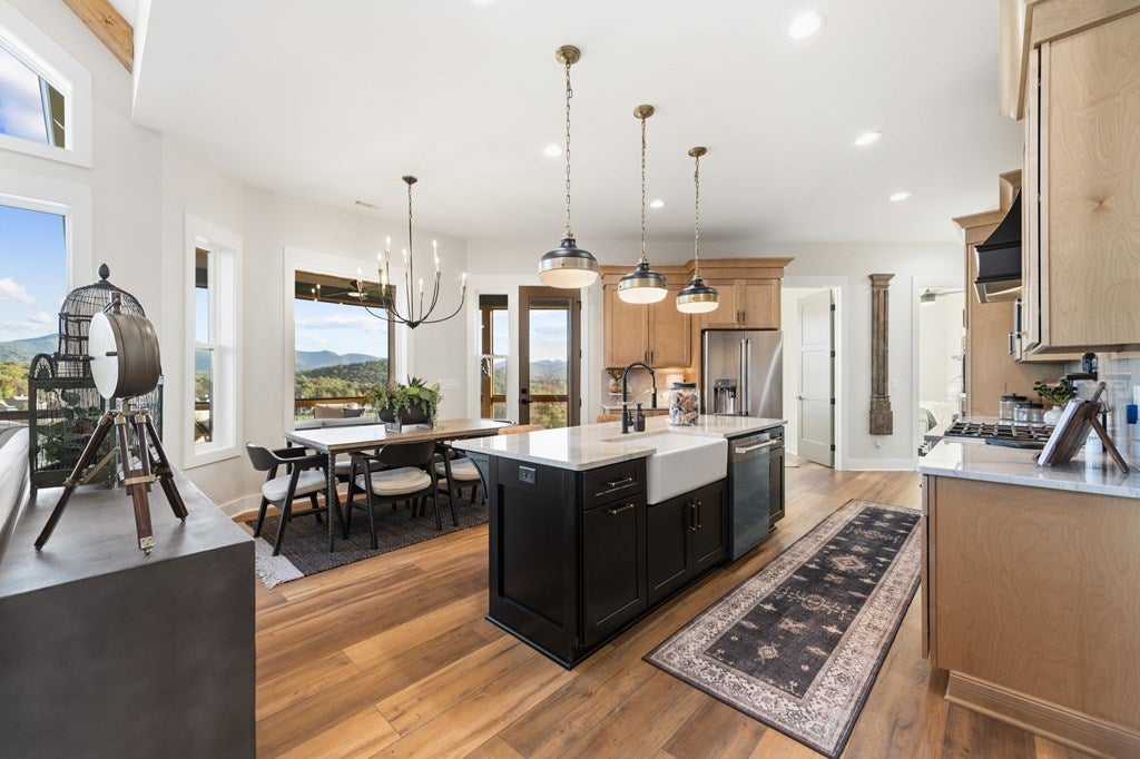 Exquisite new construction with big year-round mountain views. Superior craftsmanship throughout this beautiful home. Master on Main Level with 2 other bedrooms. One bedroom on Lower Level with large entertainment area and full bath. Two-car garage on Main Level and one-car garage on Lower Level. Gourmet chefs kitchen.