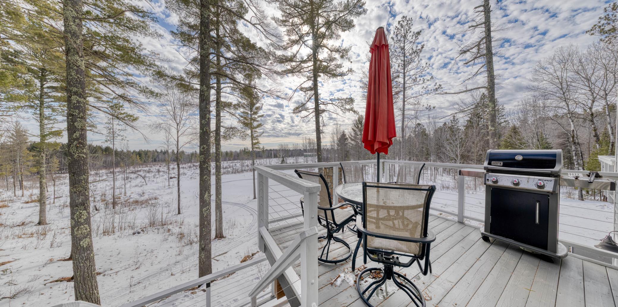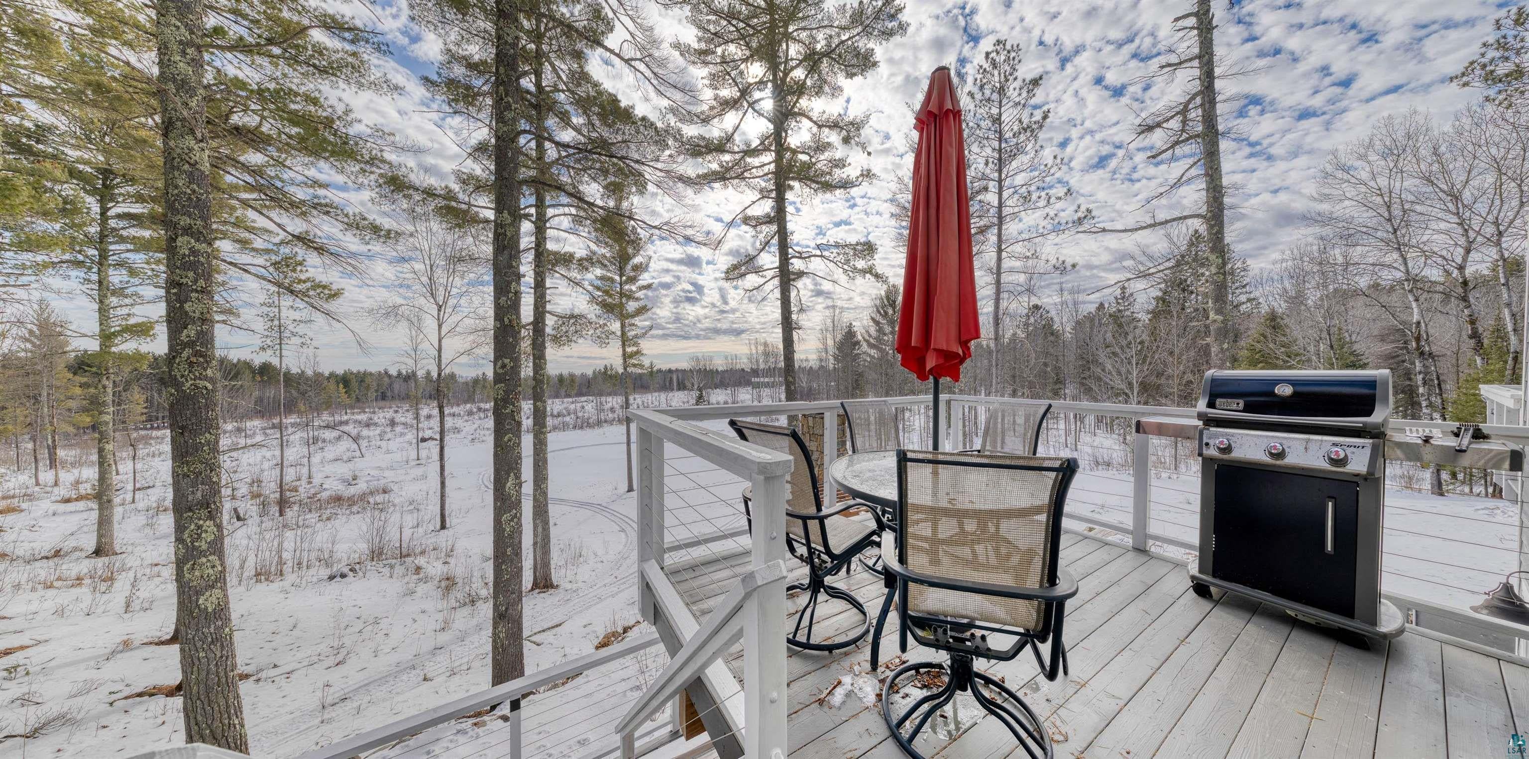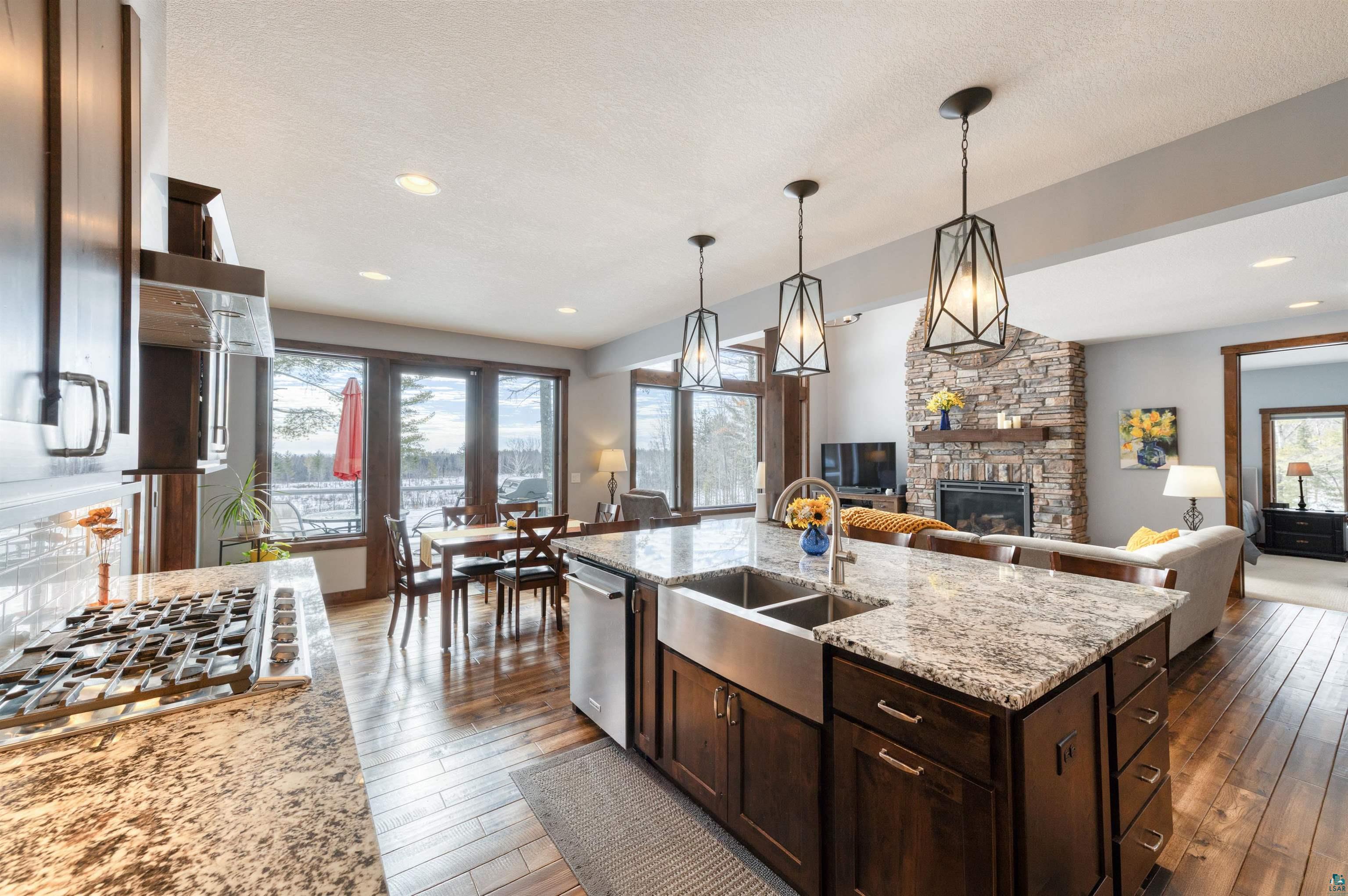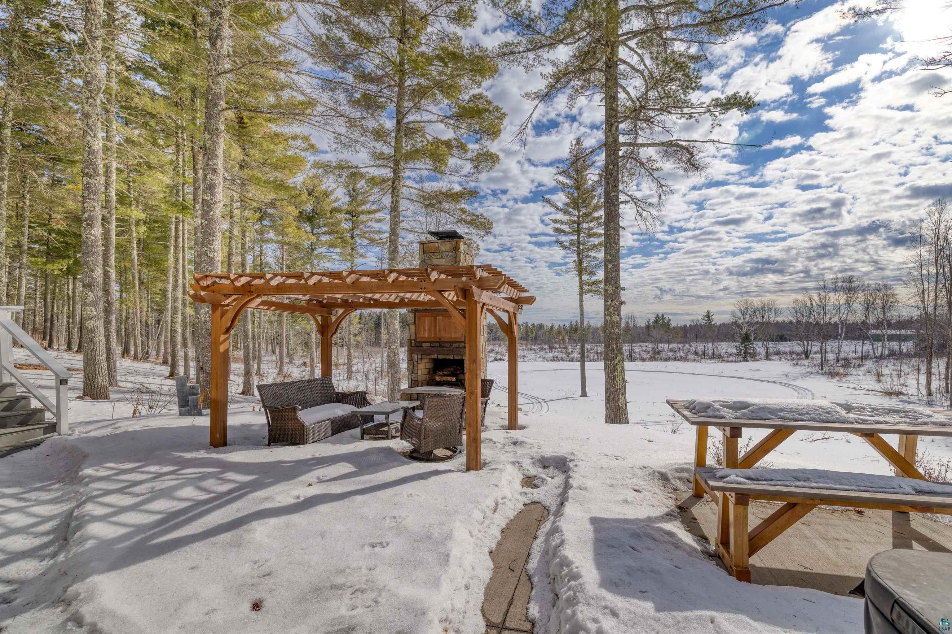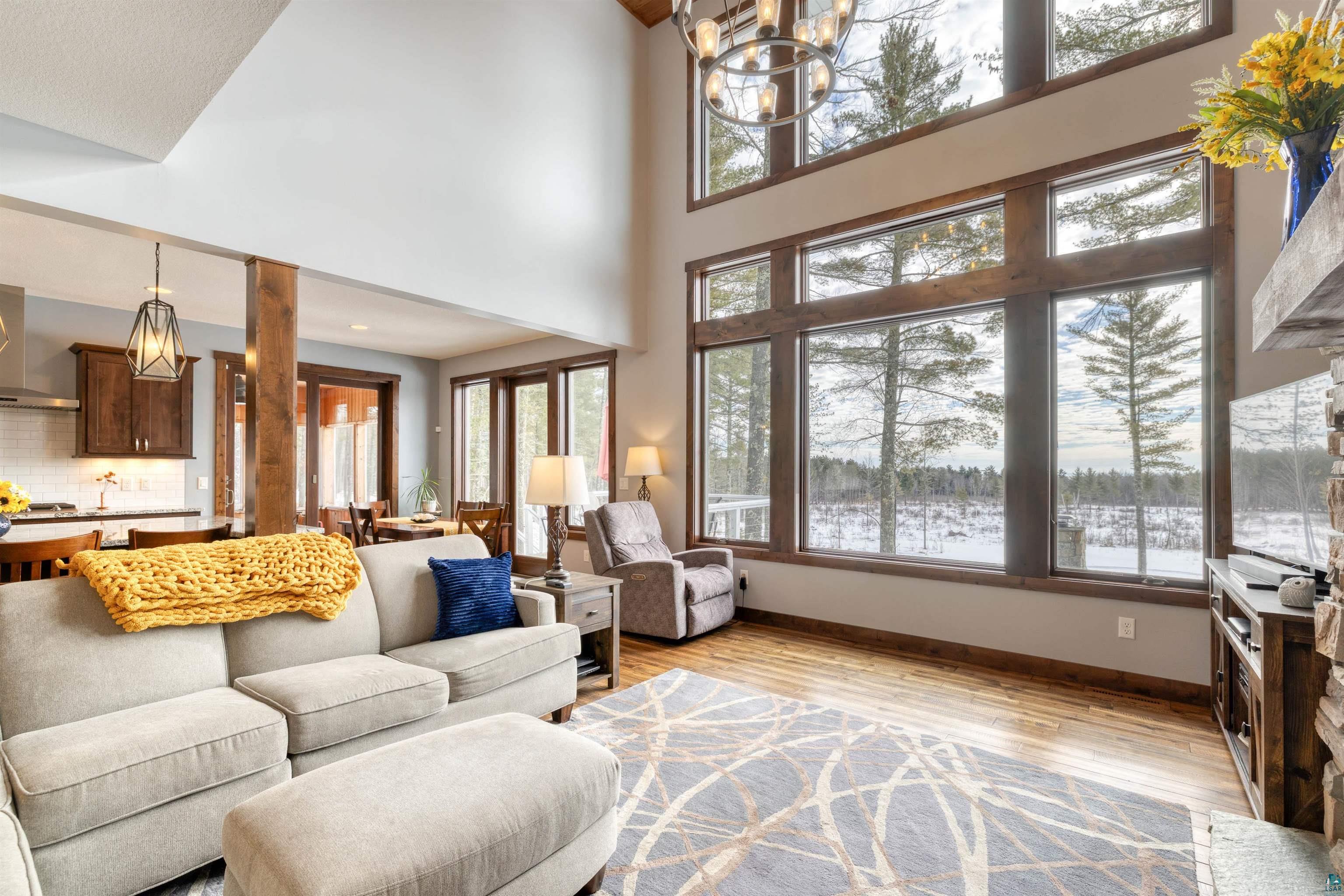 Stunning 4 bedroom, 4-bathroom home blends timeless craftsmanship with modern comfort and style built in 2018. 30 acres nestled among towering old-growth pines and boasting approximately /-700 feet of frontage on the Little Stewart River, this property offers a rare combination of privacy, elegance, and natural beauty. Step inside to discover a spacious primary suite complete with a luxurious ensuite bath and heated floors. The open-concept main level is anchored by a soaring 18-foot great room featuring a dramatic stone gas fireplace and a wall of south-facing windows that flood the space with natural light. The gourmet kitchen is a chefs dream, showcasing rich dark cabinetry, gleaming granite countertops, and premium finishes throughout. Enjoy year-round outdoor living with a cozy screened-in porch equipped with a heater, a generous patio with its own outdoor fireplace, and a secluded hot tubperfect for soaking in the breathtaking views. Additional highlights include: Hickory hardwood floors Heated floors in the primary bath and mudroom Solid 8-foot wood doors and 9-foot ceilings throughout Walk-out lower-level family room ideal for entertaining Dedicated home office space and ample storage Attached, insulated, and heated garage Impeccably maintained and truly move-in ready, this home is a rare gem that offers refined living in a tranquil, nature-rich setting with glimpses of Lake Superior on the horizon.