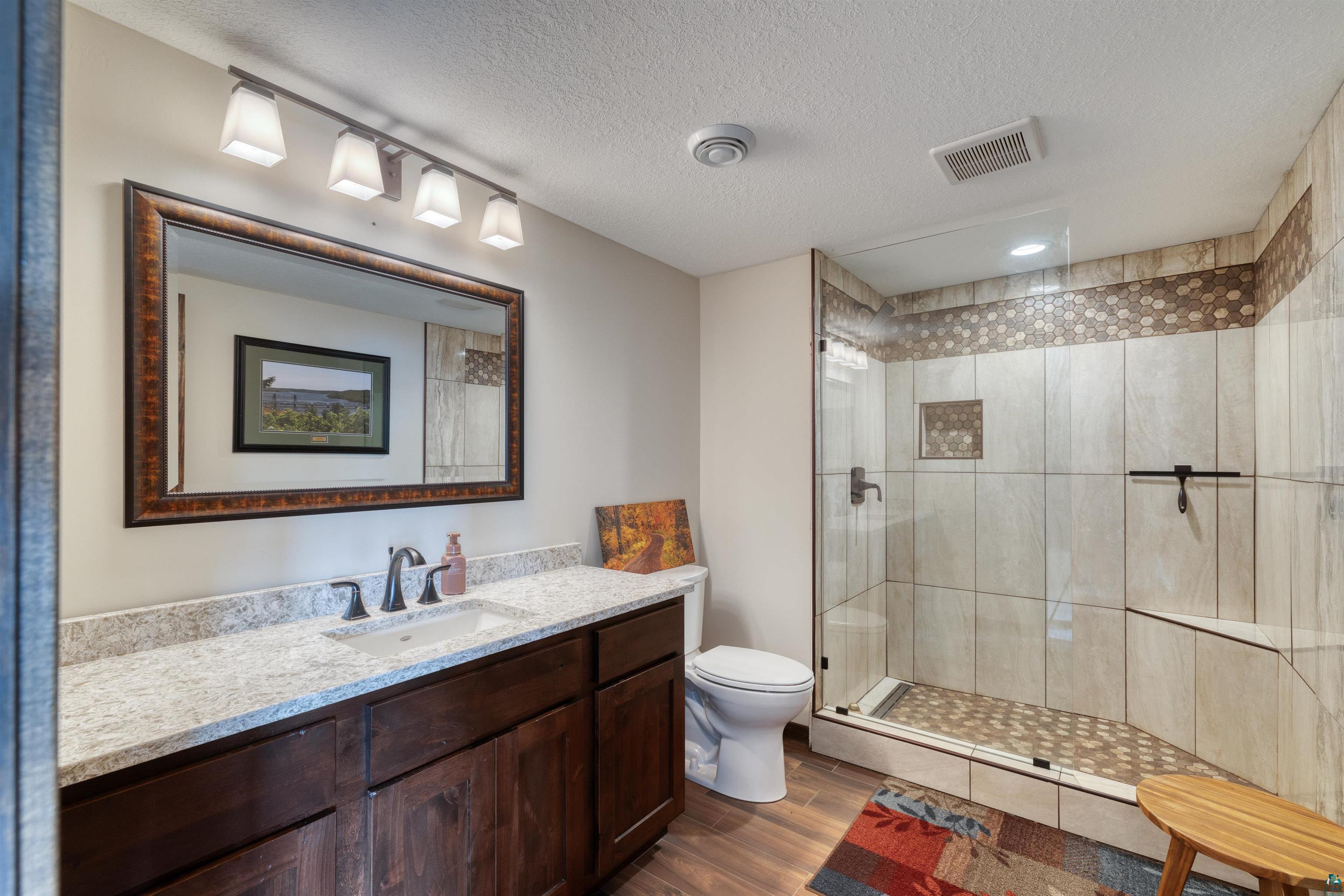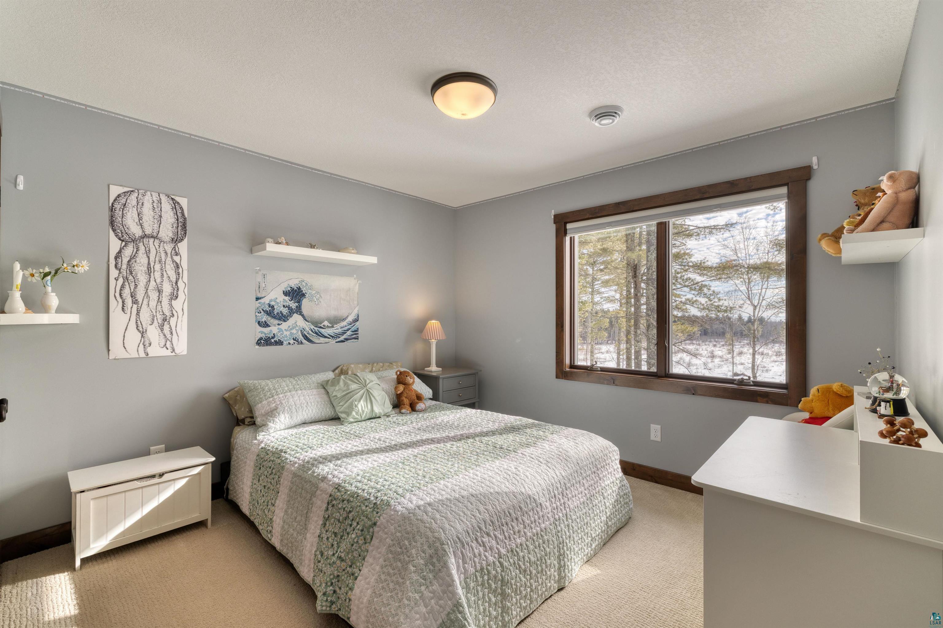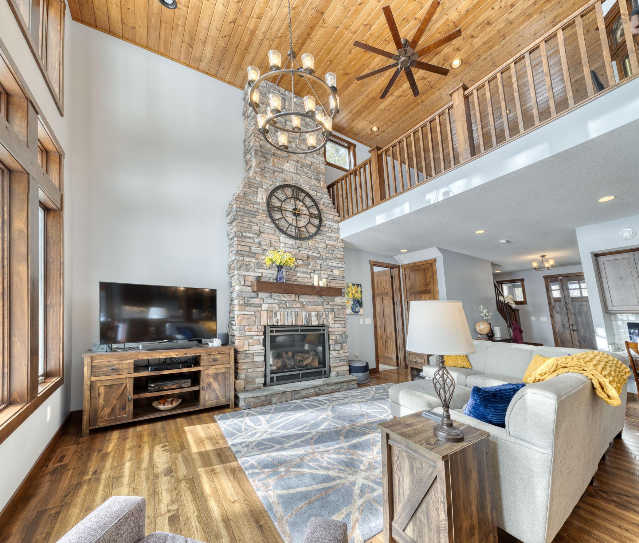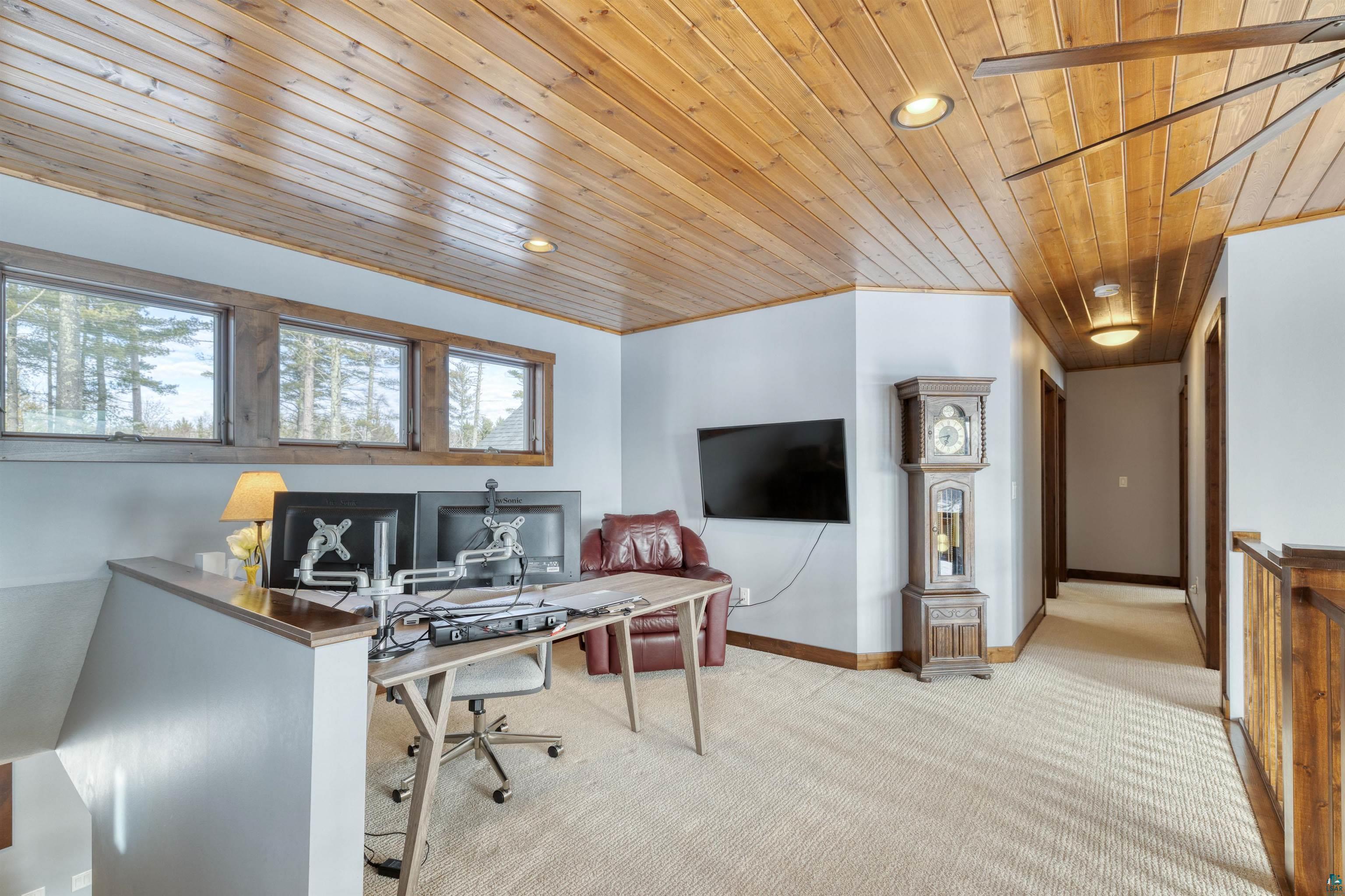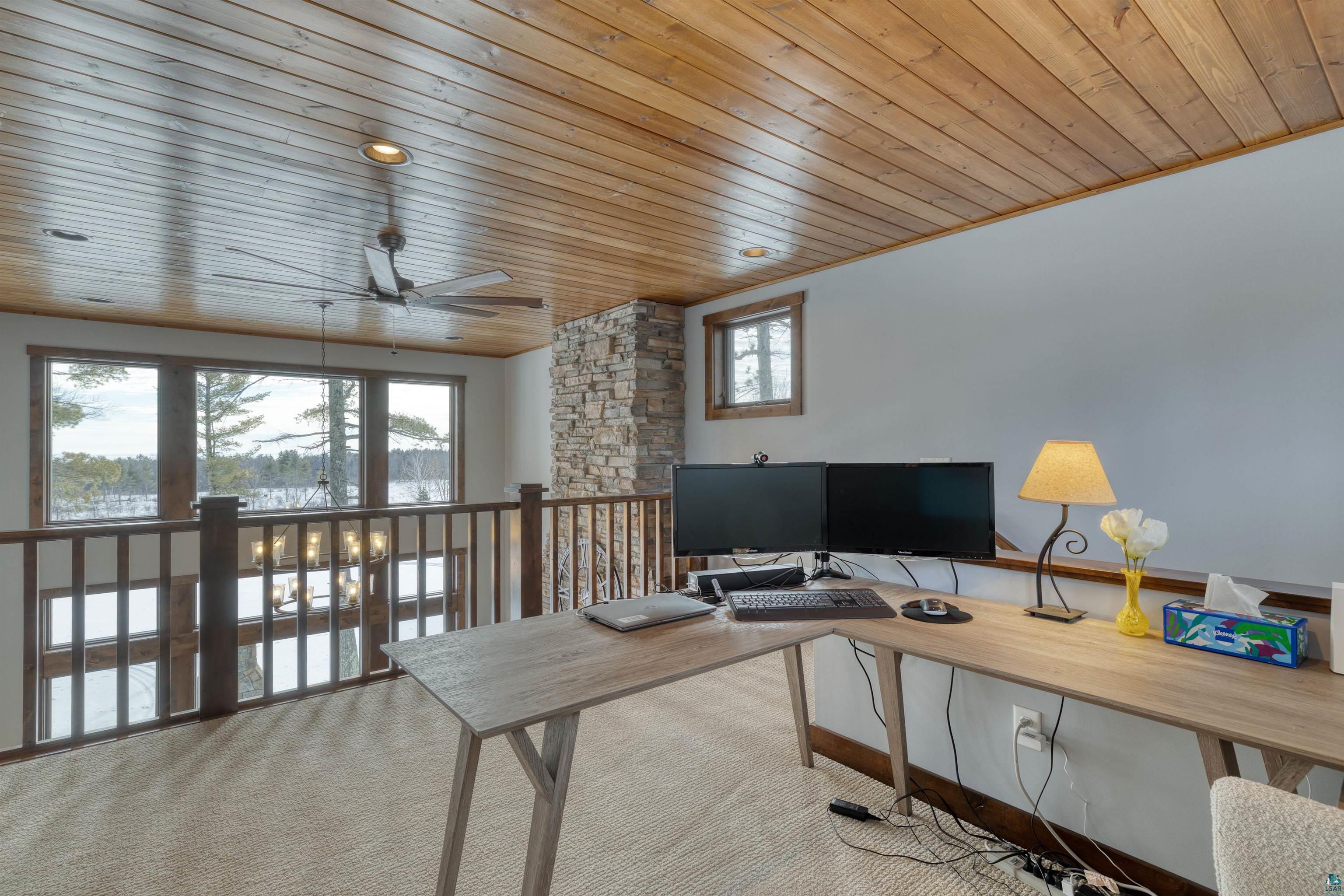 Stunning 4 bedroom, 4-bathroom home blends timeless craftsmanship with modern comfort and style built in 2018. 30 acres nestled among towering old-growth pines and boasting approximately /-700 feet of frontage on the Little Stewart River, this property offers a rare combination of privacy, elegance, and natural beauty. Step inside to discover a spacious primary suite complete with a luxurious ensuite bath and heated floors. The open-concept main level is anchored by a soaring 18-foot great room featuring a dramatic stone gas fireplace and a wall of south-facing windows that flood the space with natural light. The gourmet kitchen is a chefs dream, showcasing rich dark cabinetry, gleaming granite countertops, and premium finishes throughout. Enjoy year-round outdoor living with a cozy screened-in porch equipped with a heater, a generous patio with its own outdoor fireplace, and a secluded hot tubperfect for soaking in the breathtaking views. Additional highlights include: Hickory hardwood floors Heated floors in the primary bath and mudroom Solid 8-foot wood doors and 9-foot ceilings throughout Walk-out lower-level family room ideal for entertaining Dedicated home office space and ample storage Attached, insulated, and heated garage Impeccably maintained and truly move-in ready, this home is a rare gem that offers refined living in a tranquil, nature-rich setting with glimpses of Lake Superior on the horizon.