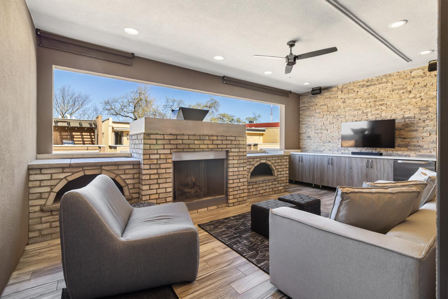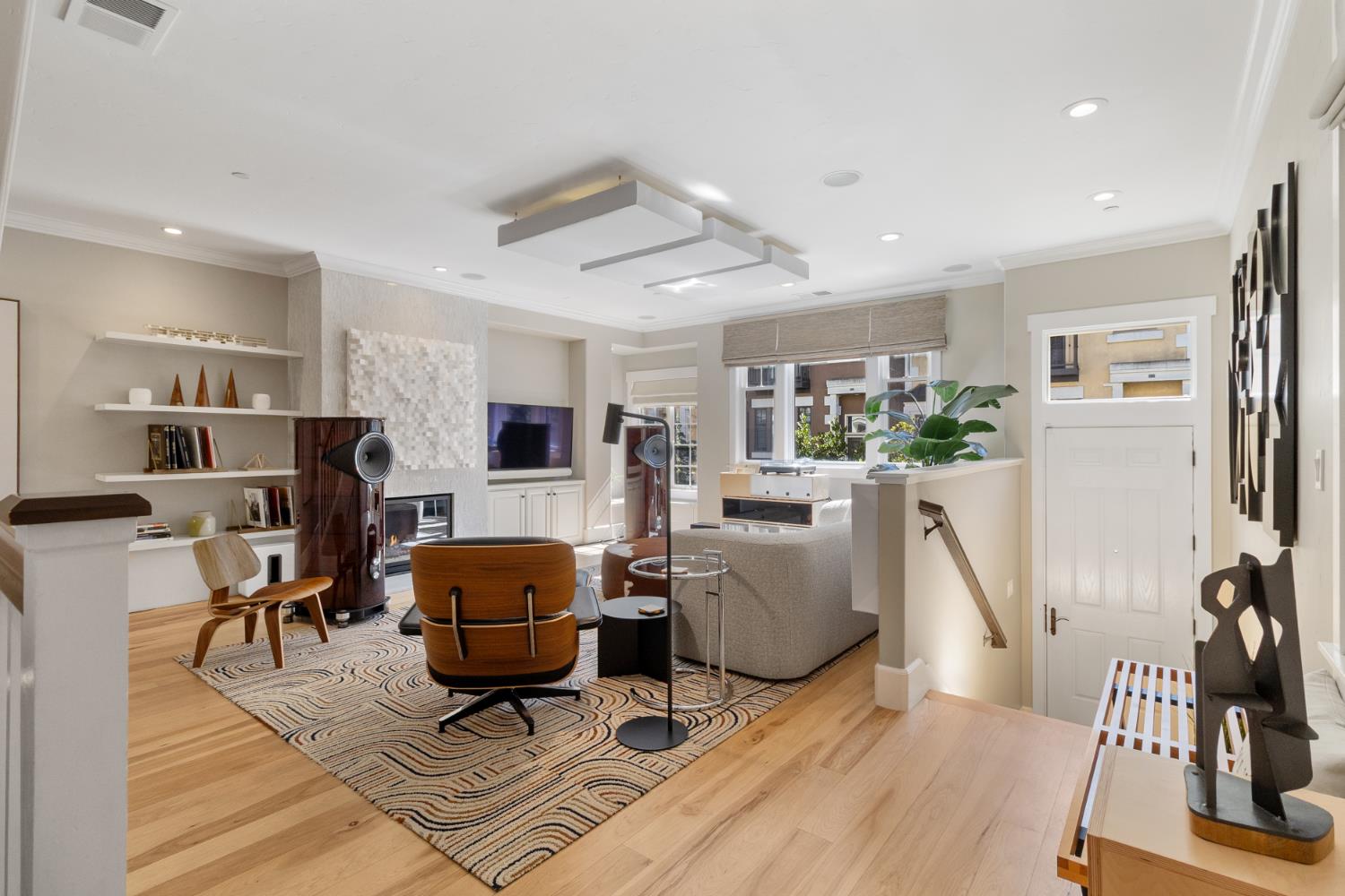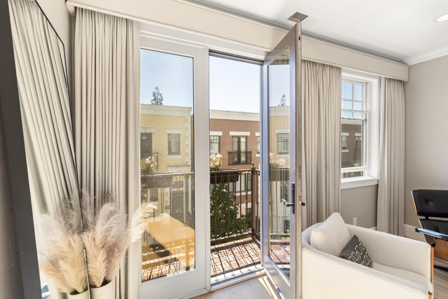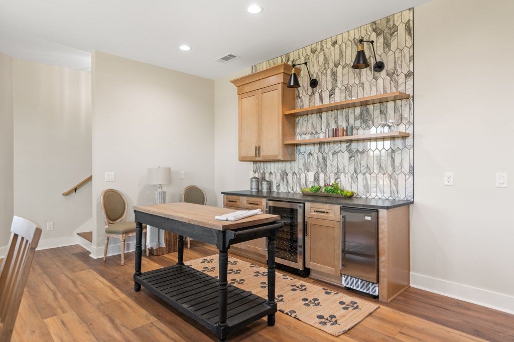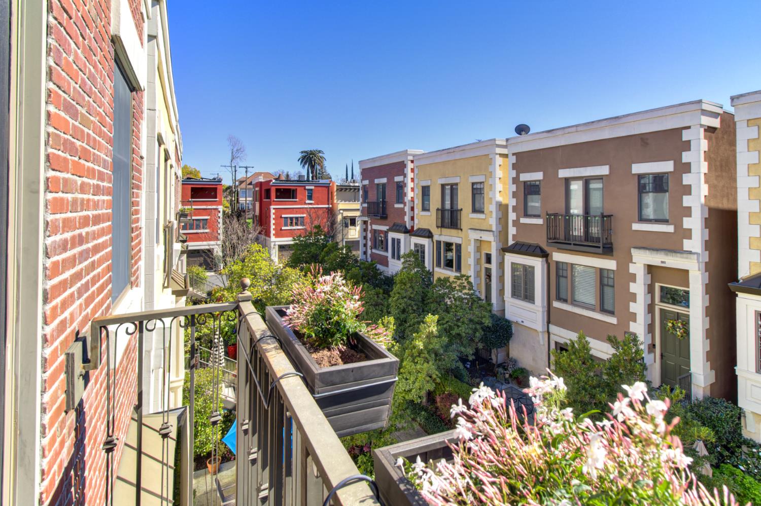 Midtown Magic at Tapestri Square! One of the coolest brownstone projects in the heart of the city! Located on the tree lined interior walk, this home will impress you from the start! Live luxuriously in this exciting home customized like no other in the development! The unique upper level entertainment deck is covered and features a fireplace, fountain, TV, speakers, and has built-in cabinetry with a refrigerator! It is East facing and useable all year long to relax and entertain! From the entry, the living room is light filled with a floor to ceiling marble tiled fireplace, floating shelving, a window seat and theres natural Hickory flooring throughout. The pretty powder room is tucked in between the living and dining rooms. The fantastic chefs kitchen has a large center island with seating, quartz countertops, GE Monogram appliances; 36convection gas range, hood, microwave convection oven, Bosch dishwasher & 2024 Bosch refrigerator. Freshly painted cabinets, 2 under mount sinks with garbage disposals, new pendant lighting, a large pantry and BBQ deck are ready for the gourmet chef to enjoy. The dining area is adjacent with new modern lighting. The primary suite lives like a 5 star resort with its grand size, tasteful custom draperies and Romeo & Juliet balcony overlooking the prized Tapestri Square walk. The LUXE Spa inspired bath is on-trend decorated with white cabinets, marble countertops and double sinks fitted with high end fixtures. Theres a large shower with multiple shower heads and a stunning black and white soaking tub accented by a black designer light fixture above. The large custom walk-in closet is a dream plus the laundry area is adjacent to the primary suite. On the patio level, from the private courtyard, a separate entrance leads to the in-law suite with a living area, efficiency kitchen, built-in cabinets, full bath and bedroom area. The attached 2 car garage has another washer/dryer and built-in cabinets. This is a highly sought after location! Walk to all the great eateries, parks and enjoy the midtown lifestyle of a lock and leave townhouse.