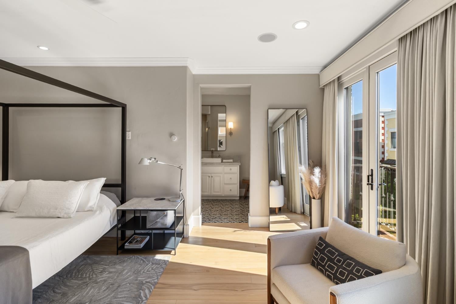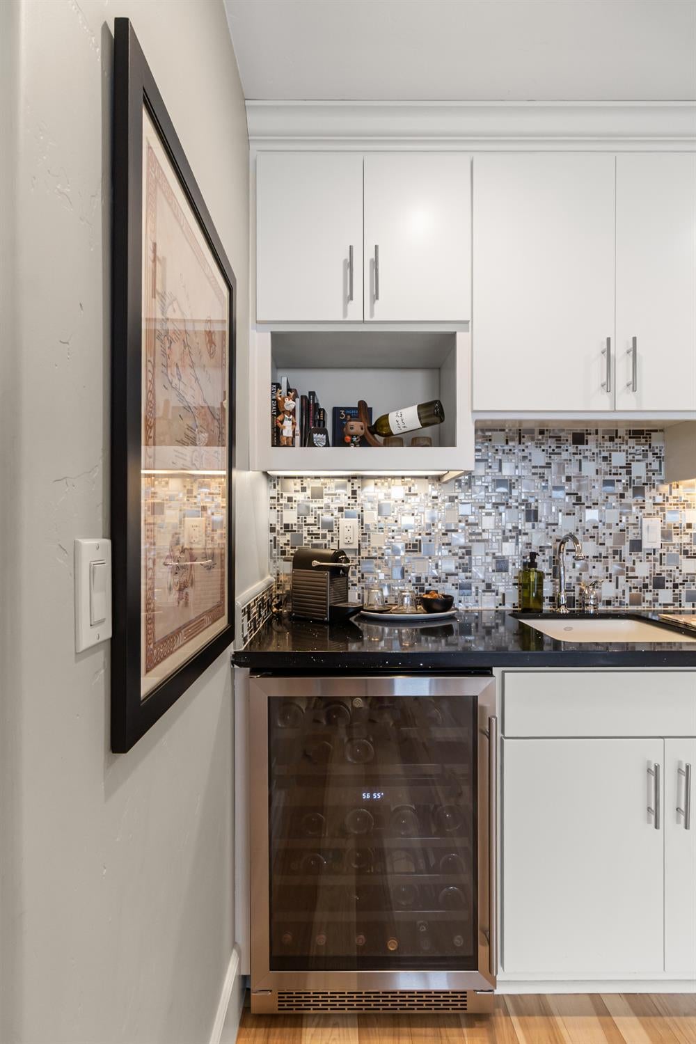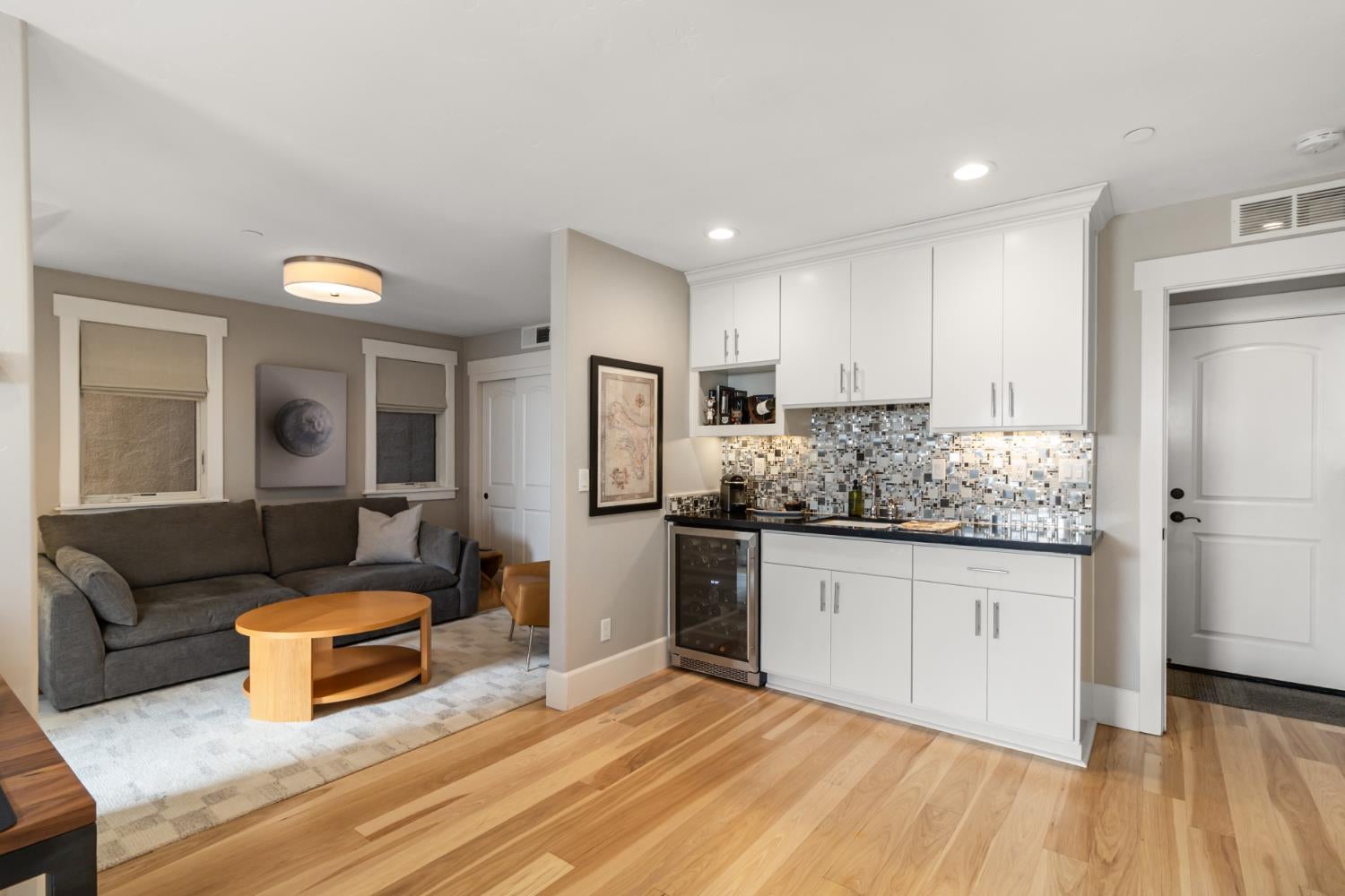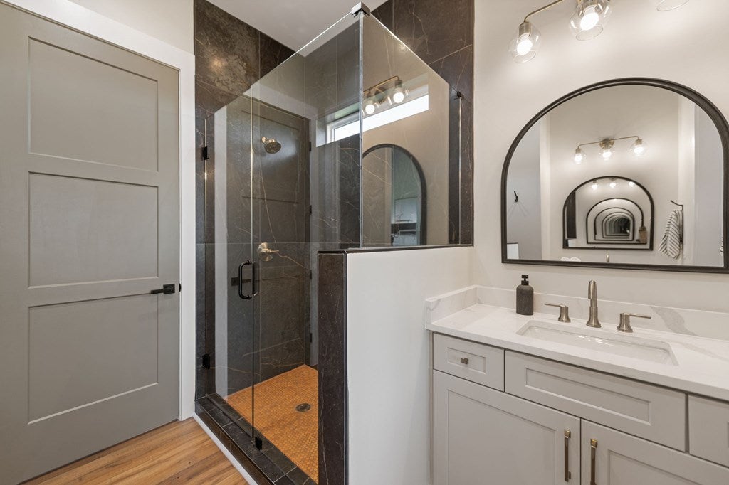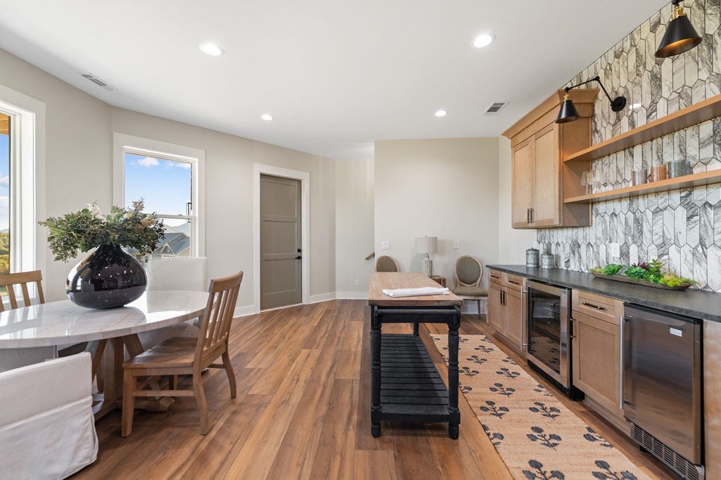 Midtown Magic at Tapestri Square! One of the coolest brownstone projects in the heart of the city! Located on the tree lined interior walk, this home will impress you from the start! Live luxuriously in this exciting home customized like no other in the development! The unique upper level entertainment deck is covered and features a fireplace, fountain, TV, speakers, and has built-in cabinetry with a refrigerator! It is East facing and useable all year long to relax and entertain! From the entry, the living room is light filled with a floor to ceiling marble tiled fireplace, floating shelving, a window seat and theres natural Hickory flooring throughout. The pretty powder room is tucked in between the living and dining rooms. The fantastic chefs kitchen has a large center island with seating, quartz countertops, GE Monogram appliances; 36convection gas range, hood, microwave convection oven, Bosch dishwasher & 2024 Bosch refrigerator. Freshly painted cabinets, 2 under mount sinks with garbage disposals, new pendant lighting, a large pantry and BBQ deck are ready for the gourmet chef to enjoy. The dining area is adjacent with new modern lighting. The primary suite lives like a 5 star resort with its grand size, tasteful custom draperies and Romeo & Juliet balcony overlooking the prized Tapestri Square walk. The LUXE Spa inspired bath is on-trend decorated with white cabinets, marble countertops and double sinks fitted with high end fixtures. Theres a large shower with multiple shower heads and a stunning black and white soaking tub accented by a black designer light fixture above. The large custom walk-in closet is a dream plus the laundry area is adjacent to the primary suite. On the patio level, from the private courtyard, a separate entrance leads to the in-law suite with a living area, efficiency kitchen, built-in cabinets, full bath and bedroom area. The attached 2 car garage has another washer/dryer and built-in cabinets. This is a highly sought after location! Walk to all the great eateries, parks and enjoy the midtown lifestyle of a lock and leave townhouse.