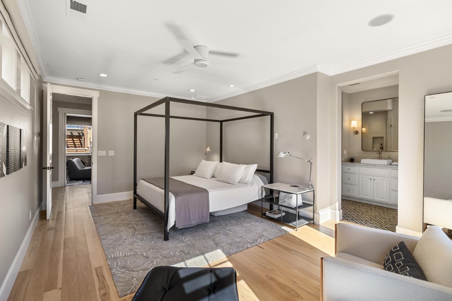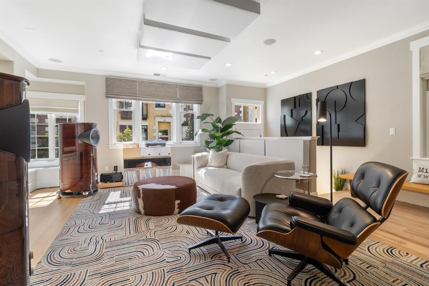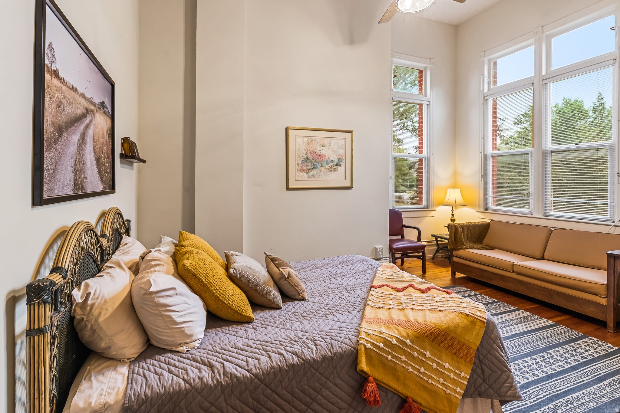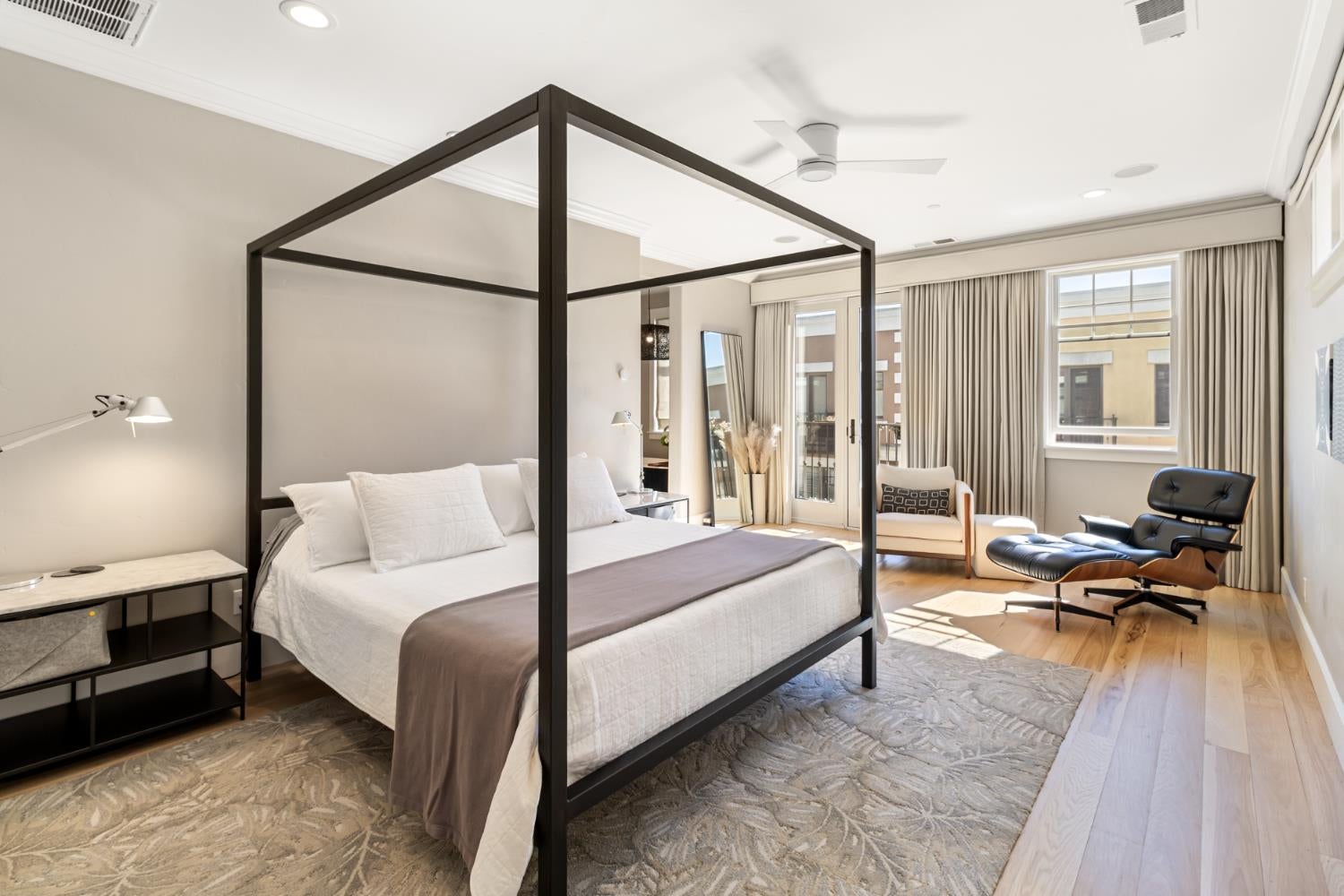 Midtown Magic at Tapestri Square! One of the coolest brownstone projects in the heart of the city! Located on the tree lined interior walk, this home will impress you from the start! Live luxuriously in this exciting home customized like no other in the development! The unique upper level entertainment deck is covered and features a fireplace, fountain, TV, speakers, and has built-in cabinetry with a refrigerator! It is East facing and useable all year long to relax and entertain! From the entry, the living room is light filled with a floor to ceiling marble tiled fireplace, floating shelving, a window seat and theres natural Hickory flooring throughout. The pretty powder room is tucked in between the living and dining rooms. The fantastic chefs kitchen has a large center island with seating, quartz countertops, GE Monogram appliances; 36convection gas range, hood, microwave convection oven, Bosch dishwasher & 2024 Bosch refrigerator. Freshly painted cabinets, 2 under mount sinks with garbage disposals, new pendant lighting, a large pantry and BBQ deck are ready for the gourmet chef to enjoy. The dining area is adjacent with new modern lighting. The primary suite lives like a 5 star resort with its grand size, tasteful custom draperies and Romeo & Juliet balcony overlooking the prized Tapestri Square walk. The LUXE Spa inspired bath is on-trend decorated with white cabinets, marble countertops and double sinks fitted with high end fixtures. Theres a large shower with multiple shower heads and a stunning black and white soaking tub accented by a black designer light fixture above. The large custom walk-in closet is a dream plus the laundry area is adjacent to the primary suite. On the patio level, from the private courtyard, a separate entrance leads to the in-law suite with a living area, efficiency kitchen, built-in cabinets, full bath and bedroom area. The attached 2 car garage has another washer/dryer and built-in cabinets. This is a highly sought after location! Walk to all the great eateries, parks and enjoy the midtown lifestyle of a lock and leave townhouse.