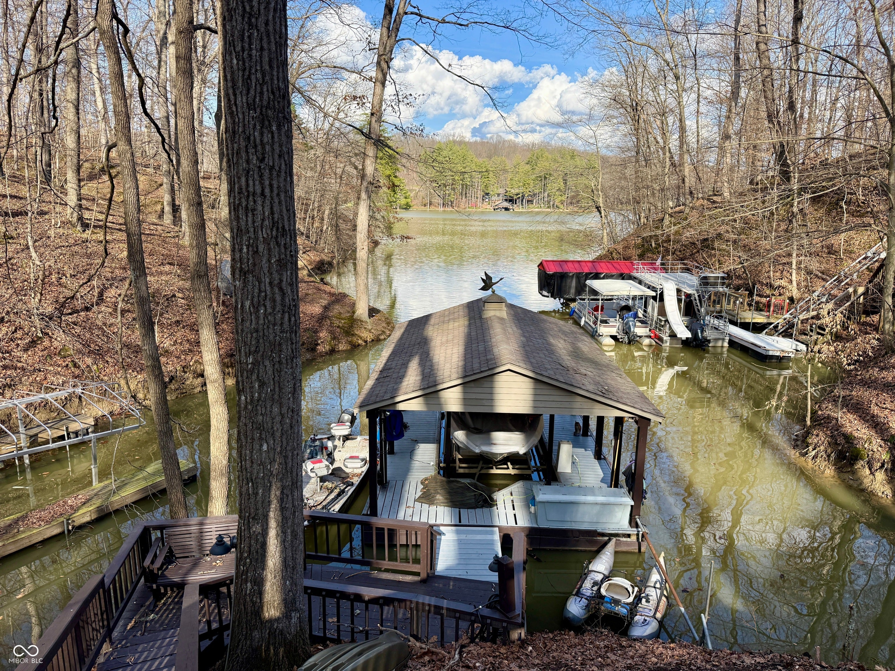 Beautiful Updated Lamb Lake two-story home lakefront home with a walkout basement and private boat dock. Designed to maximize the lake views, the home features large windows and new sliding glass doors that bring in natural light and showcase the scenic surroundings. The main level includes hardwood floors, a gorgeous custom kitchen with tile flooring and granite countertops, and comfortable living spaces ideal for both everyday living and entertaining. The generous primary suite overlooks the lake and features a well-appointed bath with a soaking tub and walk-in shower, creating a relaxing retreat at the end of the day. 4 bedrooms and 3 full baths there is plenty of space for family and guests. Full bath and bedroom or office in basement and also a bonus room that would make a wonderful wine room. Outside, youll find a boathouse, ample parking, and a four-car garage-perfect for lake toys and storage. Surrounded by wooded privacy, the property feels peaceful and secluded while still offering access to all the amenities Lamb Lake is known for, including boating, fishing, water skiing, and a private beach with a shelter house.
