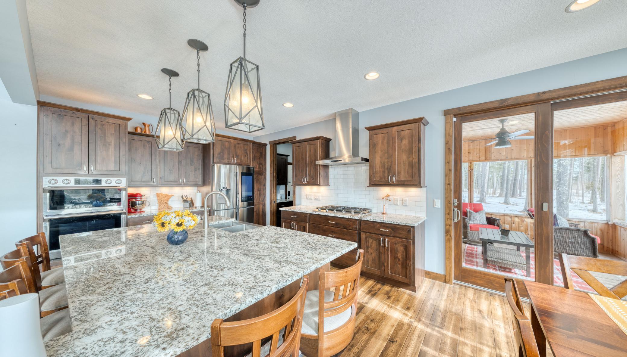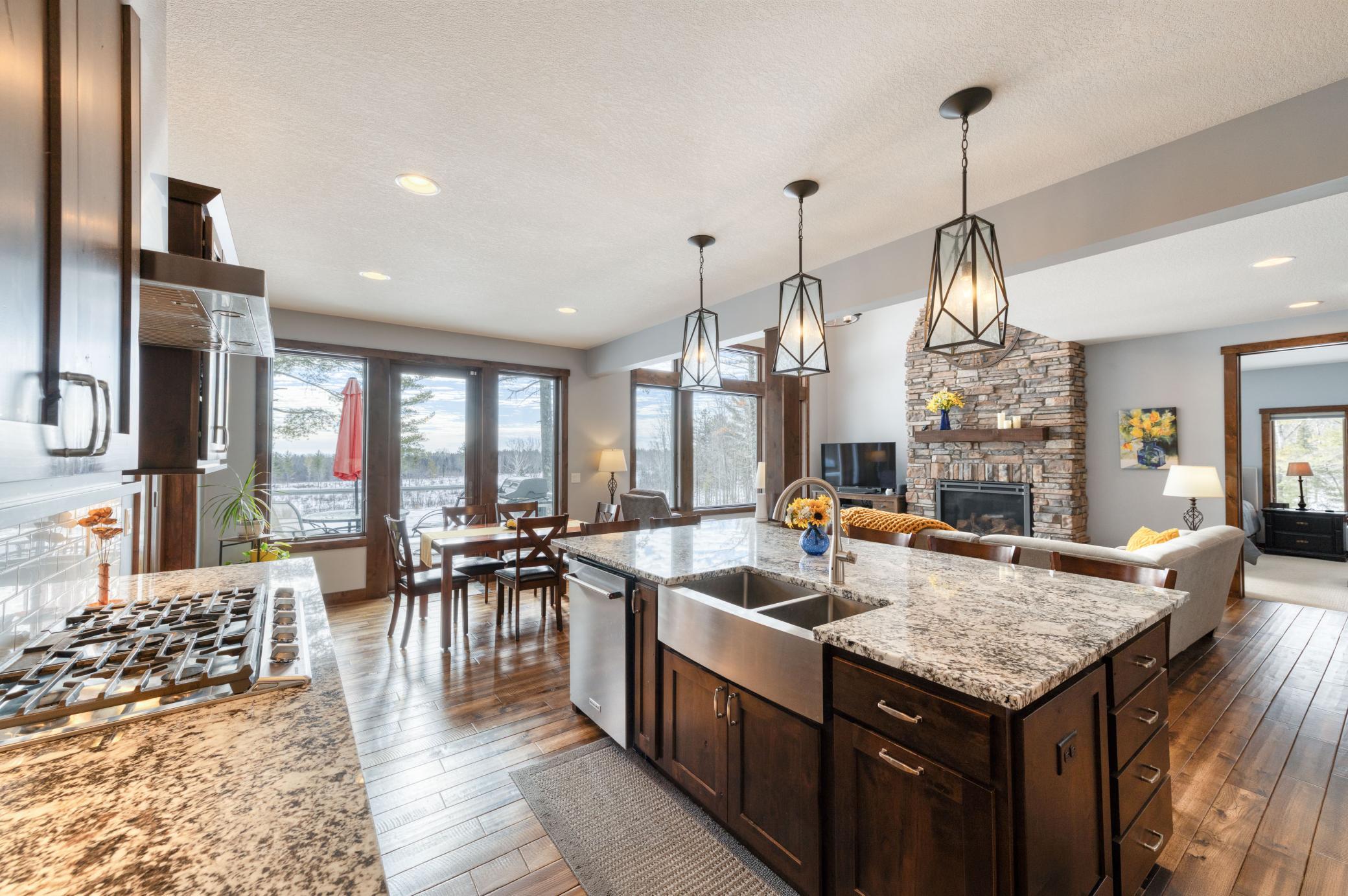 Beautiful Updated Lamb Lake two-story home lakefront home with a walkout basement and private boat dock. Designed to maximize the lake views, the home features large windows and new sliding glass doors that bring in natural light and showcase the scenic surroundings.