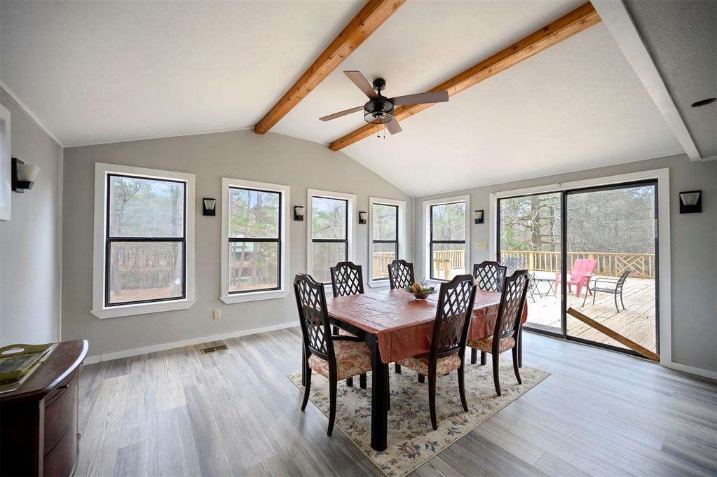 Stunning 4 bedroom, 4-bathroom home blends timeless craftsmanship with modern comfort and style built in 2018. 30 acres nestled among towering old-growth pines and boasting approximately /-700 feet of frontage on the Little Stewart River, this property offers a rare combination of privacy, elegance, and natural beauty.