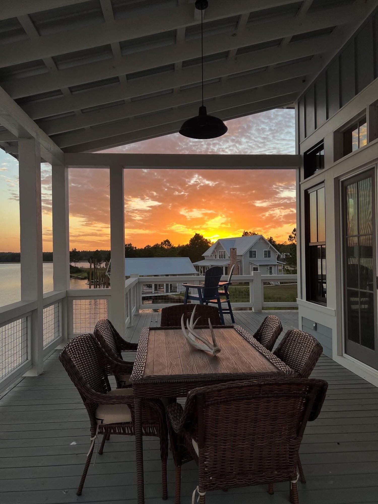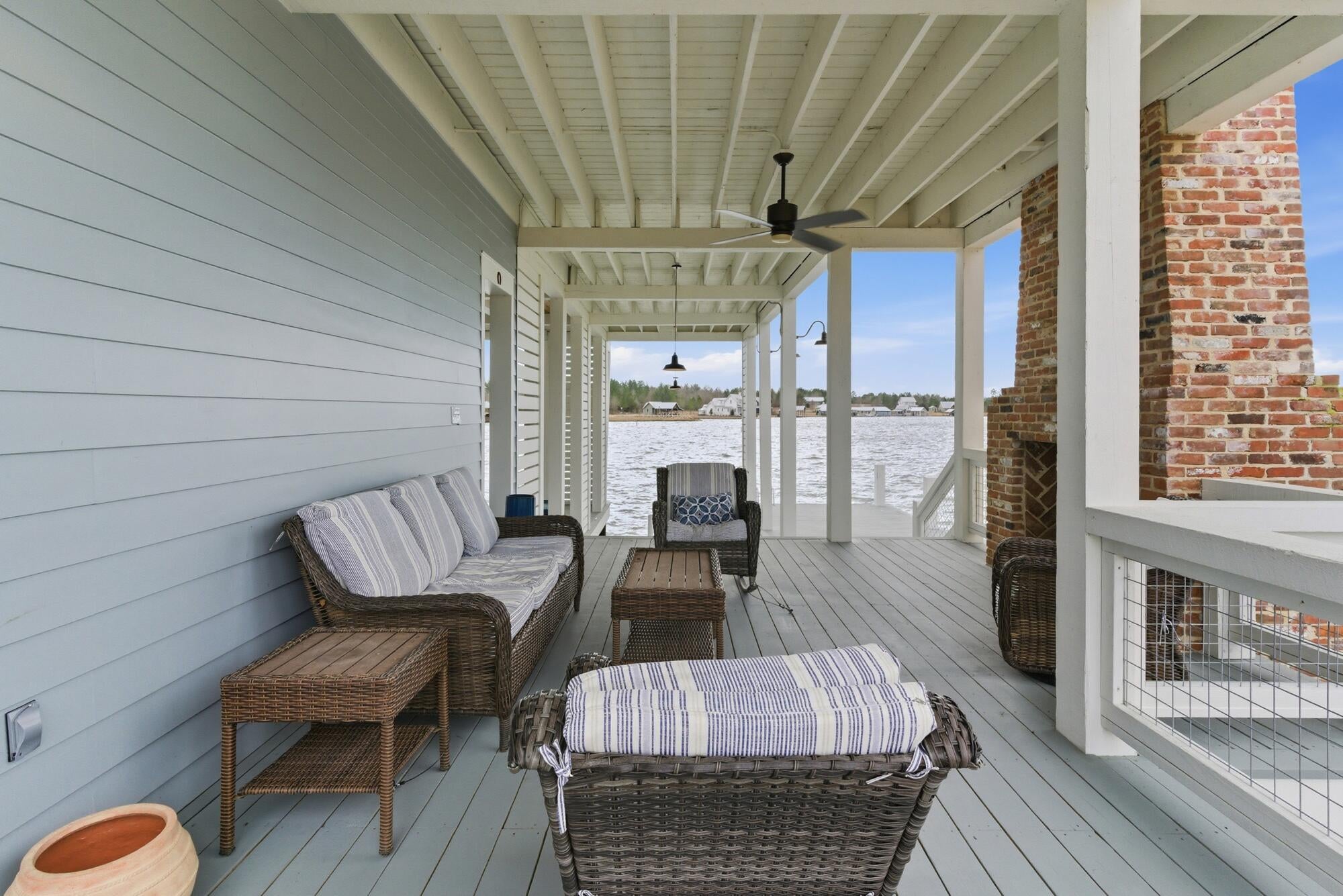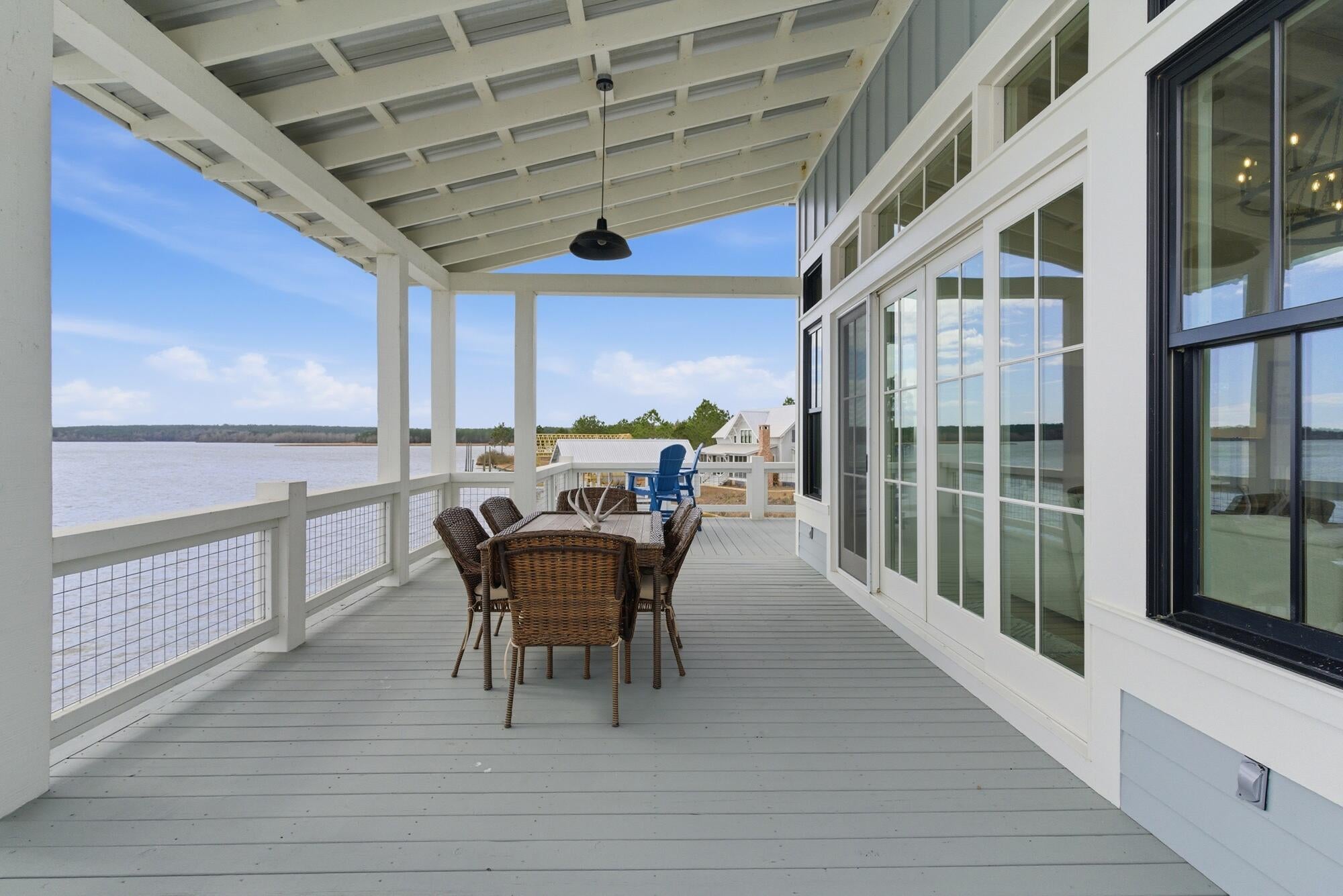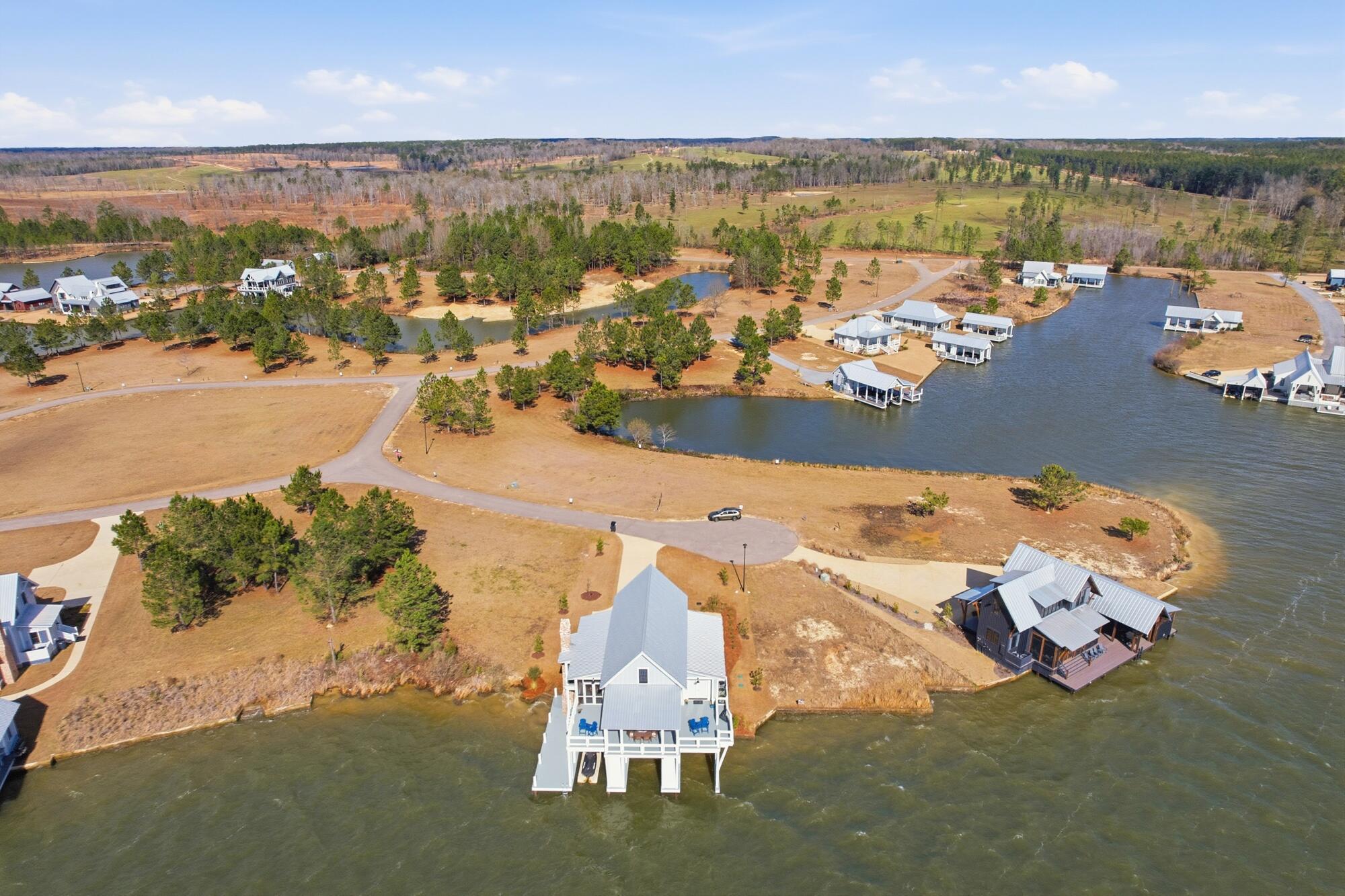 Absolutely the most spectacular view in Big Bay -- paired with an equally spectacular home. Whether youre searching for a primary residence or a lakefront retreat, this property delivers luxury, comfort, and unforgettable sunsets.With 2,564 square feet of interior living space and an extraordinary 2,823 square feet of covered and open porch space, this three-level home was designed for both relaxation and entertaining.Outdoor living here is unmatched. A stunning screened porch, built by renowned mason Clayton Thompson of Thompson Masonry, features double gas log fireplaces (one on the main deck and one on the lower level) -- creating the perfect year-round setting to watch the sunset, the big game, or simply enjoy the lake breeze. Wraparound covered and open decks extend out over the water, placing you truly ON the lake.The lower-level outdoor space includes a covered porch with gas log fireplace, a sun deck, two boat slips, and a jet ski slip complete with dock. A large storage room offers flexibility as a home gym, golf cart garage, or additional storage. Concrete steps built into the seawall provide easy access directly into the lake.Inside, the lower level welcomes you with a bright foyer, two bedrooms, one bath, and direct access to the outdoor living areas and boat slips.The main level showcases breathtaking 180-degree lake views beneath a soaring wood cathedral ceiling in the living room. The open-concept kitchen features an oversized quartz island, upgraded appliances and lighting, and panoramic water views from nearly every angle. Also on the main level: a butlers pantry, laundry room, half bath, and primary suite. With porch access from the living room, kitchen, and primary bedroom, youre never more than a few steps from the water. The screened porch just off the kitchen is already plumbed for an outdoor kitchen.Upstairs, a large bedroom with an adjoining upscale bath provides a private retreat for guests or family. Luxury vinyl plank flooring runs throughout the entire home -- ideal for easy lake living.The current owners are the original owners and have thoughtfully enhanced the property with numerous upgrades, including a striking custom library wall with rolling ladder, the addition of the butlers pantry, electronic Roman shades, upgraded landscaping, and more.Located just 30 minutes from Hattiesburg and 90 minutes from New Orleans, this home offers both convenience and escape. Big Bay Lake is a 1,000-acre private lake with 21 miles of shoreline inside a gated community featuring a beach and boat ramp. Here, your days can be filled with boating, skiing, paddleboarding, fishing, birdwatching, grilling with friends, and soaking in unforgettable sunrises and sunsets.Give yourself the gift of tranquility and serenity, adventure and sport.