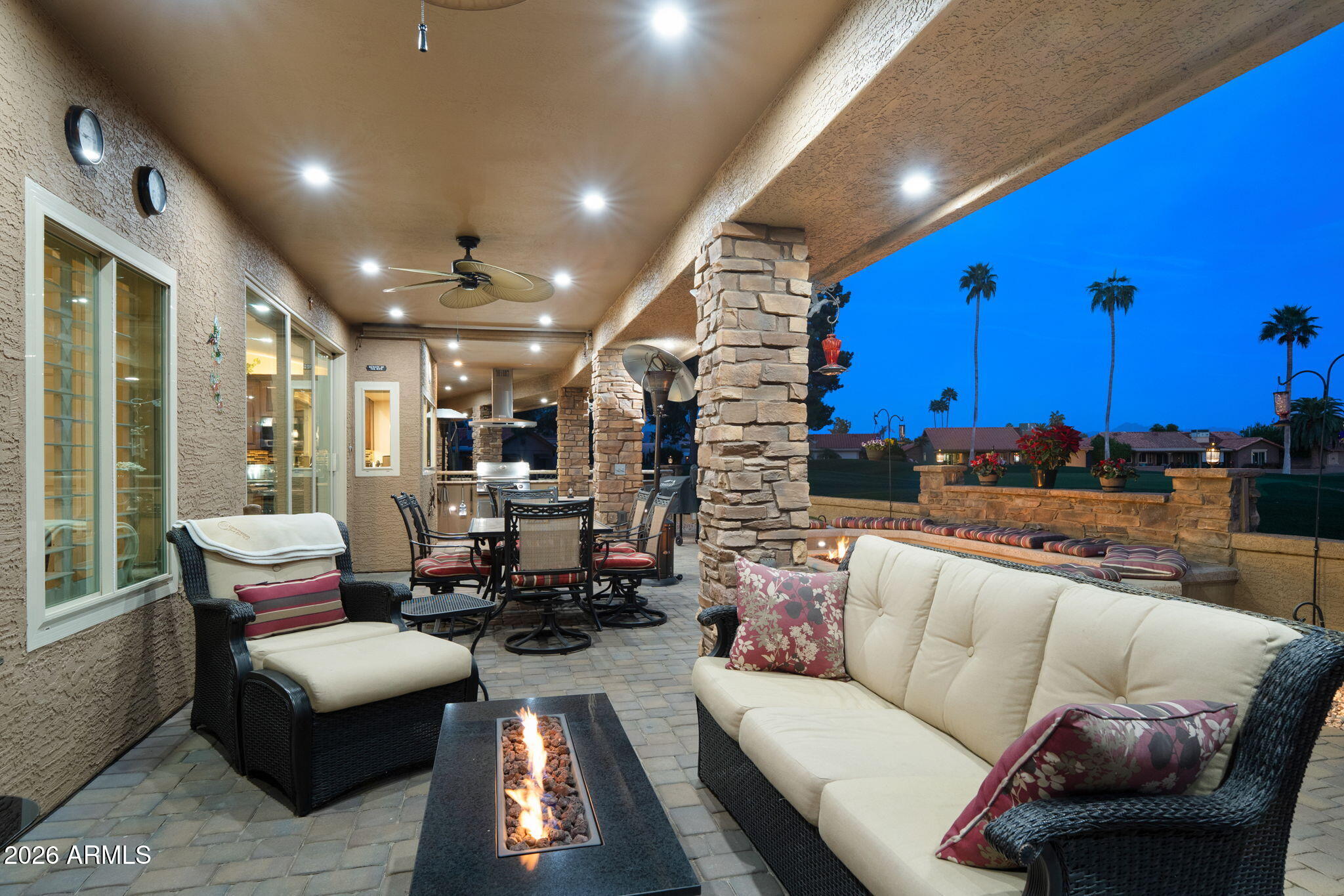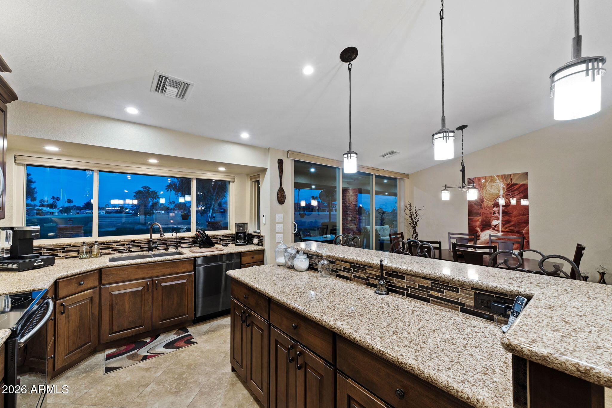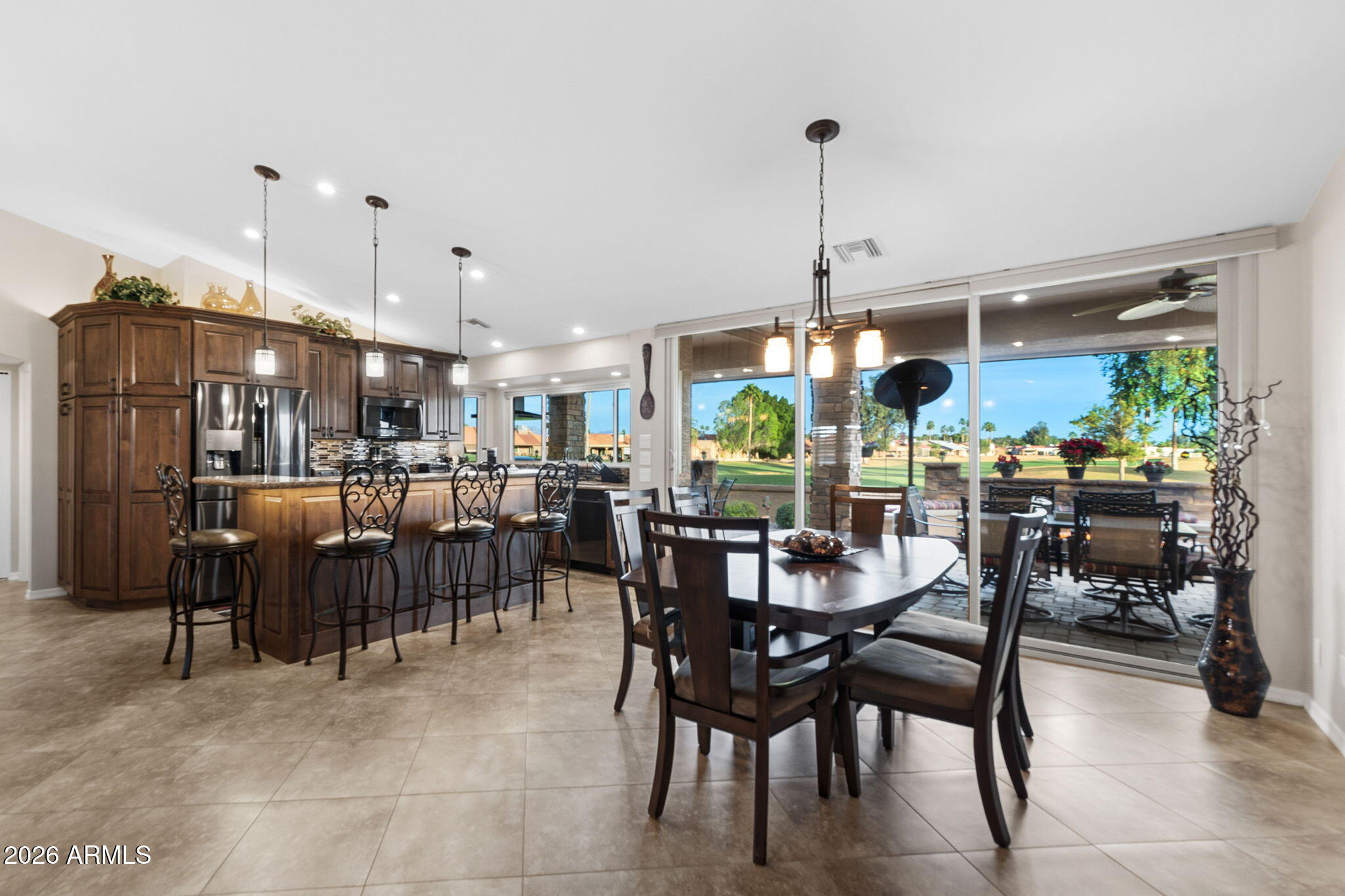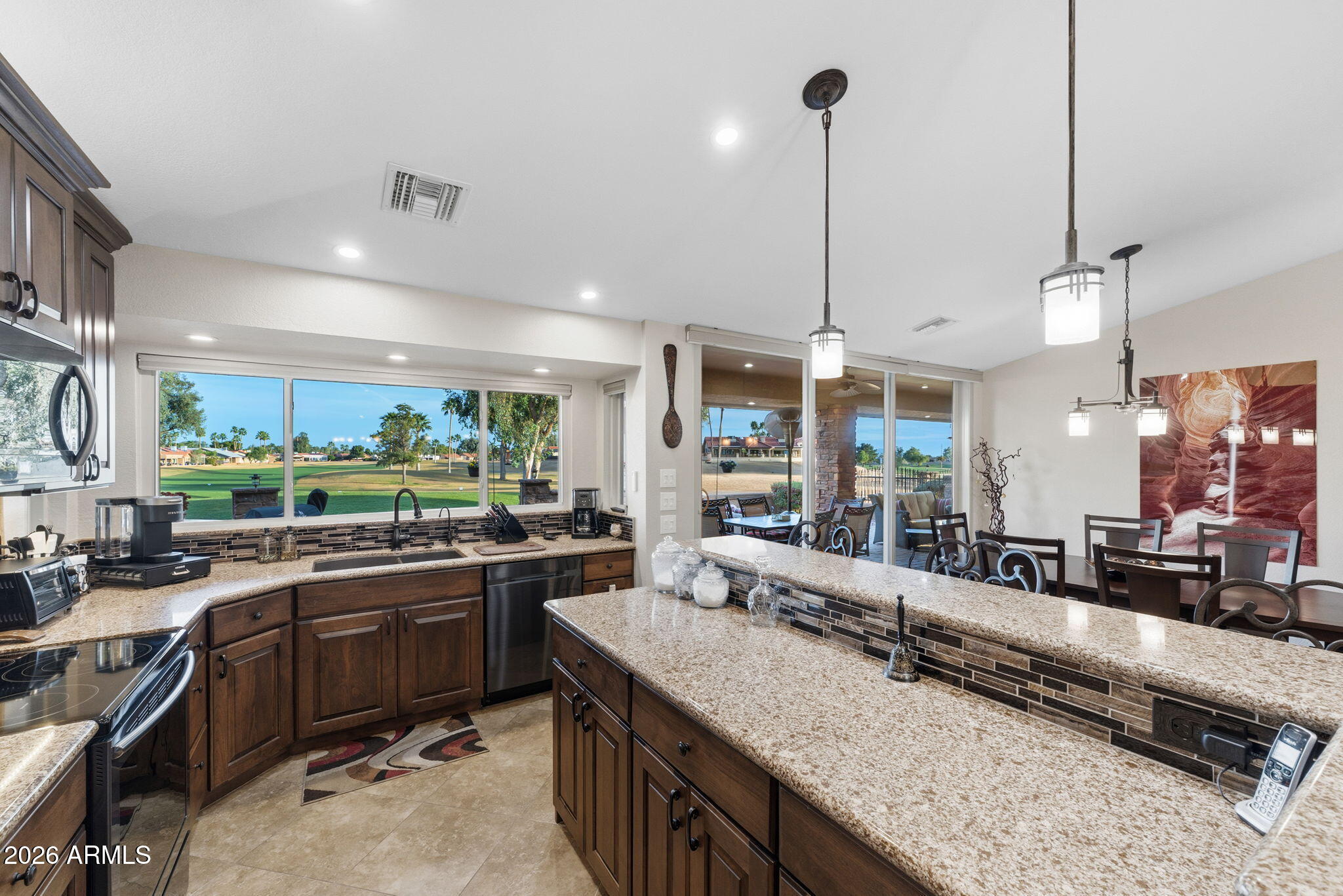 This stunning, remodeled home sits on a premium golf course lot on the 4th green of Coyote Run. From the moment you arrive, youll love the inviting front courtyard and pavered entry! Enter into an open and spacious home with vaulted ceilings and recessed lighting.
