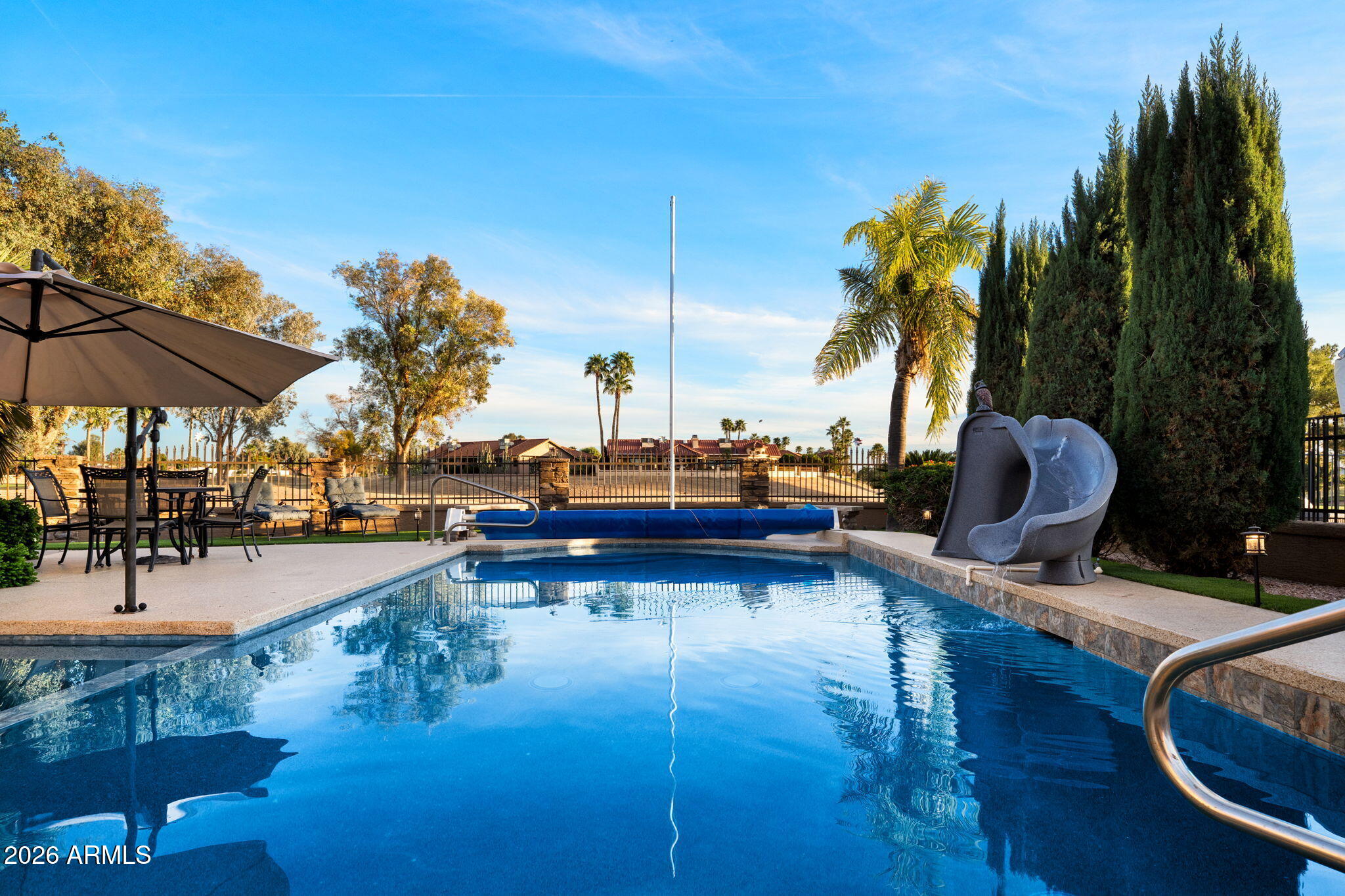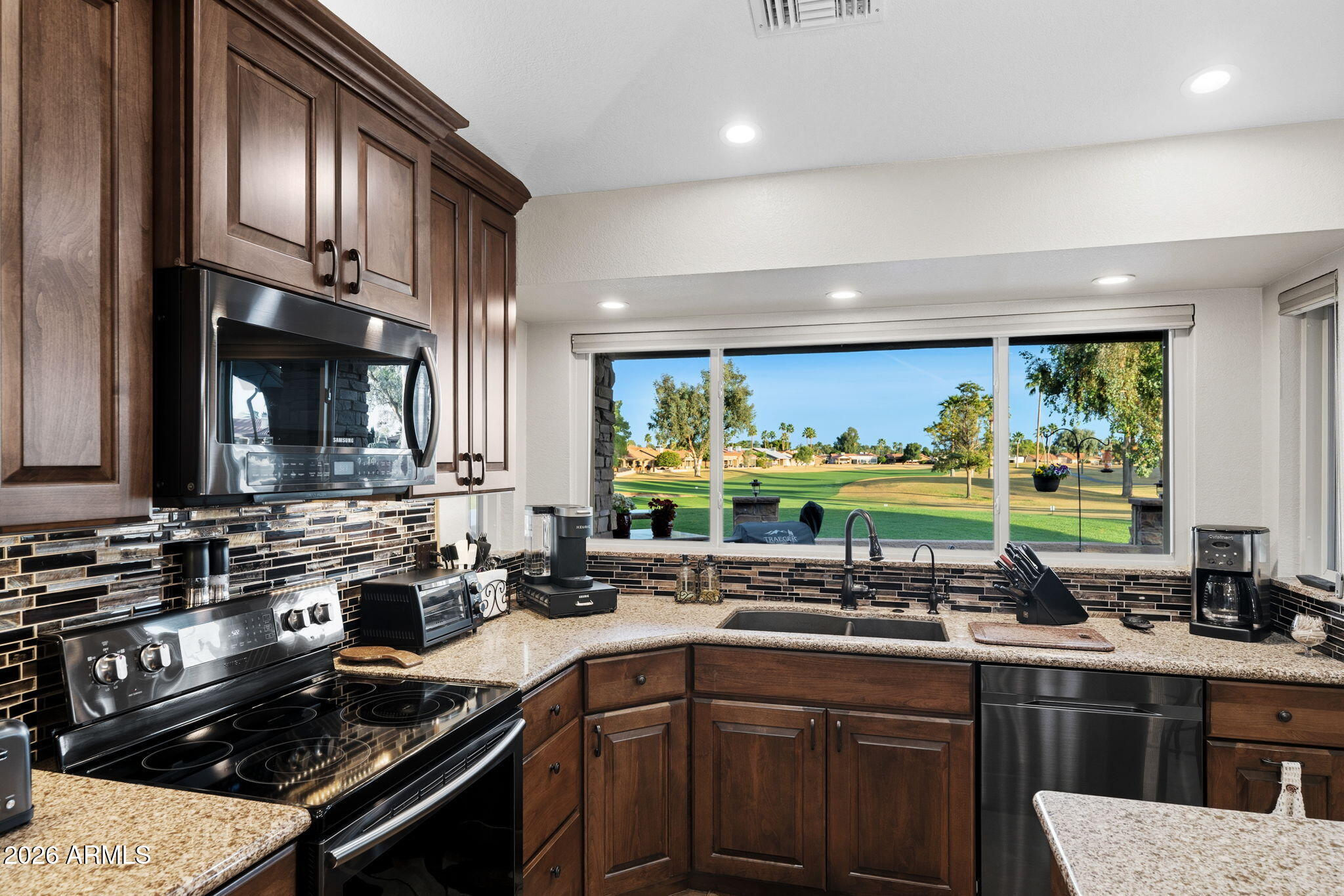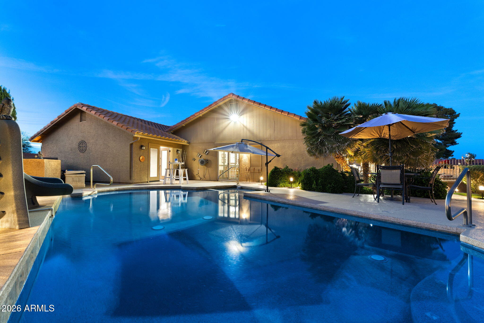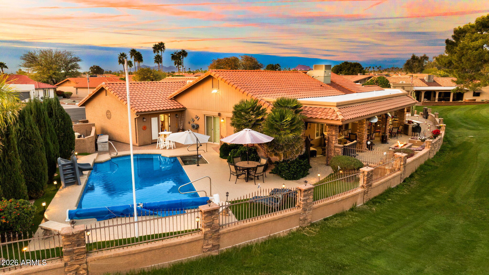 This stunning, remodeled home sits on a premium golf course lot on the 4th green of Coyote Run. From the moment you arrive, youll love the inviting front courtyard and pavered entry! Enter into an open and spacious home with vaulted ceilings and recessed lighting.