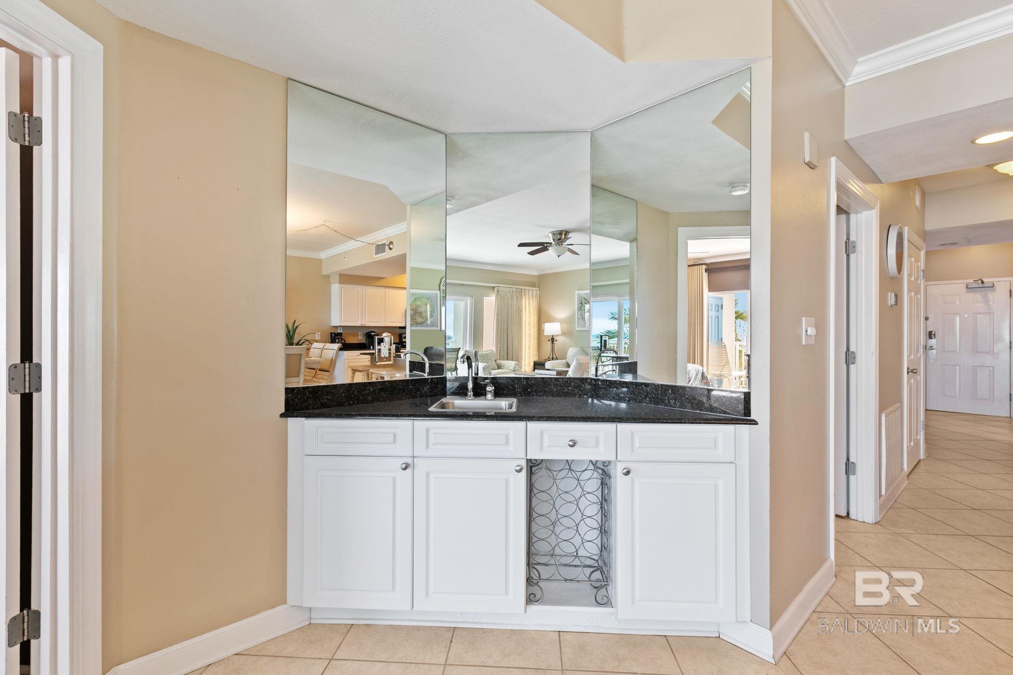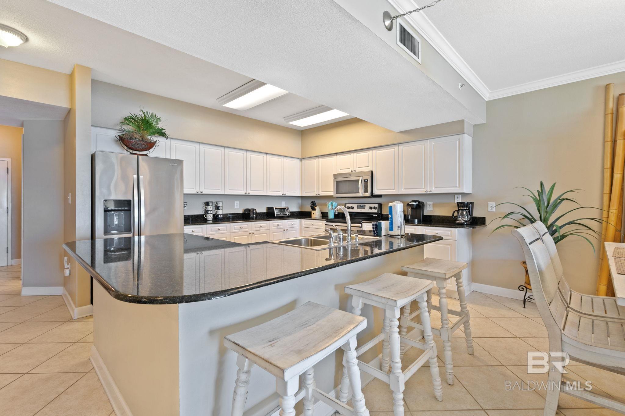 Welcome to Admirals Quarters, one of Orange Beachs most sought-after luxury Gulf-front condominiums. Perfectly positioned in the heart of Orange Beach, this beautifully renovated 3-bedroom, 3-bath residence offers over 1,600 square feet of open, light-filled living with stunning Gulf-front views. Thoughtfully furnished by Coastal Creations, the condo features Sunbrella fabrics, custom drapery throughout, stainless steel Whirlpool appliances, granite countertops, and a convenient wet bar with sinkideal for entertaining. The spacious private Gulf-front balcony, accessible from both the living area and the primary suite, invites seamless indoor-outdoor living. The primary bathroom has been remodeled, showcasing a large walk-in shower and dual vanities. Admirals Quarters offers resort-style amenities including indoor and outdoor pools, a hot tub, and a fully equipped fitness center. Family-owned and never rented, this property also presents an exceptional rental opportunity. A rare opportunity to own in one of Orange Beachs premier luxury communities. Buyer to verify all information during due diligence.