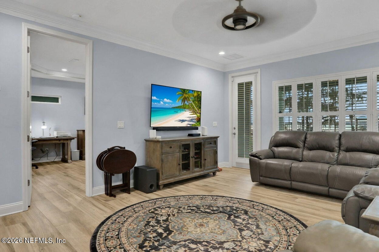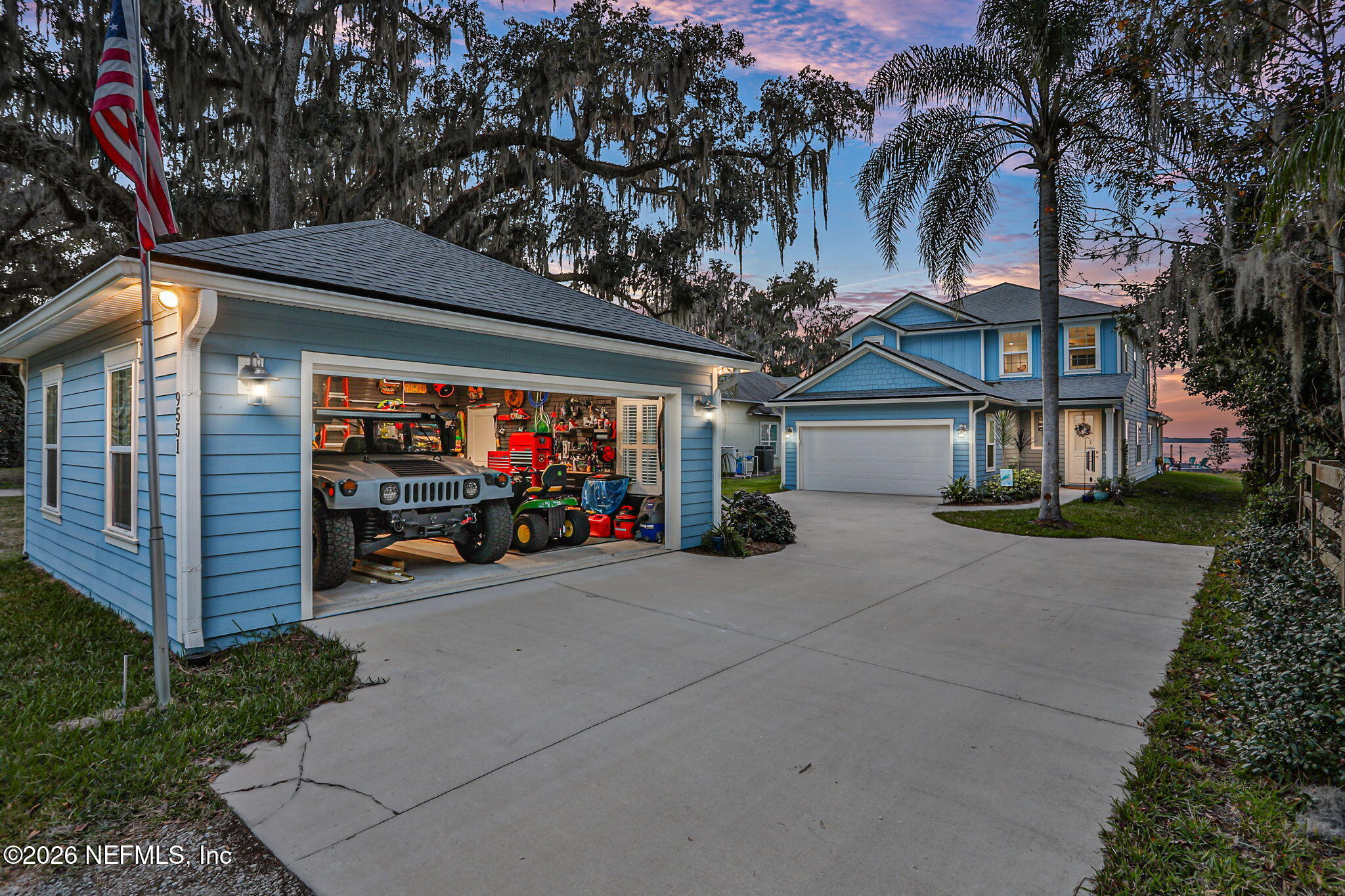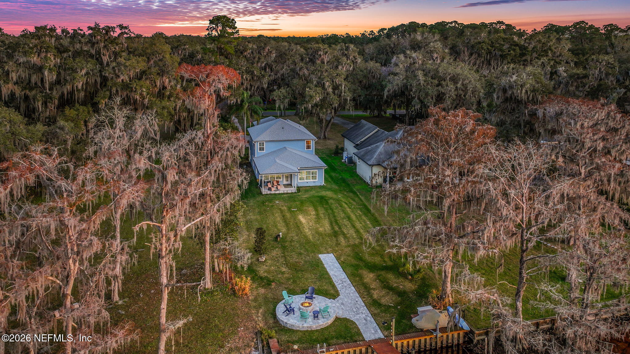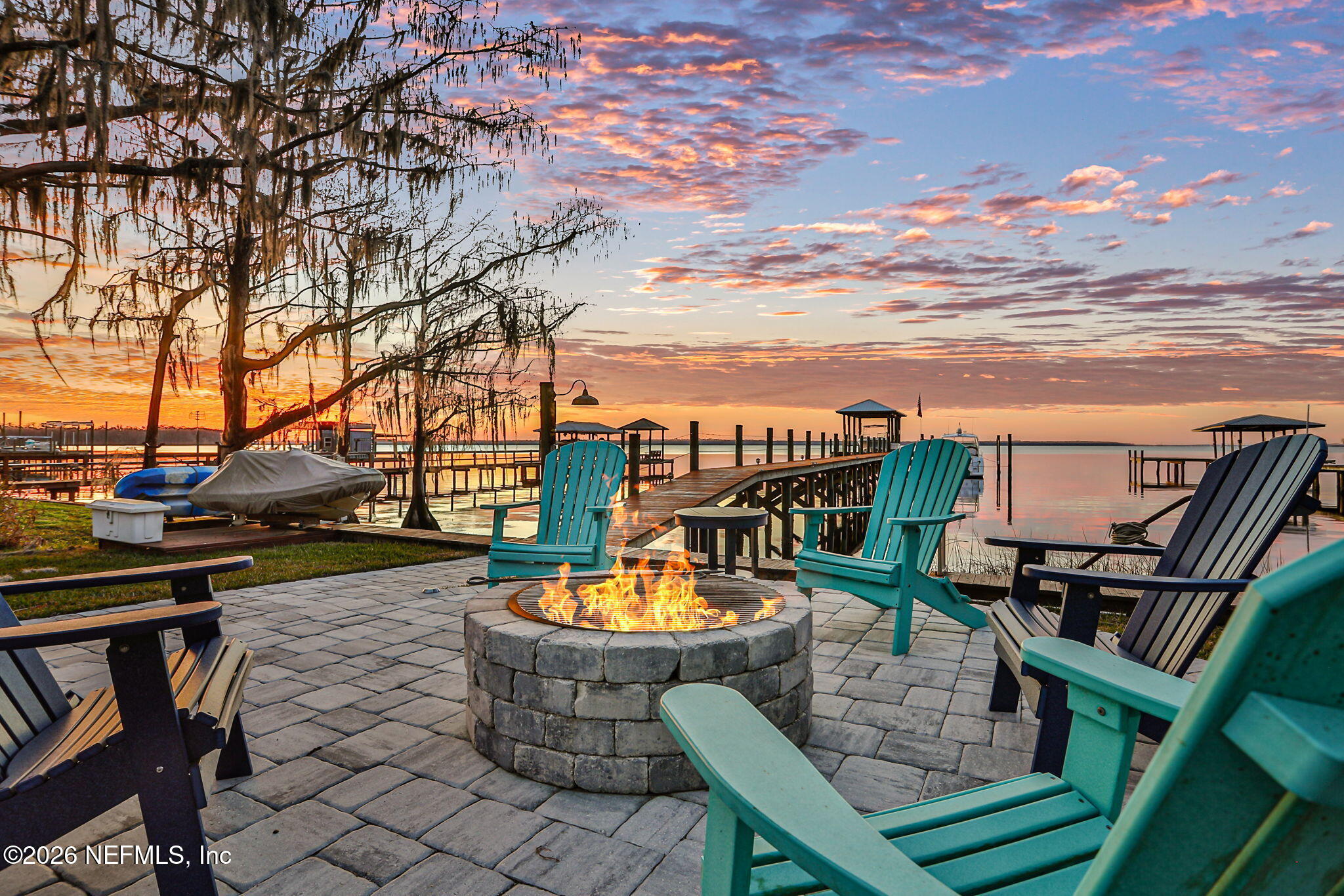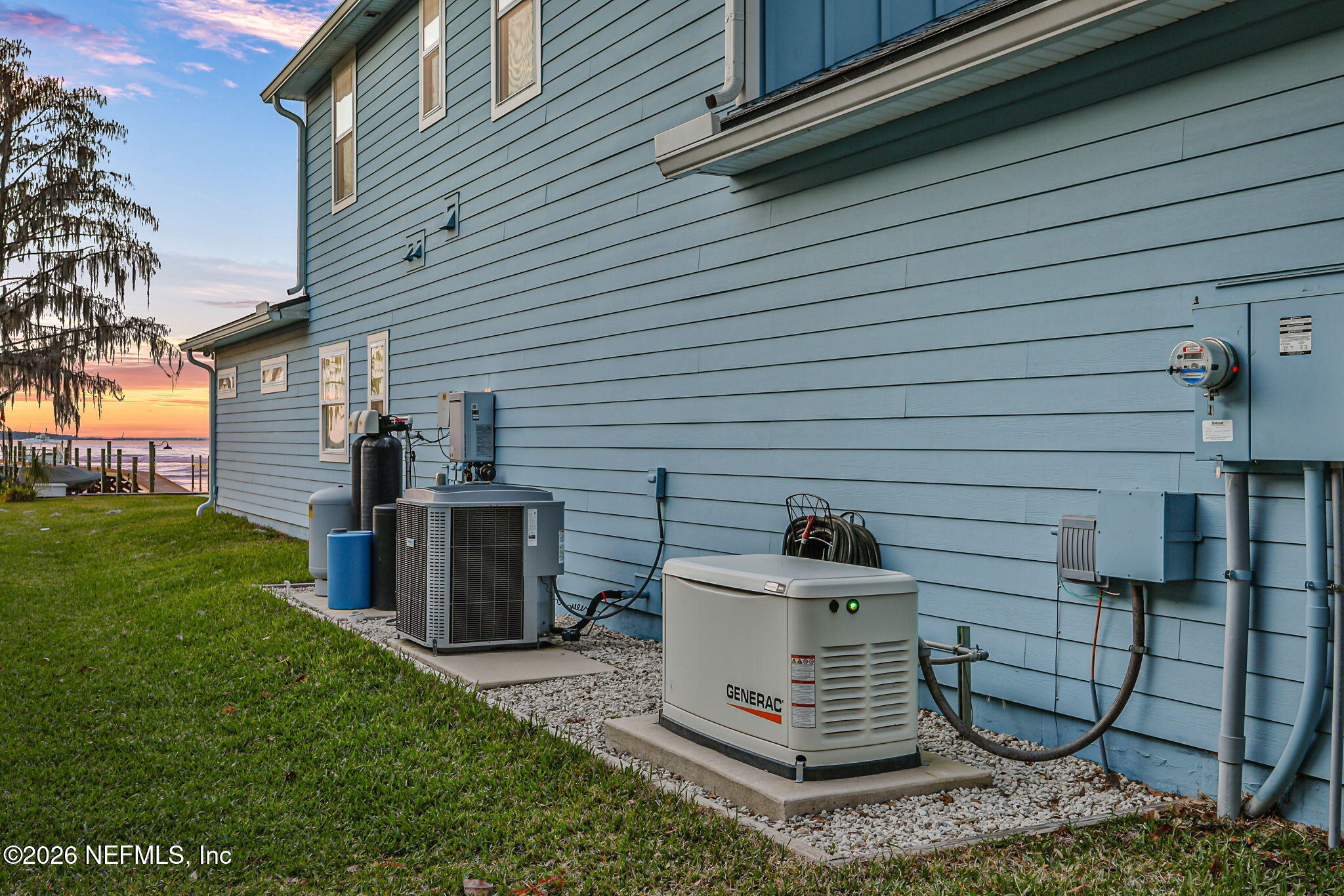The river is the jewel of this home. Newly constructed in 2024 and set along the St. Johns River with 50 feet of prime frontage, this 4-bedroom, 2.5-bath property is designed for those who want to fully embrace waterfront livingboating, relaxing, and taking in unforgettable sunsets right from their backyard. Your private dock and boating setup are exceptional, featuring a 10,000-lb boat lift, 50-amp marine power, treated water, jet ski lift, and accommodations for up to a 50 yacht. The expansive 450-ft dock includes oversized custom pylons and 50,000-lb stainless steel tide slides, while the PVC vinyl bulkhead is just four years old. Shallow water near the property makes navigation easy, and youre only about two miles by boat or car to Outback Crab Shack for casual riverfront dining. Inside, panoramic water views fill the main living areas and the primary suite, which is conveniently located on the first floor. The suite offers a soaking tub, glass walk-in shower, and spacious custom closet. The open-concept layout features 10 ceilings, tile flooring on the main level, wood floors upstairs, and an inviting flow designed for everyday living and entertaining. The kitchen includes a large granite island, gas cooktop, stainless appliances, walk-in pantry, and tankless water heater. Upstairs are three guest bedrooms, a Jack-and-Jill bath, and a loft with custom built-ins. Built for comfort and efficiency, the home sits on a stem wall foundation elevated 3 feet above the FEMA flood plane and includes an 18kW Generac whole-home generator, 380 artesian well with treatment system, foam-sealed attic, and plantation shutters throughout. Storage and functionality are abundant with an attached two-car garage featuring attic storage and organizational systems, plus a detached garage with cooling fans and dehumidifier. The backyard is ready for your vision, already equipped with water, electric, and gas lines for a future pool.Whether youre cruising, fishing, jet skiing, or simply enjoying the view, this home offers a rare combination of new construction, thoughtful design, resilient construction, and unmatched river access, an opportunity to live the St. Johns River lifestyle every day.