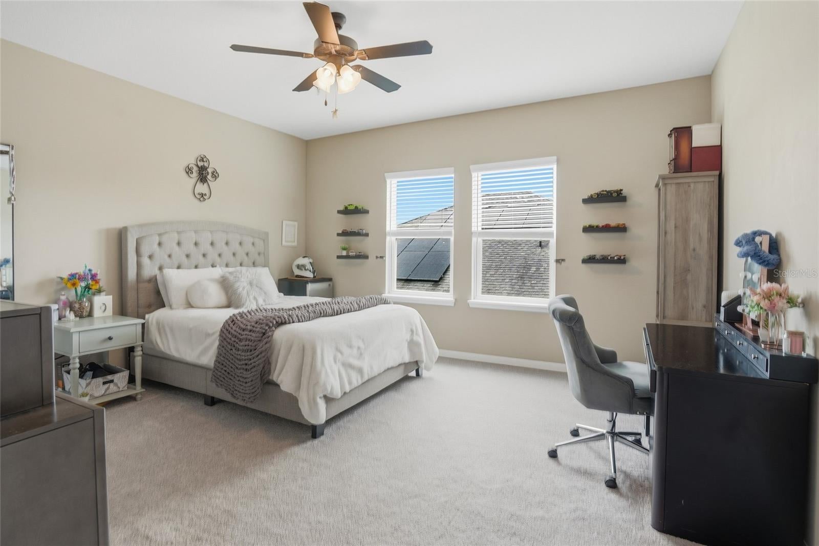 Spring Into Waterfront Luxury in Willow Point, offering over 4,800 square feet on a private waterfront conservation homesite.Welcome to this stunning Tradewinds model by award-winning Taylor Morrison located in the gated Willow Point enclave of the highly sought-after Watergrass community.Built in 2020 and thoughtfully upgraded, this home offers modern construction, energy efficiency, and move-in ready luxury. This 6-bedroom, 4-bath, 3-car garage solar-powered pool home offers more than 4,800 square feet of living space and sits on a serene waterfront conservation homesite with beautiful views and privacy.Rare opportunity to own one of the largest homes in the gated Willow Point enclave.Step inside to discover an open and airy layout featuring soaring 20-foot ceilings, abundant natural light, and elegant upgrades throughout. The main floor features wood-look tile in all living areas, a formal dining room, and a formal living room or den.The gourmet kitchen includes an induction cooktop, double ovens, stainless steel appliances, quartz countertops, and a large island, perfect for entertaining. The kitchen flows into a spacious dining nook and expansive gathering room highlighted by four-panel pocket sliding doors that fully open to a panoramic screen-enclosed lanai.Outdoor living shines with a saltwater pool with custom lighting and Wi-Fi controls, Islands Spa 5-person Jacuzzi, built-in propane grill, ceiling fans, and solar pool heating extending the swim season nearly year-round. Perfect for relaxing and entertaining.Designed to impress, the home features two owners suites, ideal for multigenerational living or a private in-law retreat.The downstairs owners suite is a peaceful retreat with a spa-style bath featuring quartz counters, double vanities, soaking tub, walk-in spa shower, and a spacious walk-in closet.Upstairs you will find the second owners suite with a private sitting room currently set up as a spa retreat with sauna. This flexible space is also perfect for a nursery, office, or yoga studio. The owners bath includes a soaking tub, glass shower, dual sinks with quartz counters, and a walk-in closet with custom shelving.The home also offers four additional bedrooms, a massive loft, and a separate media room, providing excellent space for work, play, and relaxation.Energy efficiency and technology upgrades include solar panels installed in 2023 (owned), ceiling fans throughout, whole-home water softener with circulating pump, smart thermostats, doorbell camera, three perimeter cameras, and Wi-Fi extender.The home is beautiful in the evenings with landscape lighting and programmable holiday lighting.Exterior improvements include decorative curbing, low-maintenance rock landscape beds, and additional pavers for convenient access alongside the garage and side of the home.Watergrass is one of the areas premier master-planned communities offering resort-style amenities including clubhouse with fitness center, parks, tennis courts, three pools, and walking trails.Just 1 mile from the new Publix shopping center with restaurants, retail, and everyday conveniences. Convenient access to I-75, Epperson Lagoon, and top-rated schools makes this location ideal.Enjoy Florida living at its finest in this exceptional waterfront home in Willow Point.A rare combination of space, privacy, and luxury in one of Wesley Chapels most desirable gated communities.