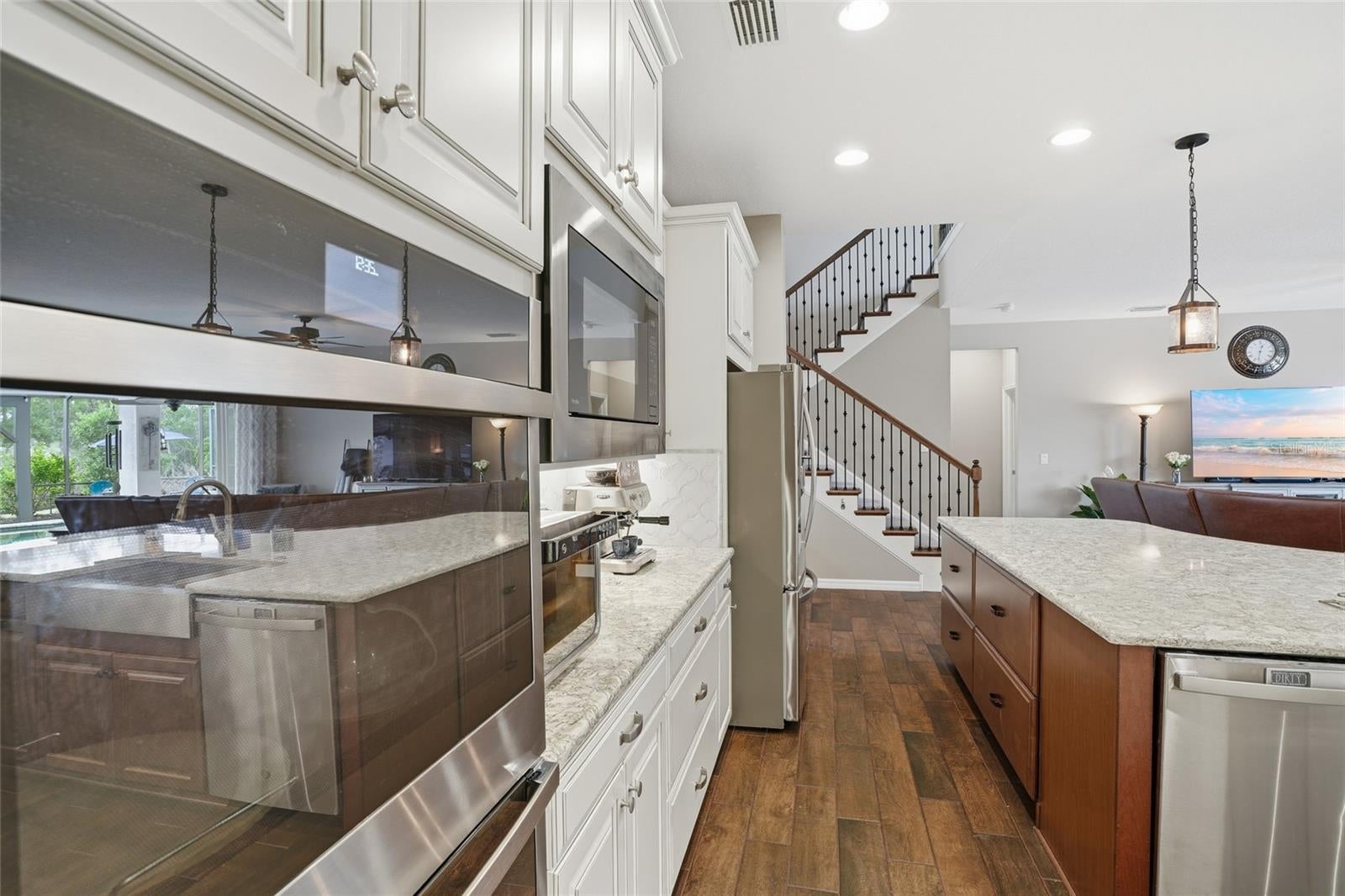 THIS PROPERTY HAS NO EQUAL! Situated on a private, 1/4 acre lot, enjoy your backyard oasis with no back neighbors or power lines overlooking Oyster Creek and the ultra-exclusive Shadow Hawk Golf Club! Travertine decking, heated pool and spa with exquisite glass tiling and quartzscape plaster, sun deck, waterfall and fountains, multiple fire features, and much more. Full outdoor kitchen with SS Blaze NG grill, pot burner, mini-fridge, SS sink, and storage. These beautifully manicured grounds encase a truly spectacular interior. No expense has been spared. Curved wood staircase and rotunda ceiling with accent paint greet you upon entry. 20 ft. ceilings lead you to the open Living/Kitchen. Kitchen boasts SS appliance suite, MASSIVE ISLAND, 42 upper cabs with glass to ceiling cabs. NO CARPET ANYWHERE! Generous size Secondary Bedroom with bay windows downstairs w/ en suite bathroom. 8-foot interior doors and 6 baseboards. Ask your Realtor for a full list of FEATURES & IMPROVEMENTS. HURRY!
