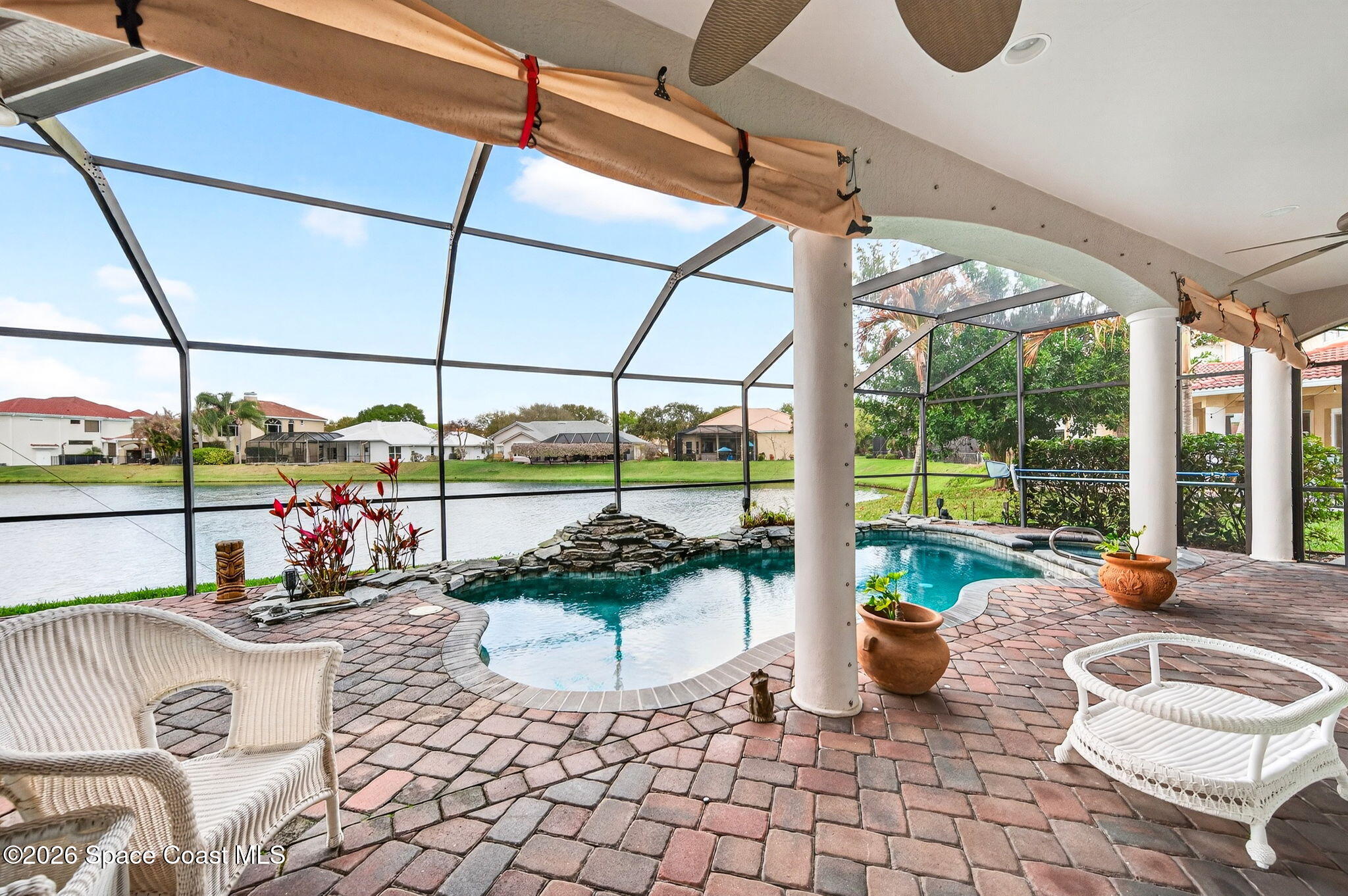 Custom executive lakefront pool home in an exclusive gated community close to the beach! This home has been meticulously maintained and cared for! High-end appliances, whole-house natural gas generator, screened lanai with beautiful waterfall, heated pool and spa overlooking lake teeming with wildlife! 10-minute walk to the beach! Open spacious floorplan with a formal living and dining room.