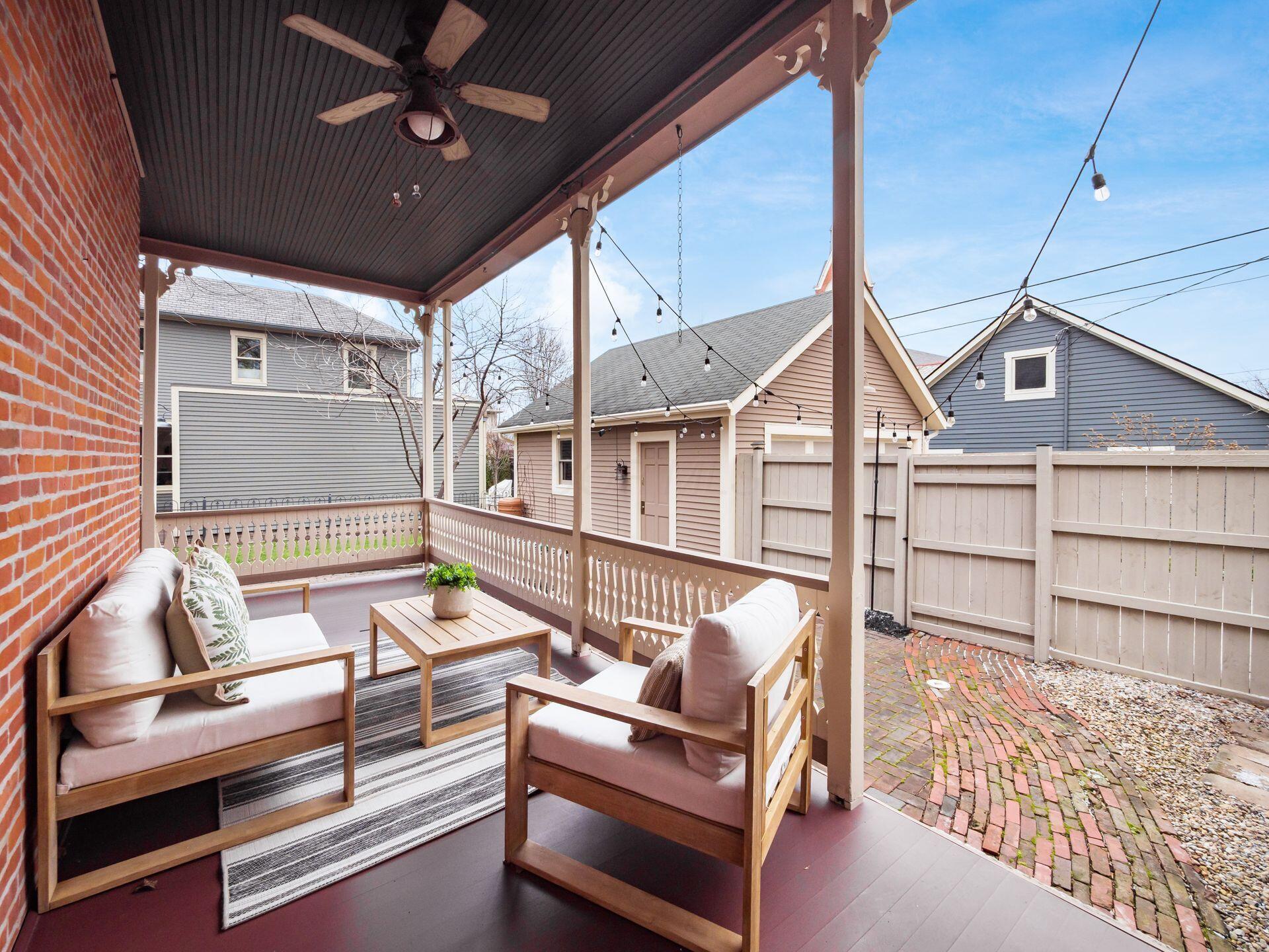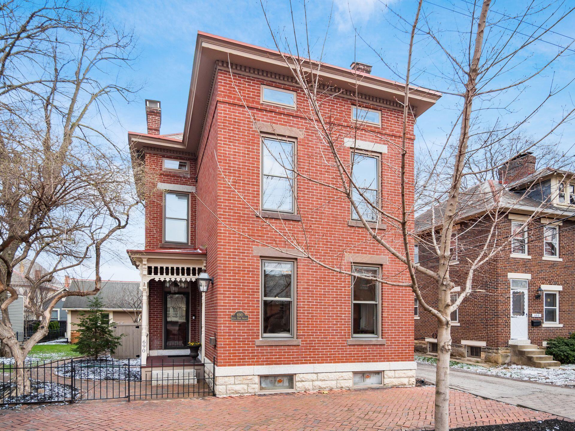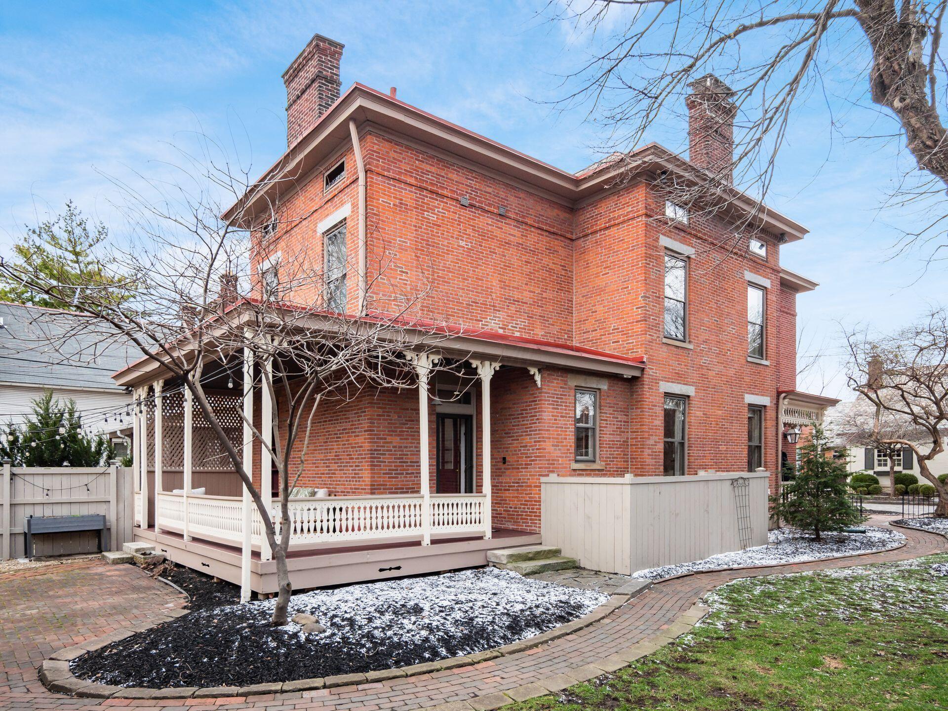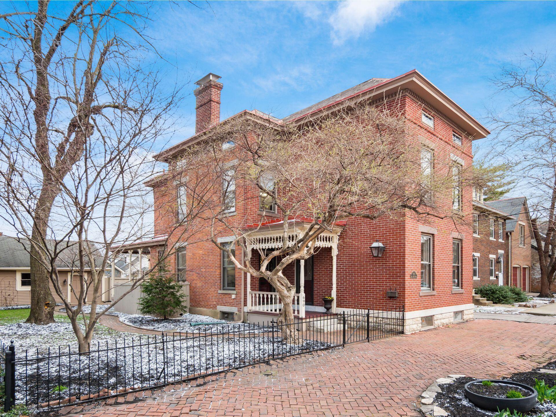 MARVELOUS 3 story Brick home located on a PREMIER street in German Village. Inside you will find 3 bedrooms, 4 FULL bathrooms, 9.5 ft ceilings, original wood floors, 2 gas fireplaces & more. The CHEFs Kitchen features 42 cabinets, KitchenAid stainless steel appliances, a center island & granite counters. The 3rd floor features 766 sf of living space with a Vaulted ceiling, eyelash windows, its own HVAC system & a NEW FULL bathroom. The large DRY basement has abundant storage, a radon mitigation system, newly waterproofed front room with sump pump. This PICTURESQUE home has a charming wrap around rear porch with historic gingerbread trim, an OVERSIZED, fully fenced yard with brick patio & a 2 CAR GARAGE. The envy of the neighborhood! Walkable to top restaurants, cafes, parks, Saturday farmers market & all the activities downtown has to offer. METICULOUSLY MAINTAINED. HVAC 2017 & 2020 (2 sets), Back Porch Restoration 2024, Garage Door 2024, 3rd Fl NEW FULL BATHROOM 2020, NEW PRIVACY FENCE 2023, BASEMENT WATERPROOF 2026, SUMP PUMP 2026 ASK TO SEE FULL LIST.