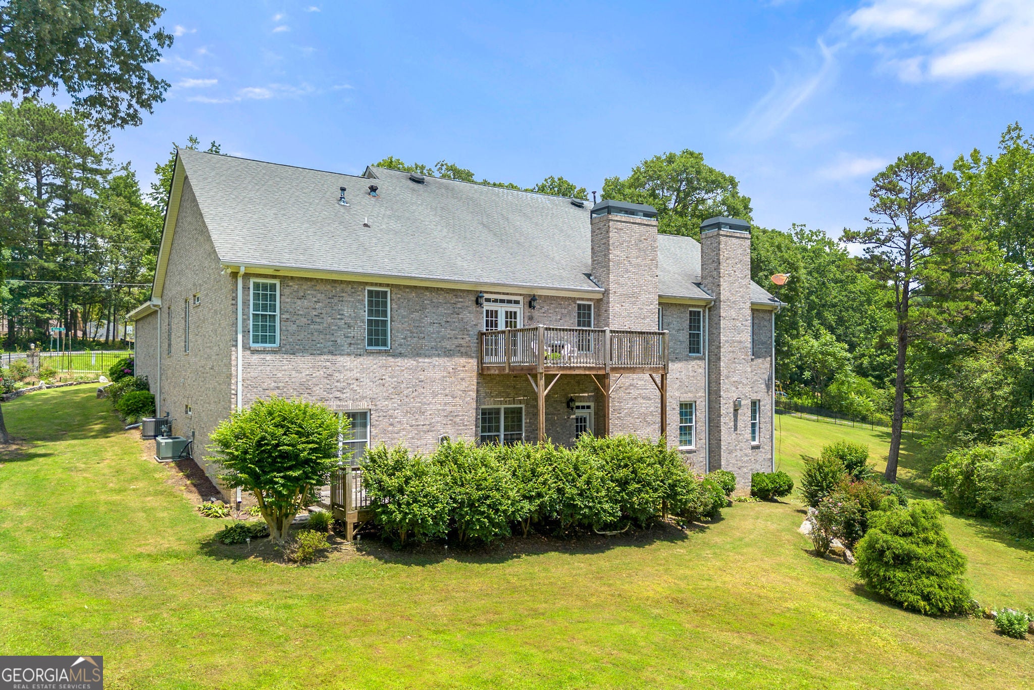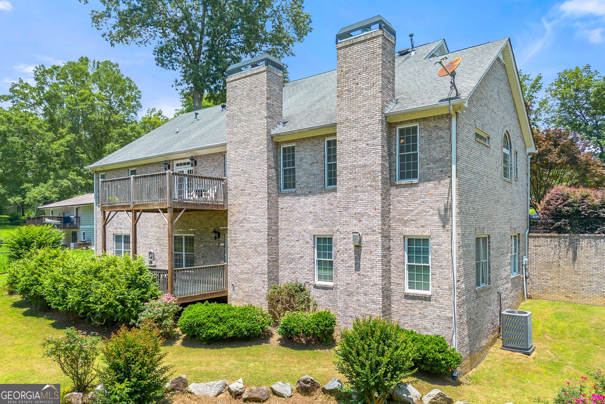No HOA! *Welcome to Your Private Oasis* Discover refined luxury in this custom-built, All-brick Ranch Estate nestled on over two meticulously landscaped acres. Grand imported Double Doors open to a home of exceptional scale and elegance with Vaulted Ceilings, gleaming hardwood floors that set the stage for sophisticated living. This impressive residence offers 6 oversized Bedrooms, 4-Full and 1-Half Bathrooms, and a dedicated Home Office. The Gourmet Kitchen is a showstopper appointed with Stainless-Steel appliances, Vented Range Hood, Double Oven, Microwave, Center Island, and opens to the lovely Living Room with Coffered Ceilings and a Fabulous Fireplace. Formal Dining room, ideal for unforgettable dinners, and Master-on-Main with Fireplace and Spa Bathroom with Soaking Tub, Double Vanity and His & Her Shower heads. Two additional Jack & Jill Bedrooms, Intercom System throughout the home and a wet bar overlooking the lush backyard. Designed for both comfort and entertainment, the expansive Terrace level features soaring 12-foot ceilings, a Bonus Room, Family Room with Fireplace, Bar, 3-large Bedrooms (1 Bedroom with a Fireplace), 2 Full Bathrooms, a bunker for storm protection, and exquisite architectural details. Whether hosting holiday gatherings or enjoying quiet evenings, the Four fireplaces throughout the home create a warm, inviting ambiance. *Outdoor Living at Its Finest* Step outside to enjoy the Two-sided, open Front Porch and two spacious Decks out back and beautifully maintained landscaping with landscape lighting that together create a serene sanctuary of peace and privacy. *Exceptional Features Include* 10-foot doors throughout the home / A stunning coffered ceiling Living Room / Three separate HVAC systems / Gated front entrance for enhanced privacy and security / Impeccably finished terrace level with the same attention to detail as the main floor / Approved subdivided land for future Guest Home / Full irrigation system / Brick construction throughout / Spacious 2-Car Garage with utility room and mud sink / Driveway parking for additional 10 vehicles / Home is connected to Public Sewer / Underground Wiring / Utilities *This home combines grandeur with thoughtful design inside and out making it a rare gem for those seeking luxury, privacy, and timeless style.
