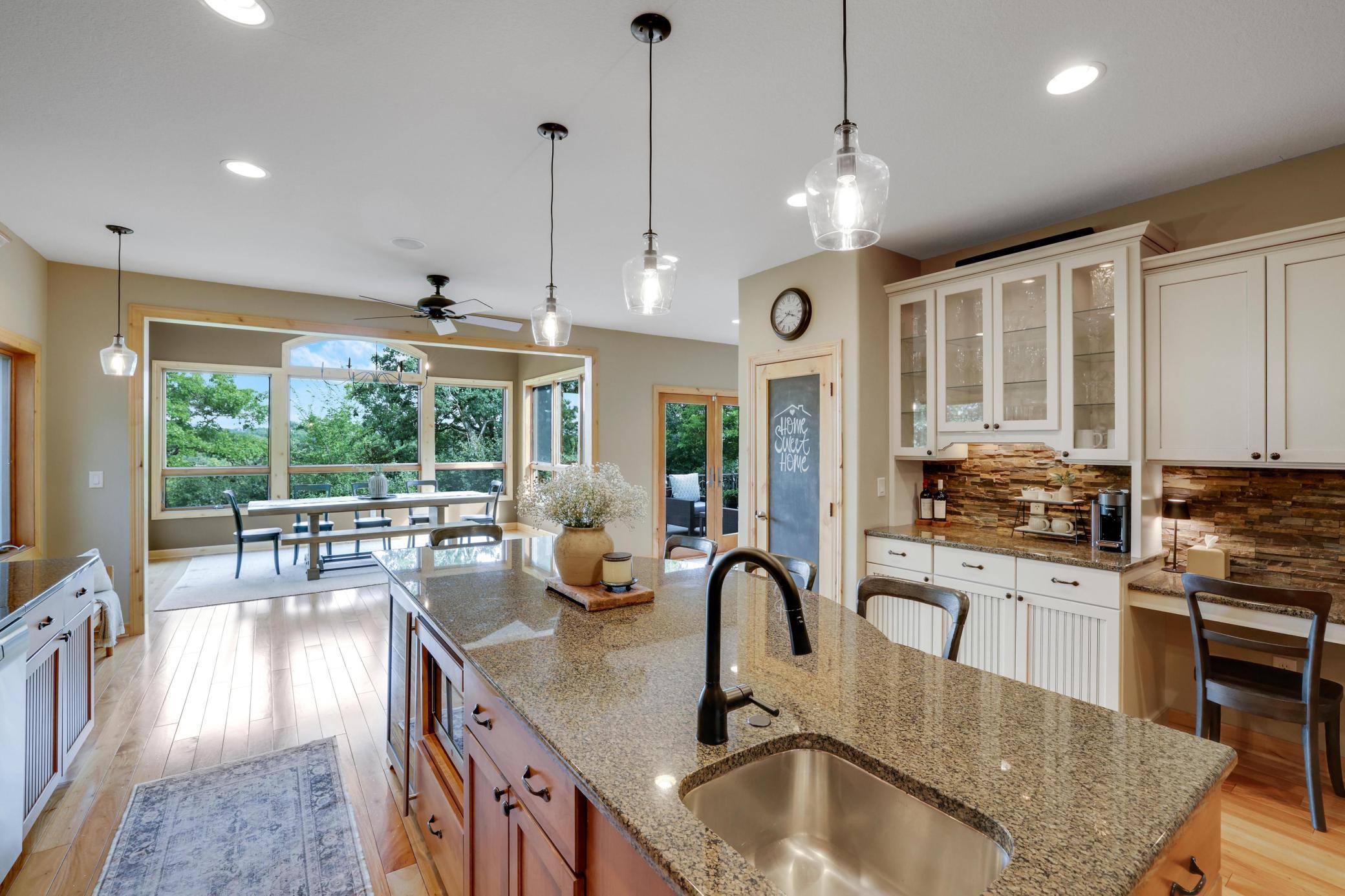Introducing a truly extraordinary, one-of-a-kind estatewhere timeless elegance meets unmatched craftsmanshiptucked within your own private 3 acre sanctuary just minutes from downtown Prescott and the breathtaking St. Croix River.Designed to impress and built to inspire, this nearly 5,500 sq. ft. masterpiece offers luxurious main-level living with sweeping, year-round views of the Big River Valleycaptured through dramatic walls of glass that flood the home with natural light and seamlessly connect you to the surrounding beauty.From the moment you enter, youre greeted by soaring vaulted ceilings, a striking floor-to-ceiling stone fireplace, and architectural details that exude sophistication and style at every turn. The chefs kitchen is nothing short of spectacularfeaturing custom cabinetry, a walk-in pantry, an oversized island with prep sink, double ovens, beverage refrigerator, and professional-grade appliancescreating the ultimate setting for both elevated entertaining and everyday indulgence.The primary suite is a private, spa-inspired retreat designed for relaxation and rejuvenation, complemented by a spacious walk-in closet. The main level also offers a refined home office and an additional bedroom, providing both comfort and versatility.The walkout lower level is equally impressivean entertainers dreamfeaturing a sprawling family room, three additional bedrooms, two full bathrooms, and a flexible bonus space ideal for a home gym, theater, or custom hobby retreat.For the enthusiast, the oversized, fully finished garage is complemented by a second tuck-under garage with direct lower-level accessblending function with thoughtful design.Impeccably maintained and curated with high-end finishes throughout, this estate is a rare offering that effortlessly blends luxury, privacy, and natural beauty. A truly unforgettable property in one of Prescotts most coveted settings.