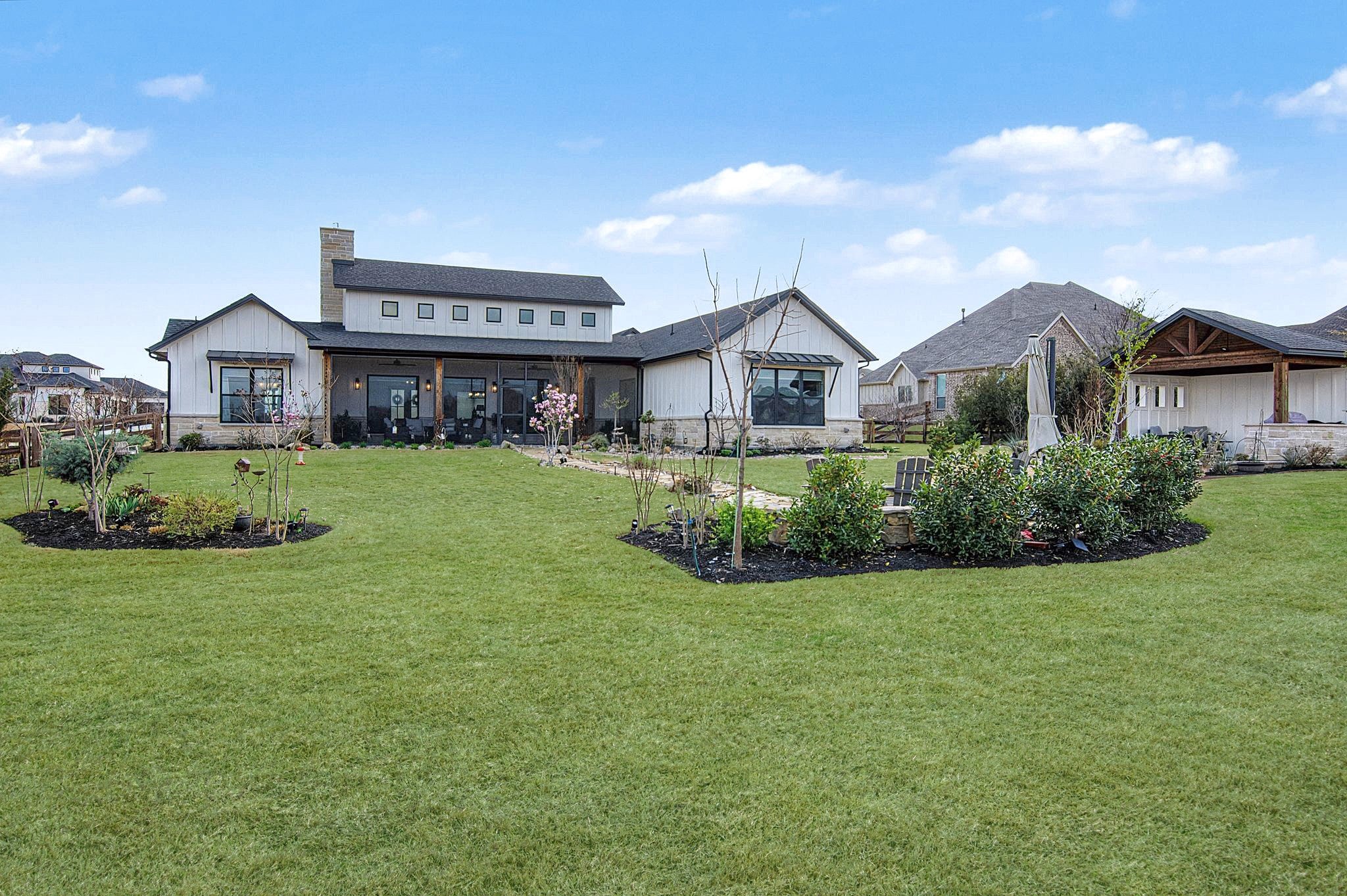 A rare offering in Five Mile, this exceptional custom rancher delivers timeless design, refined finishes, and thoughtful functionality throughout. With over 4,200 square feet, the home showcases an impressive kitchen and an open, light-filled main-level layout ideal for both elegant entertaining and everyday living. The expansive backyard is designed for seamless indoor-outdoor enjoyment, featuring generous space to relax or host, complemented by a beautifully appointed gazebo perfect for morning coffee or evening gatherings. The main-floor primary suite is a private retreat with a spacious walk-in closet and a luxurious mud-set shower. Completing the property are a 3-car attached garage and two shops. The 40x40 detached shop, offers exceptional space for vehicles, boats, and recreational collections. Meticulously maintained and thoughtfully designed, this is a distinguished opportunity in the coveted Five Mile area.