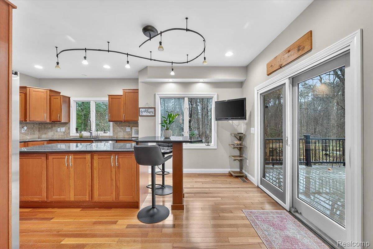 Welcome to this exceptional 5-bedroom, 4.5-bath home in highly sought-after Lake Orion, offering the perfect blend of space, functionality, and lifestyle. Conveniently located near Paint Creek Elementary and just minutes from scenic trails, including direct paved access to the Polly Ann Trail for easy biking and outdoor enjoyment.Designed for modern living, the expansive layout provides generous space for everyday living, entertaining, and working from home.The kitchen stands as a testament to culinary artistry, offering stone countertops that frame a stovetop and a sophisticated wall chimney range hood, complemented by a pristine backsplash and elegant (shaker?) cabinets. A substantial kitchen island provides abundant space for preparation, while a convenient kitchen bar and a dedicated wine cooler invite effortless enjoyment.The ensuite bathroom offers a sanctuary of relaxation, featuring a luxurious soaking tub for unwinding, alongside a meticulously tiled walk-in shower. The convenience of a double vanity and luxury bidet provide individual comfort and sophisticated utility.Step outside to your private backyard retreatfeaturing a brand new Trex premium composite deck with custom low voltage lighting, a swim spa and hot tub, a spacious concrete patio, and a custom oversized stone gas fireplace. A beautiful pergola with an operable ceiling creates the perfect setting for entertaining in any weather.Additional outdoor highlights include a dedicated garden structure with raised beds, an in-ground screened trampoline, and young apple trees that will mature for years to come.A standout feature is the impressive heated pole barn offering approximately 2,200 sq ft of versatile space with 12-foot ceilingsideal for storage, hobbies, or a workshop.Complete with an expanded, lighted driveway and additional parking, this property delivers comfort, functionality, and exceptional outdoor living.This isnt just a homeits a lifestyle upgrade.
