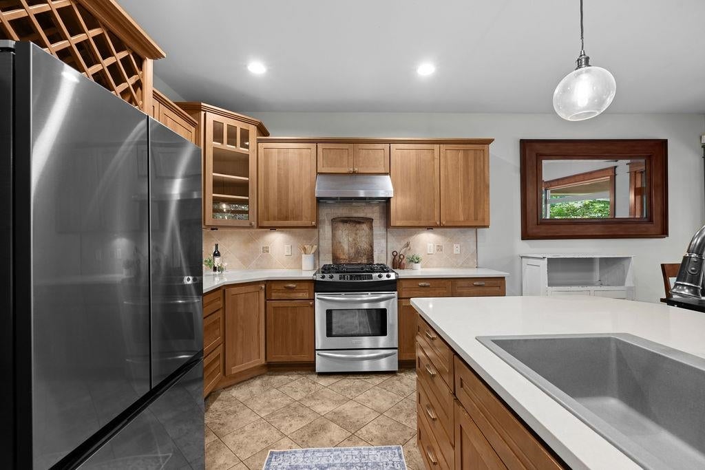 Experience the best of Oregon living in this one-of-a-kind modern retreat nestled in the forest with sweeping valley views. Designed for those who love nature, art, and sleek contemporary style, this home offers soaring ceilings, walls of glass, a cozy fireplace, and an open floor plan filled with natural light. The gourmet kitchen features a 60-inch Wolf dual-fuel range with double ovens, premium JennAir appliances, European-style custom cabinetry, an oversized island, and stunning Tadelakt Moroccan plaster walls. A stylish wet bar with under-counter fridge, ice maker, and built-in coffee maker makes entertaining effortless. Upstairs, the luxurious Primary Suite feels like a private sanctuary in the treetops, complete with an oversized closet, in-suite washer/dryer, spa-inspired bath, glass-enclosed shower, and 72-inch Native Stone soaking tub framed by floor-to-ceiling windows. Main-level bedroom offers comfort and privacy. Third bedroom finish in progress.