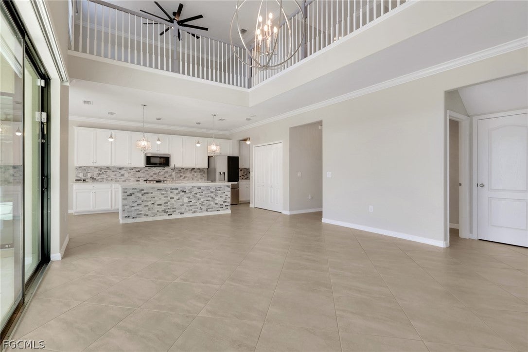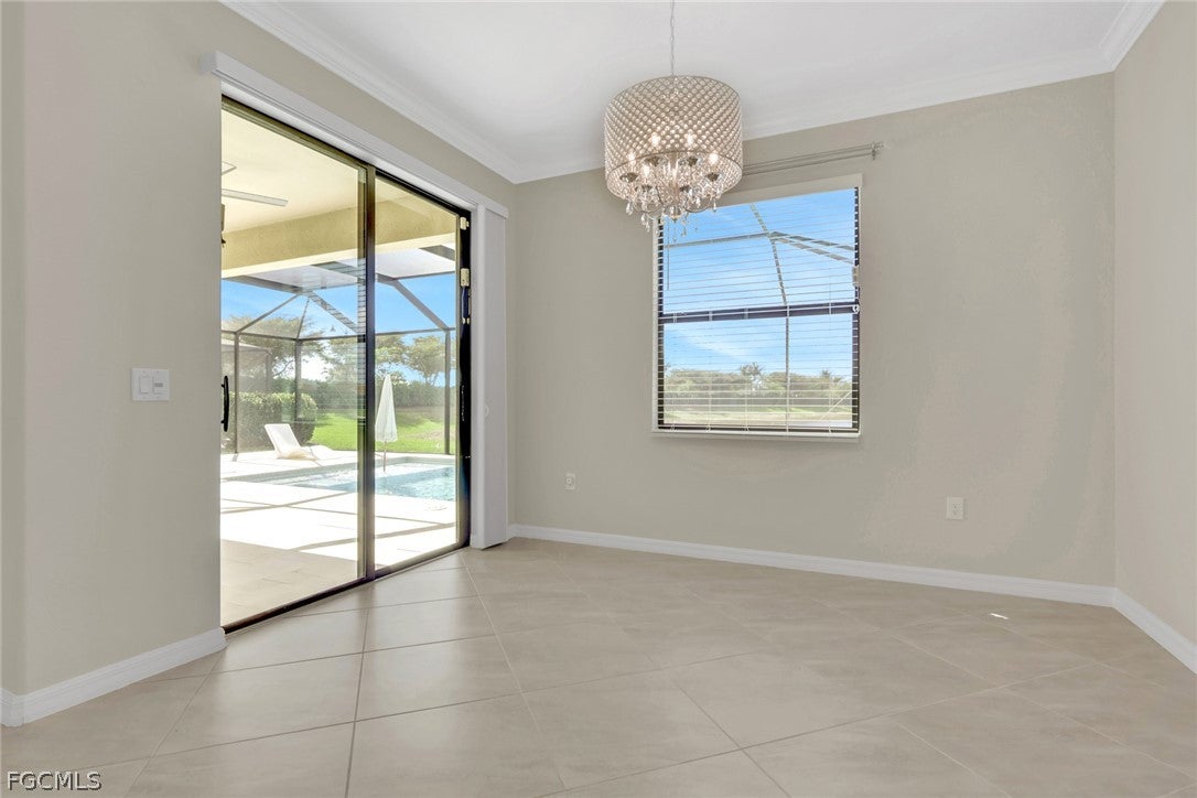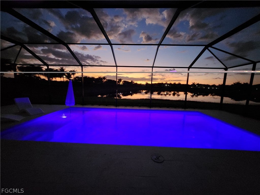 Come see this boaters dream home with insane views. This stunning pool home has a 3 car garage, 4 bedrooms including an upstairs flex room, 4.5 baths, a den, lanai, large stamped concrete deck, 8000# boat lift with wrap around dock, and much, much more.It comes turnkey so bring the whole gang and your toothbrushes and move right in. Situated on a wide water canal this home boasts spectacular intersecting canal views straight from your front door, through the French doors, overlooking the pool, across a 200 foot wide canal and straight down the intersecting canal. You really have to see this home to truly appreciate all it has to offer. The gorgeous kitchen features wood cabinetry, stainless appliances, granite countertops and backsplash, a center island for extra work space and a large walk-in pantry complete with wine fridge. The oversized kitchen also features a breakfast nook with spectacular water views. The giant lanai is perfect for entertaining poolside with expansive views and plenty of room for entertaining. Dont miss the pool bath located under the stairwell but accessible from outside for a genius use of space. Back inside the spacious primary suite features tray ceilings and incredible views and the ensuite has dual sinks, an oversized walk in tiled shower and a soaking tub. Head to the other side of the home and one guest room also has its own ensuite and the other has lanai views. next, go on upstairs to the large flex room which can be used for media room, a fourth bedroom, a family room, ect., the possibilities are endless. This home is ready to go, move in today and start living your best life immediately!