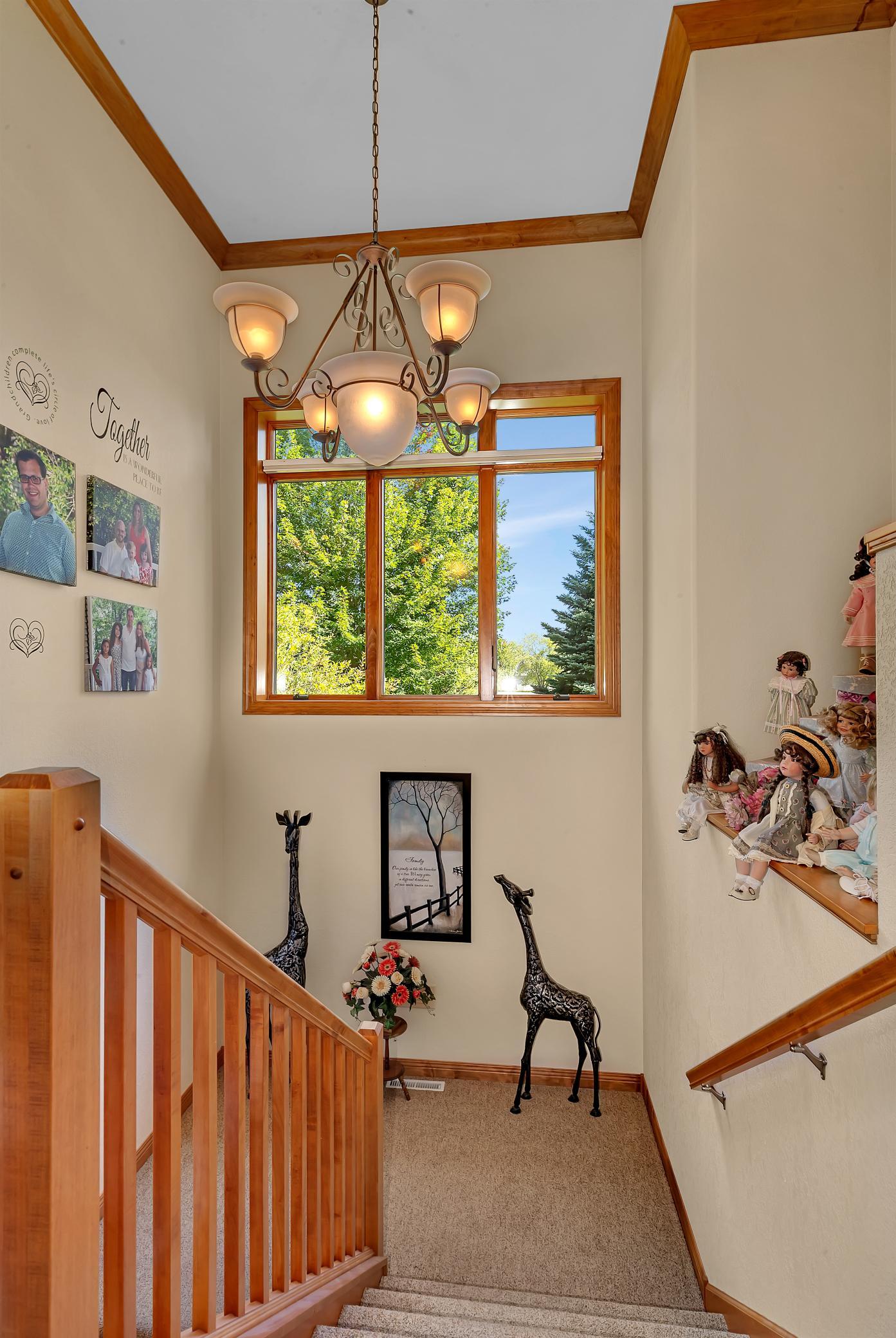 Welcome to your own private retreat - as you arrive, youre greeted by stunning all-stone and brick siding, setting a tone of elegance and durability. Recessed lighting tucked into the soffits illuminates the exterior beautifully in the evening, while stone accents and an arched, covered entryway offer a warm and inviting welcome. Architectural shingles on house and attached garage new in 2022.
