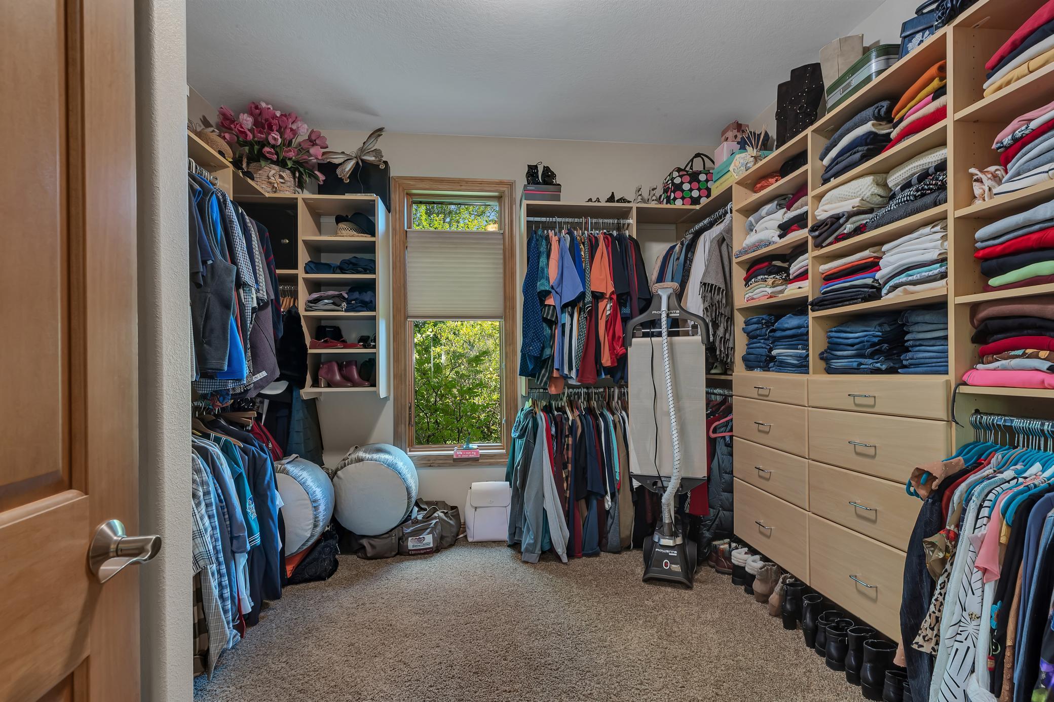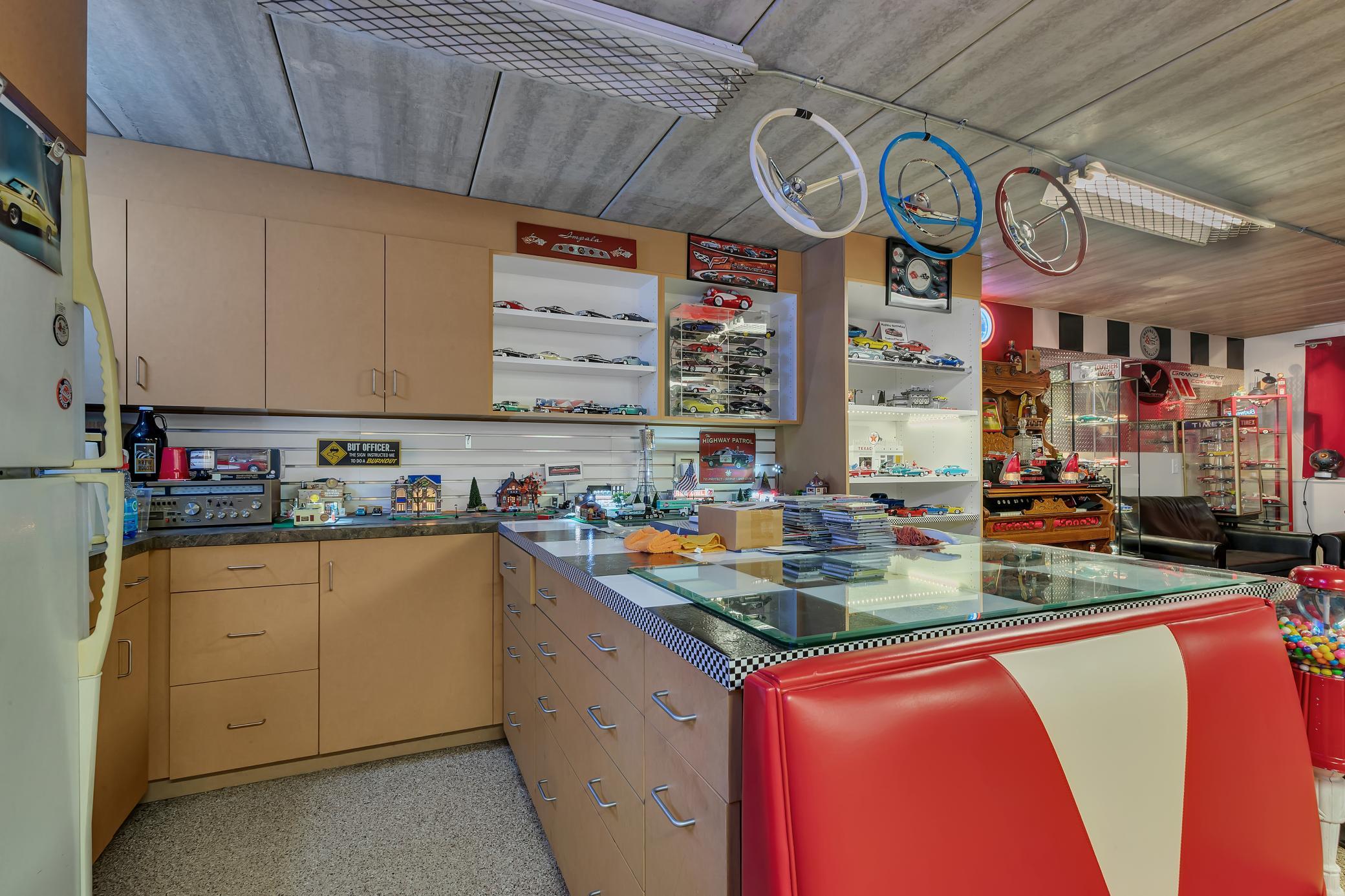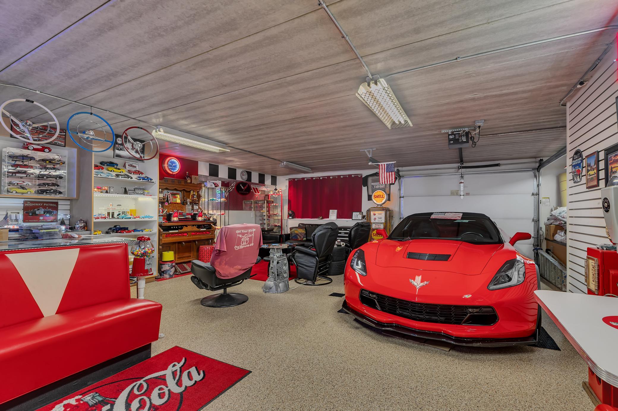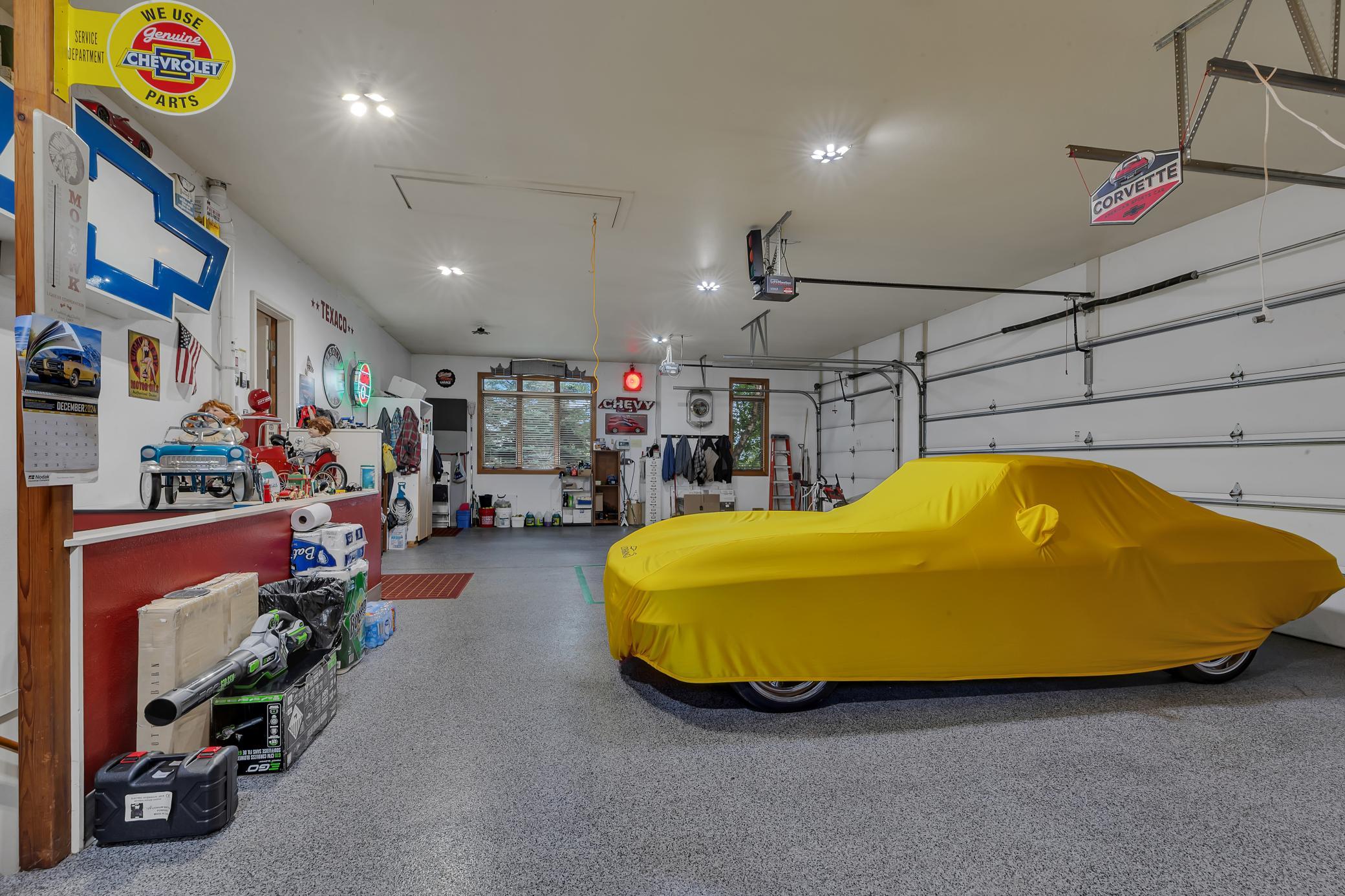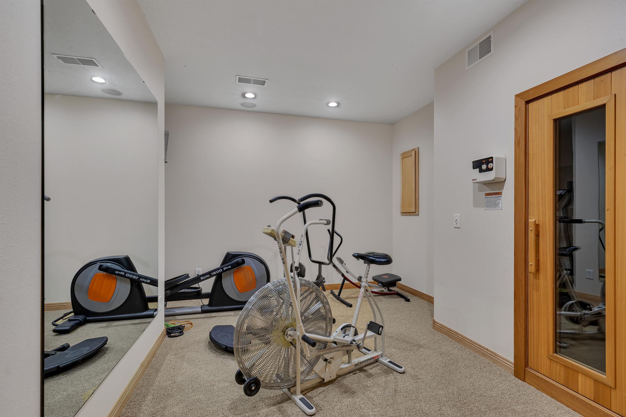 Welcome to your own private retreat - as you arrive, youre greeted by stunning all-stone and brick siding, setting a tone of elegance and durability. Recessed lighting tucked into the soffits illuminates the exterior beautifully in the evening, while stone accents and an arched, covered entryway offer a warm and inviting welcome. Architectural shingles on house and attached garage new in 2022.Step inside to find hardwood floors stretching through the foyer, dining room, kitchen, and hallways, all under knock-down textured ceilings and elegant crown molding. Rounded wall corners, four-panel birch doors, and dual-pane Andersen windows add refined touches throughout. The kitchen features flush-mount cabinetry, a large center island with an outlet and CAT-5 outlet, granite countertops, tiled backsplash, LED recessed lighting, and surround sound. A brand-new refrigerator/freezer (installed September 2025) ensures modern convenience.Adjacent, the dining room showcases exposed ceiling beams and a built-in kitchenette with granite countertops and accent lighting. The living room exudes warmth with its trey ceiling, gas fireplace framed in stone, and built-ins on both sides, all lit with recessed lighting and enriched by surround sound.The spacious primary suite is a private haven with double French doors, ceiling fan, recessed lighting, surround sound, and built-in cabinetry with glass shelving. The en-suite bath includes a double vanity, jetted tub, walk-in tiled shower with bench, enclosed toilet area, and transom windows that invite natural light. A generous walk-in closet with custom organizers completes the suite.A versatile second main-level bedroom features a walk-in closet and custom built-insideal for use as an office, craft space, or guest room. The Murphy bed remains with the home, adding flexibility. Just off the garage, a ceramic-tiled half bath and 10 x 11 storage room with built-in closet systems.The attached garage is a dream: fully finished, insulated, heated with a gas furnace, and includes floor drains, commercial-grade epoxy flooring, three overhead doors (all with openers), and a service door. A pull-down ladder leads to overhead storage, and a staircase descends to the lower-level tuck under garage with more epoxy floors, built-ins, refrigerator/freezer, and its own overhead garage door.The lower level of the home continues to impress with in-floor heating, LED recessed lighting, surround sound, and paneled doors throughout. The family room includes a stone-surround gas fireplace and built-in entertainment center, while the adjacent wet bar offers granite counters, custom cabinets, wrap-around raised seating, a refrigerator/freezer, and tiled backsplashperfect for entertaining. A separate bonus room opens to the backyard and is ready for game tables or hobby setups, complete with lighting and sound.Two lower-level bedrooms each feature large walk-in closets with built-in organizers, ceiling fans, and recessed lighting. The stylish three-quarter bath includes dual vanities, granite countertops, custom cabinetry, glass block shower with seating, and private stool area.An exercise room with surround sound and LED lighting opens directly into a sauna. Additional storage can be found under the stairs and in the mechanical room, while the laundry room offers ceramic tile, a built-in pedestal for the front-load washer and dryer (which stay), utility sink, & ample cabinetry.Enjoy evenings in the screened-in porch with a knotty pine ceiling, recessed lighting, and ceiling fanor gather around the paver stone patio near the detached 6 x 8 storage shed. Be sure to check out the small creek in the woods that runs year-round. The 28 x 36 detached garage features concrete flooring, built-in shelving, a workbench, an insulated overhead door, and a LiftMaster opener operable via smartphone (myQ app).This home is ideal for anyone seeking peace, privacy & premium features.