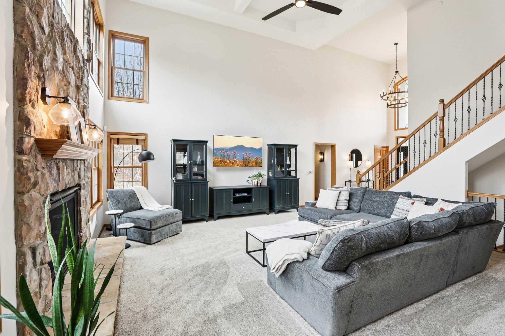 Desirable Carriage Ridge Home on Over 3/4 Acre Private Mature Lot! STUNNING 2-Story Home w/5 Bedrooms (1st Floor Primary Suite), 1st Floor Office, 3.5 Baths, 1st Floor Laundry3 Car Garage! HUGE Gourmet Kitchen w/Maple Cabinets, BEAUTIFUL MAPLE FLOORS, Granite Countertops, Walk-in Pantry, Work Island Large Dinette Area that Opens to Great Room w/Impressive Soaring Ceilings & Stone Gas Fireplace! 1st Floor Primary Suite w/Walk-in Closet GORGEOUS Remodeled Bath w/High End LuxStone (Marble & Resin) Walk-in ShowerSoaking Tub! AMAZING Family Room in Exposed L/L w/2nd Gas FireplaceWet Bar...Perfect for Entertaining! Zoned Heating & A/C! New Furnace-2023! NEW Roof-2020! NEW C/A-2019! New Humidifier-2024! New Garage Windows, Garage Doors & Opener-2025! New Front Door-2025! New Front Entry Way Large Window-2026! New Front Office Windows & Large Sliding Patio Door-2024! Come Enjoy the Waunakee & Westport Biking & Walking Trails Close to Lake Mendota & Governor Nelson Park!