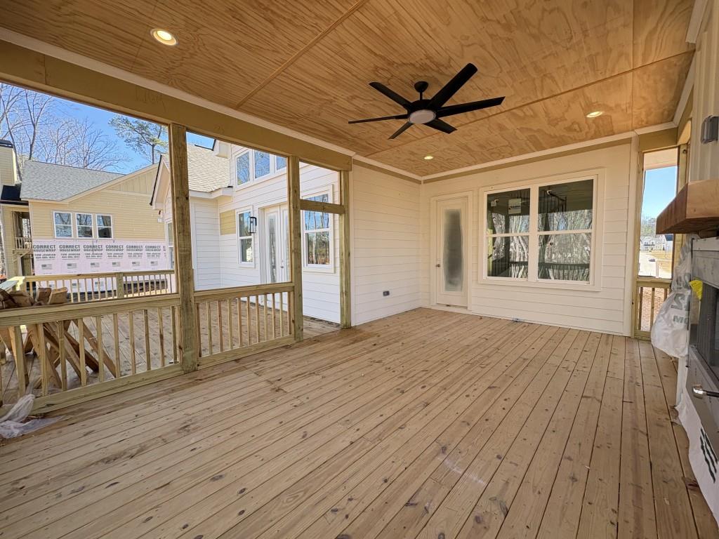 The Emmeline Plan built by Waterford Homes. Quick Move-In! Welcome to lavish, lakeside living where timeless craftsmanship meets luxury design. This gorgeous master on main plan with basement welcomes you with a spacious foyer entry and private study continuing into an airy, open floor plan feel with an expansive and bright two story family room with vaulted cathedral ceiling accented by breathtaking cedar beams and large double paned windows. The chefs paradise kitchen with humongous island and in wall double oven is outfitted with a walk in butler pantry and charming wine bar. At the rear you will find your quiet retreat in the generous owners suite with spa like bathroom, customized with a roomy tiled shower with frameless glass door and free standing tub. The main level is rounded out with an additional guest bedroom and full bath. Upstairs youre greeted with a sizable loft overlooking the family room. To add, you will find two more comfortable secondary bedrooms each with private bath. The outdoor living space with giant covered deck and wood burning fireplace is perfect for those summer meals and enjoying the breeze off the lake. Dont miss out on your opportunity to seize one of these beautiful homesites today!
