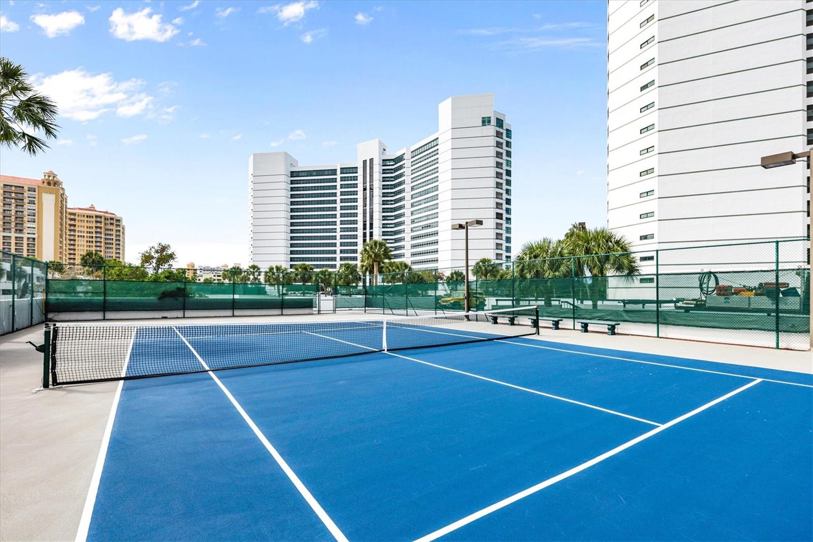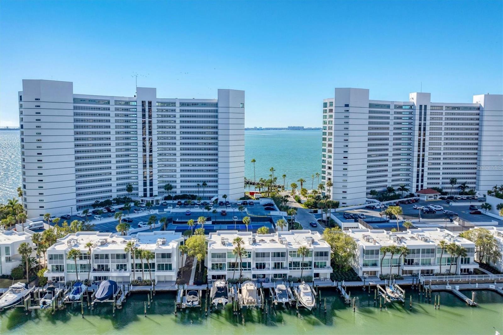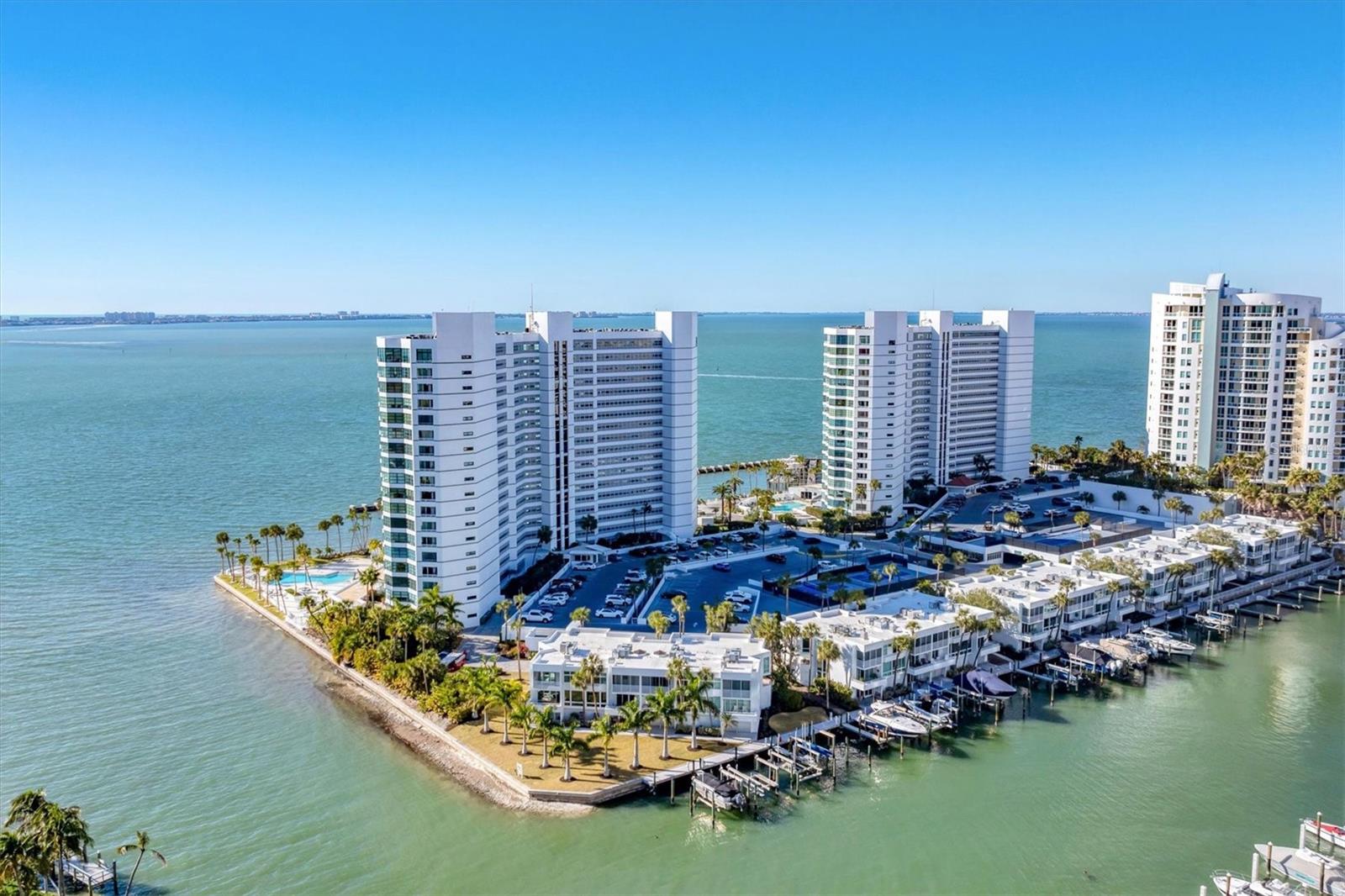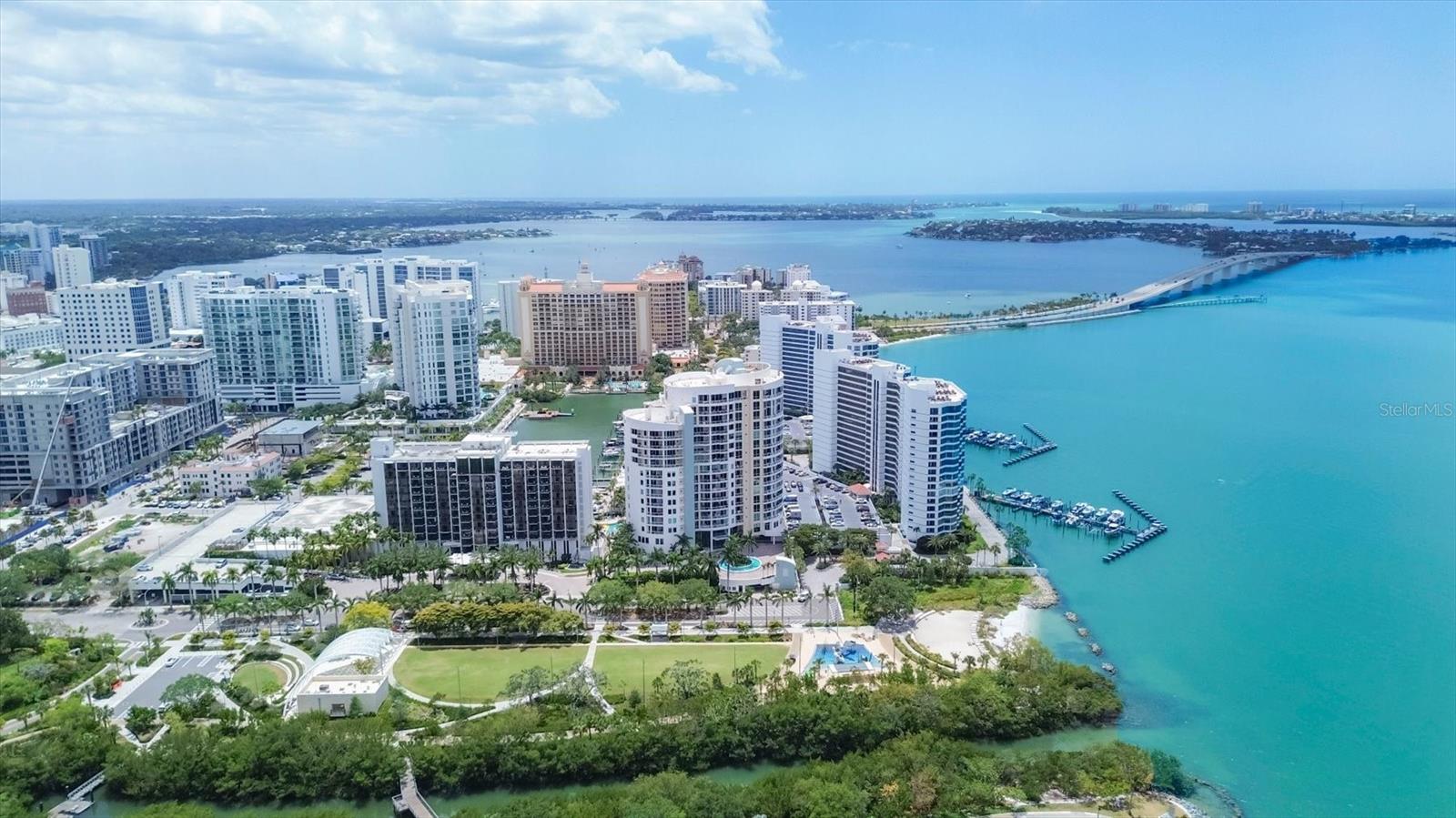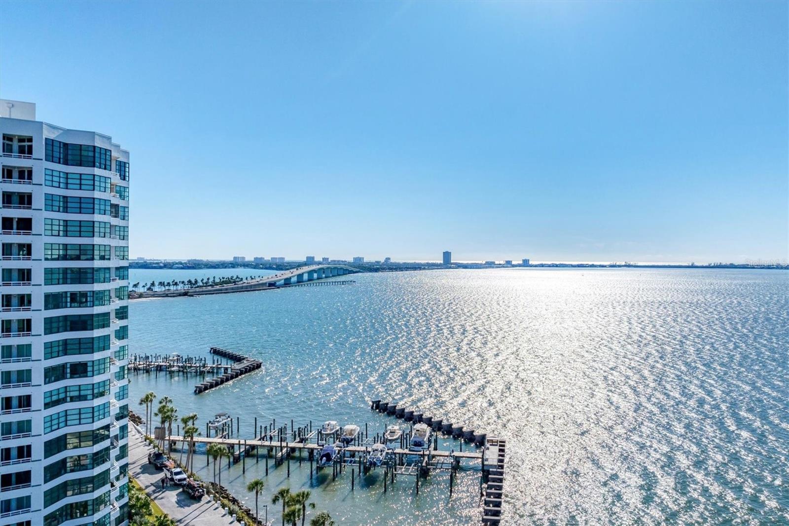 With Sarasotas endless sunshine and breathtaking coastal vistas, the views from this residence truly go on forever. From the 18th floor, enjoy full, unobstructed panoramas of Sarasota Bay stretching all the way to the Gulf of Mexico on the horizonviews attainable only from the 18th and 19th floors, where residences are rarely available.This exceptional home has been completely remodeled to a refined, contemporary living space. The main living areas and kitchen feature select UA Grecian Series Natural Hickory wood flooring, adding warmth and sophistication throughout.The renovated kitchen and two bathrooms showcase soft-close European-hinge cabinetry and granite countertops. The kitchen is equipped with high-end KitchenAid appliances, including a refrigerator, convection oven, microwave, cooktop, vent hood, and dishwasher. A full-size stacked GE washer and dryer are conveniently and discreetly integrated into the kitchen design.Thoughtful upgrades enhance both comfort and wellness, including a REME HALO whole-home air purification system, Everpure commercial-grade water filter in the kitchen, and a Smith Proline commercial-grade water heater. Recently replaced Plaza HBP Low-E sliding glass doors (Miami-Dade rated) frame the spectacular views, while Llumar Vista security window filmwith a lifetime guaranteeadds peace of mind in the primary bedroom.Additional custom touches include a floating bar in the living room and elegant Allure window shades, with motorized shades in the primary bedroom.The Condo on the Bay community offers a wide array of amenities exclusively for its residents and guests of both Towers I and II. These amenities include: 2 Swimming Pools - North and South, 4 Lighted Pickleball Courts, Lighted Tennis Courts, Exercise Facilities & Sauna Rooms, Boat Docks, Kayak Racks, and Fishing Piers - North and South. This active community also participate in many social events such as Mahjongg & card games, discussion & screening, family/group gatherings and fellowship, and Happy Hour. There is something here for everyone! It is time to experience a luxurious urban life from the 18th floor of Tower II, in the pulsing heart of Downtown Sarasota!