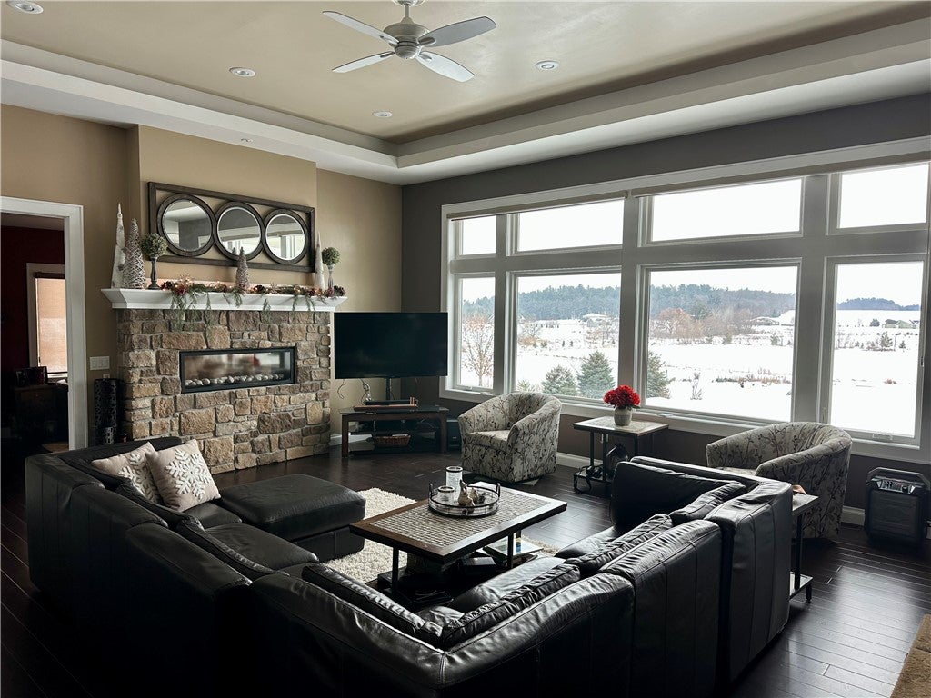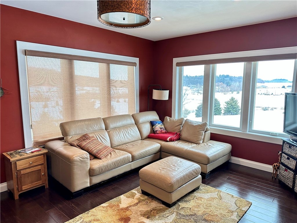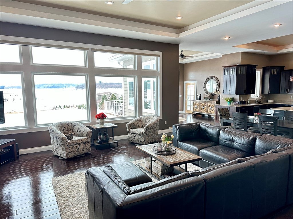 Former Parade Home that has big spaces and incredible views to appreciate in person. High end large ranch home on the south side of Eau Claire. Gorgeous house with quality finishes and tall ceilings throughout. This property was well designed with many enjoyable living areas upstairs and down. Gourmet kitchen, multiple entertainment spaces, lots of storage, impressive theater room. Numerous south sunny facing windows to capture natural light with incredible views of the pond, wildlife and undevelopable wetlands behind this house. Property comes with part ownership of 28 acres most of which sits directly behind this house. Includes Geothermal, in-floor heat, high end gas range, refrigerator, convection oven and steam oven. Truly a dream house and dream property. Aging accessible w 3 doors, zero grade entrances. New category impact 4 shingles with transferable warranty 2025, new gutters, new water heater. A must see if youre desiring a great property! Buyers must be prequalified to tour.