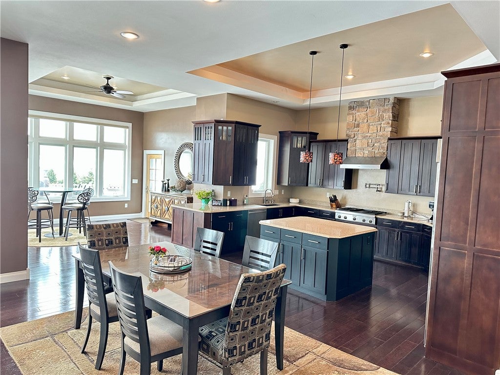 Former Parade Home that has big spaces and incredible views to appreciate in person. High end large ranch home on the south side of Eau Claire. Gorgeous house with quality finishes and tall ceilings throughout. This property was well designed with many enjoyable living areas upstairs and down. Gourmet kitchen, multiple entertainment spaces, lots of storage, impressive theater room.