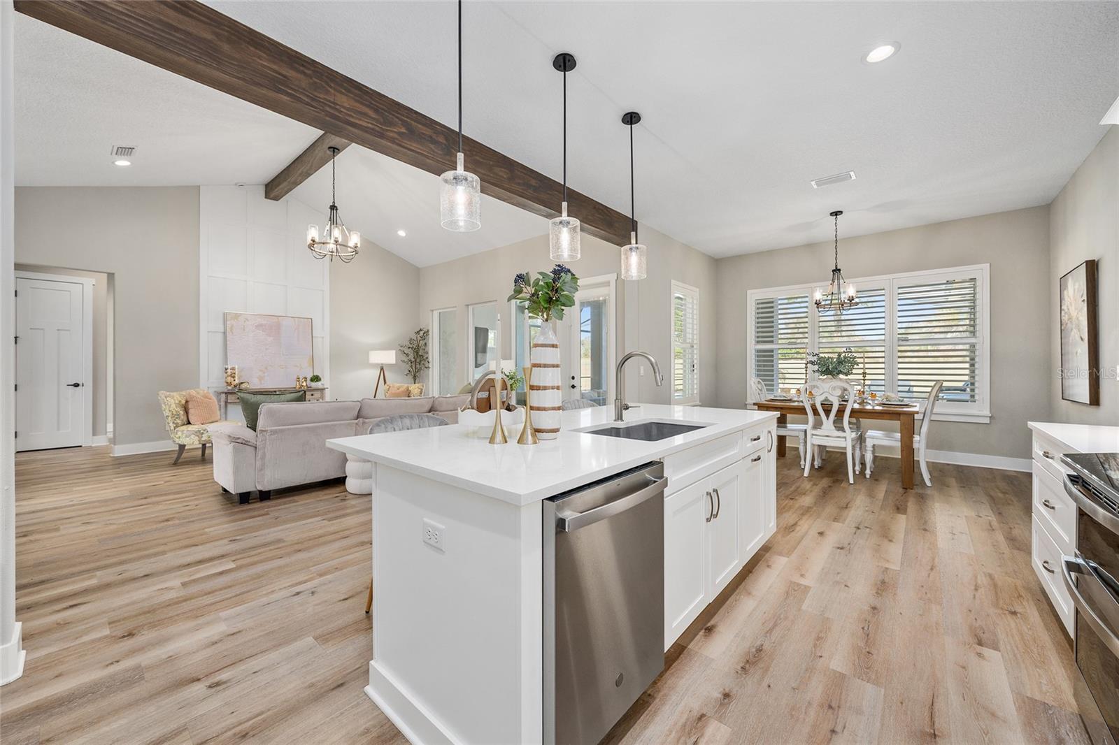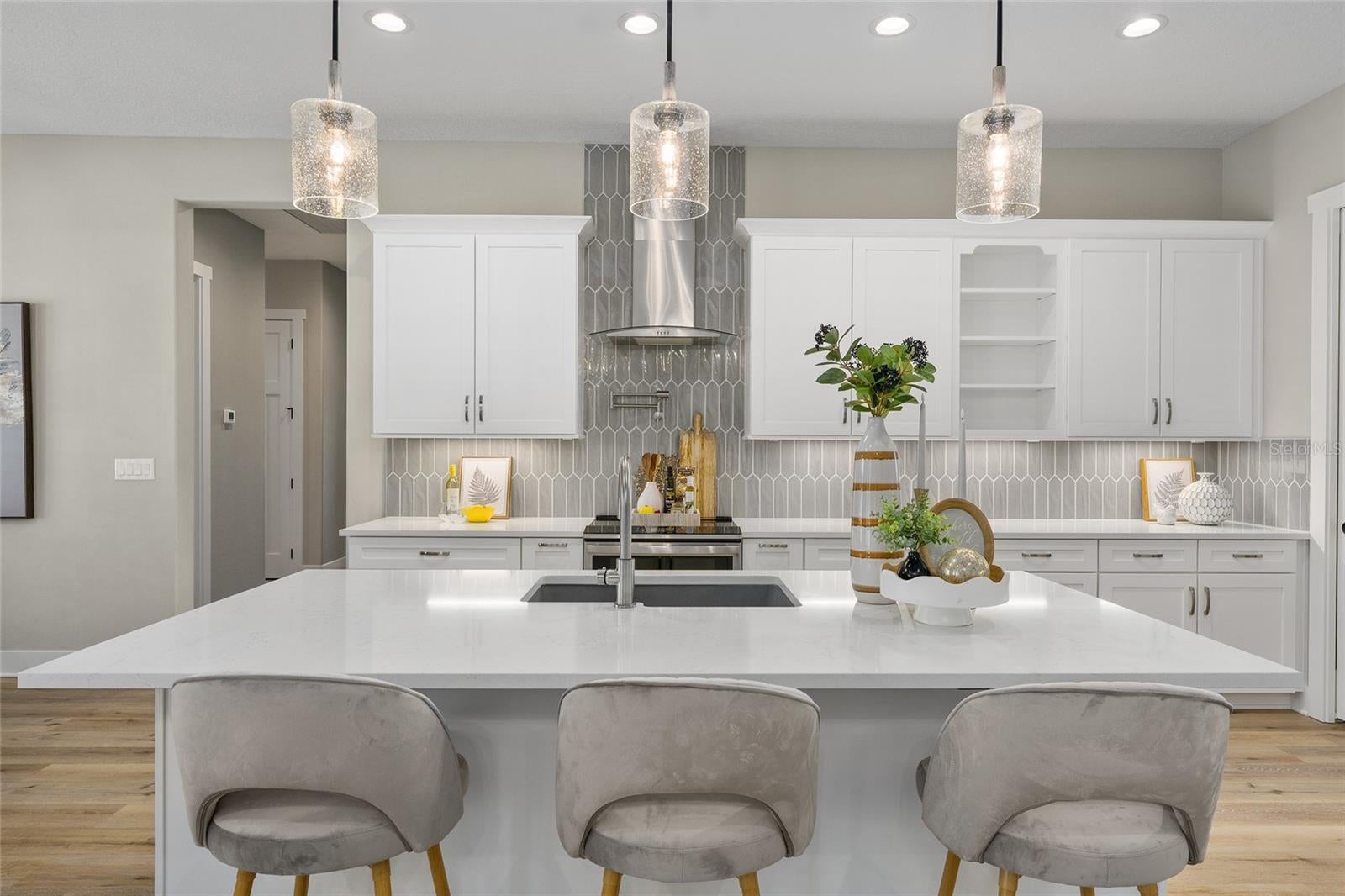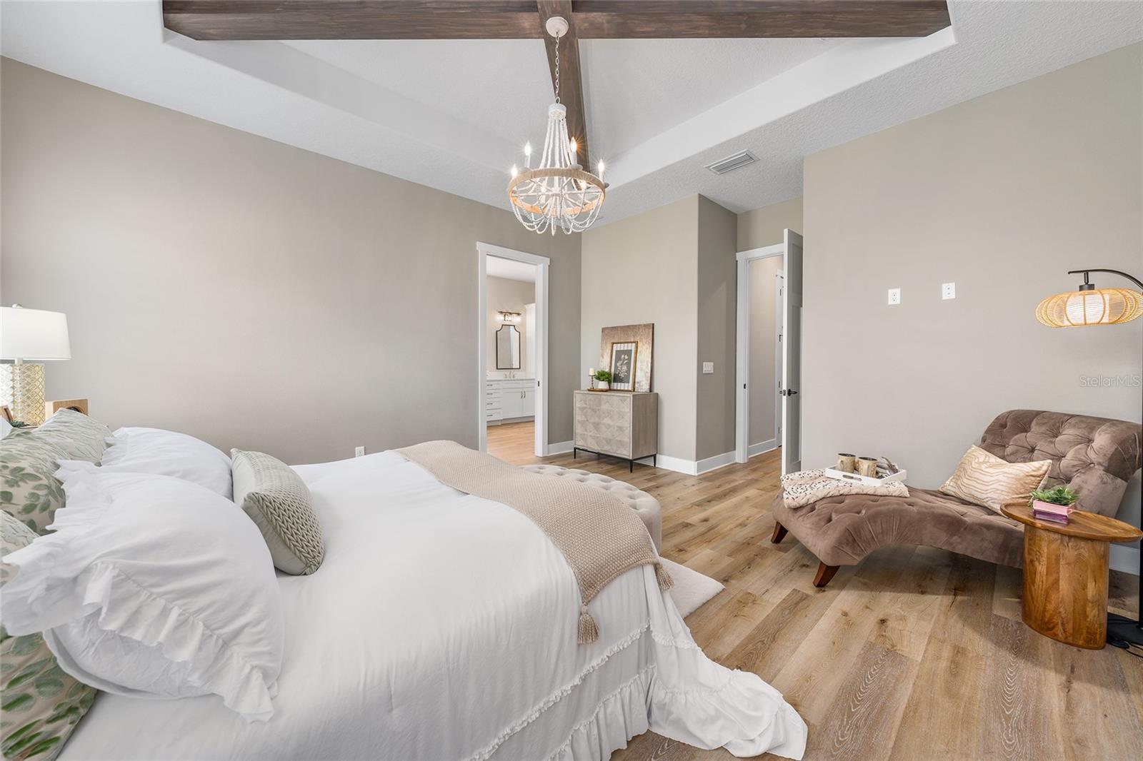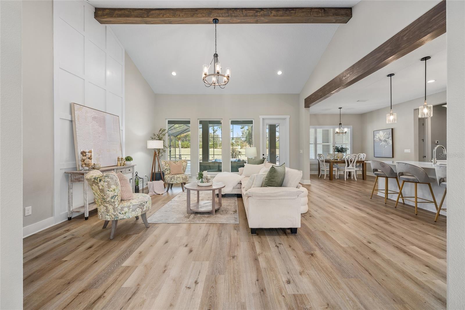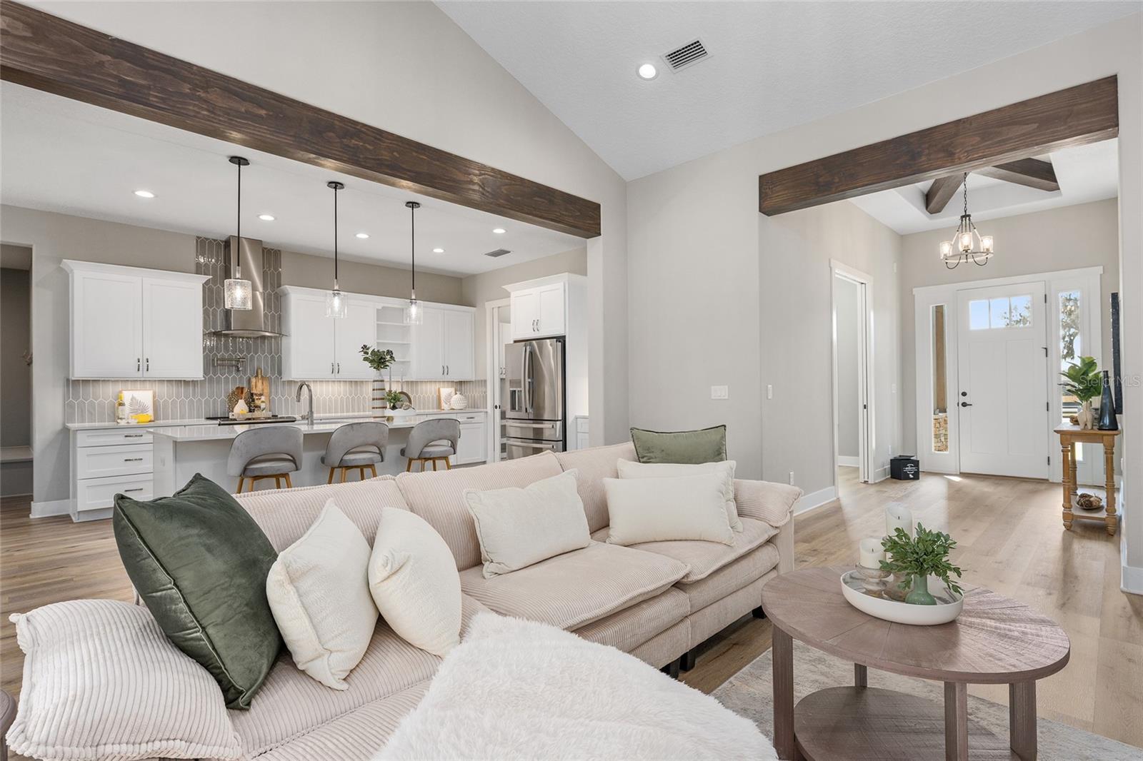 Under contract-accepting backup offers. EXPERIENCE LUXURY LIVING in this EXQUISITE, CUSTOM BUILT, ESTATE POOL HOME nestled on 3.86 fenced acres in the EXCLUSIVE gated community of Sumter Crossing! Designed with exceptional craftsmanship and attention to detail, this magnificent property offers privacy, space, and a serene setting perfect for refined living. Stately wood pillars frame the inviting front entrance of this craftsman-style home showcasing metal, wood, and stone exterior accents. A quaint front porch and generous foyer welcome you in to the bright open floor plan that effortlessly connects the kitchen, dining, and living spaces, making it ideal for both everyday living and entertaining. Soaring 11-foot ceilings accented by custom wood beams add to the grandeur of this exquisite space. Whether youre hosting gatherings or enjoying a quiet evening at home, this open-concept design offers the perfect blend of functionality and freedom. For added convenience a home office with built-in closet is located just off of the foyer. The stunning custom kitchen is the heart of the home, combining high-end finishes with thoughtful functionality. Crisp white cabinetry paired with sleek quartz countertops, creates a clean, timeless look. The spacious center island, complete with a built-in sink, offers additional prep space and seating-perfect for casual meals. Cooking enthusiasts will love the double oven, designer hood, and wall-mounted pot filler, making meal prep a breeze. A stylish tile backsplash and under-cabinet lighting add both elegance and practicality. Just off the main kitchen, a butlers pantry provides extra storage and prep space. This kitchen is truly a chefs dream with no detail overlooked! From the living room, an elegant French door invites you into the INCREDIBLE OUTDOOR OASIS of the lanai and POOL area! This fabulous space features paver floors, and a summer kitchen with sink and mini-refrigerator perfect for effortless entertaining. Soak up the sun on the spacious deck, dive into the refreshing pool, or simply sit under the covered lanai and enjoy the beauty of this amazing backyard paradise! Retreat back indoors to the luxurious primary suite. The spacious bedroom is a showstopper, featuring an elegant tray ceiling adorned with crossed wood beams. Its custom walk-in closet offers boutique-style storage and center island. The spa-inspired en-suite bathroom boasts white cabinetry, quartz tops, double sinks, and two built-in linen closets Relax in the freestanding soaking tub or indulge in the double-entry Roman-style walk-in shower, clad in Carrera tile, and boasting dual shower heads for a high-end experience. A split floor plan offers three additional bedrooms and a second bathroom. Bedroom 2 features a built-in closet while bedrooms 3 and 4 each boast custom walk-in closets.The second bathroom showcases white cabinetry, quartz tops, double sinks, and tiled tub/shower combination. A convenient mud room is located just off of the kitchen. Theres also an additional cabana-style half-bath -easily accessed from the pool and lanai. The centrally-located laundry room boasts a built-in utility sink and plethora of additional cabinetry with quartz tops. Completing the package is a 820sf 3-car garage! This fantastic space showcases epoxied floors and a Magic Attic Lift! PLEASE WATCH OUR VIDEO of this EXCEPTIONAL PROPERTY, and CALL TODAY to schedule your private showing or virtual tour!