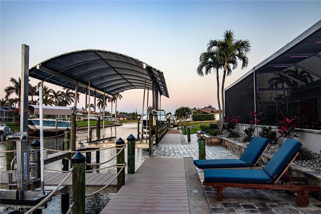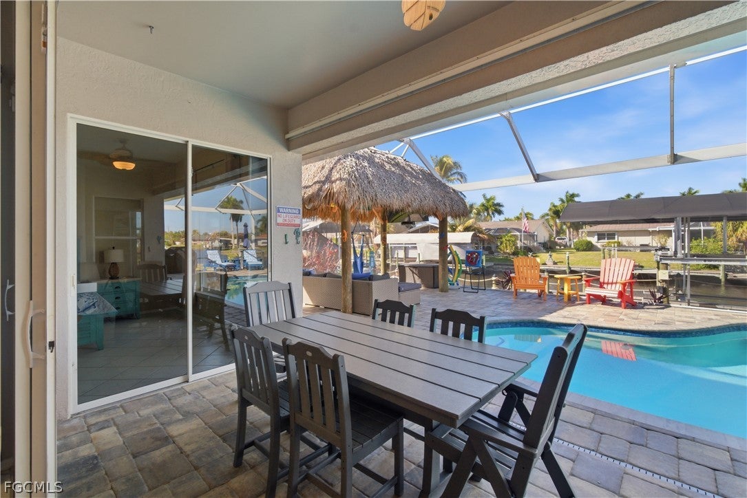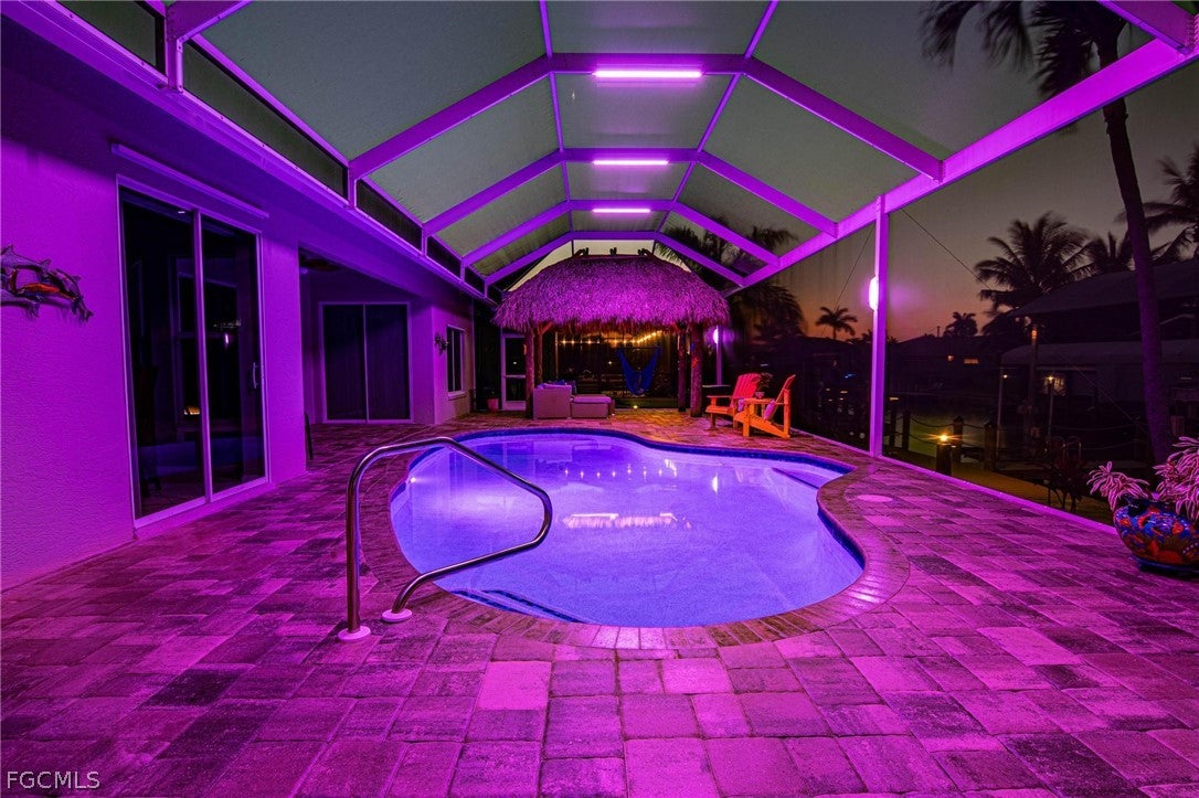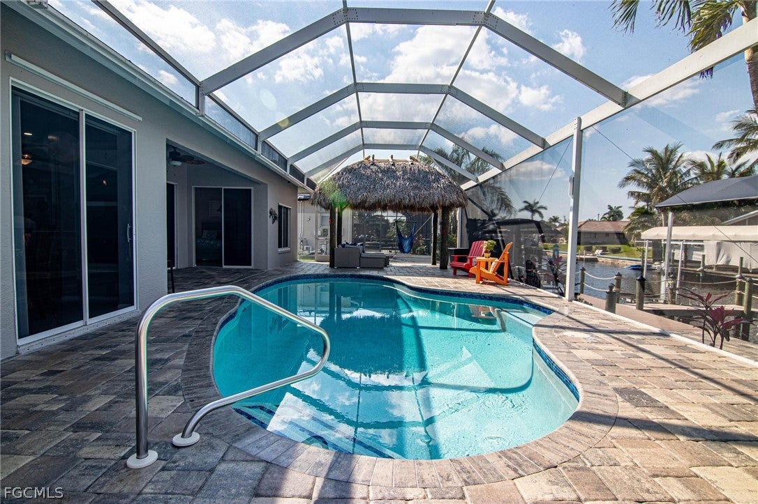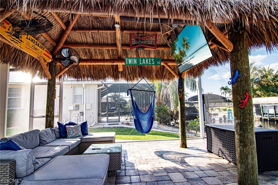Fully TURNKEY STR with a local property manager in place! Nicknamed the *Tiki Tide* home has been a SUCCESSFUL STR boasting over 32,000 of rental income from Dec-March -- offseason months May-November secured 36,000! THE HOUSE COMES FULLY TURNKEY! Seller has TRANSFERABLE FLOOD INSURANCE! The flood insurance is ONLY 1,500! Total combined insurances are right at 5,000 per year for a home with DIRECT GULF ACCESS. The METAL ROOF is only 2 year old! The CIRCLE DRIVE and pool deck were installed in 2023. The Tiki Tide has a Florida SUN ROOM in addition to a sizeable office/den. Stepping into the master bath you will find a JETTED hottub and WALK IN SHOWER! Dual sliders lead out from the master onto the pool deck where you can enjoy an awesome TIKI HUT! This home is also equipped with a pool bath entrance. This OVERSIZED DEEP POOL comes HEATED with an upgraded 130k BTU Gulf Stream pool heater! The HUGE LIVING ROOM has so much NATURAL light from the 5 sliders, giving MULTIPLE ENTRANCES to the pool. Travelling down the CAPTAINS WALK to the COMPOSITE dock, you will find a top of the line BOAT LIFT with a CANOPY! With only a 5 MINUTE DRIVE to the river and NO BRIDGES! Electric, water, and lighting are all available at the dock. The kitchen has a BREAKFAST BAR and STAINLESS STEEL appliances that are only a couple years old. State of the art TRANE AC system! The garage has a built in CAR LIFT and air compressor - perfect for automotive enthusiasts. With over 2200 ft., this home can easily support 10 guests! With over 1,000 sqft of decking around the pool, this home is perfect hosting guests and/or parties. Please check confidential remarks for additional rental information.