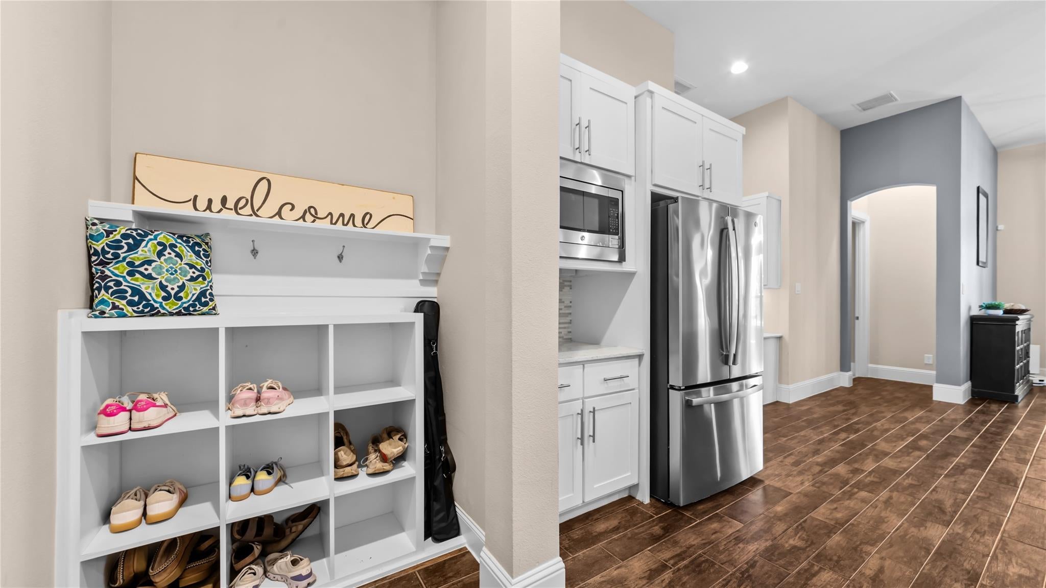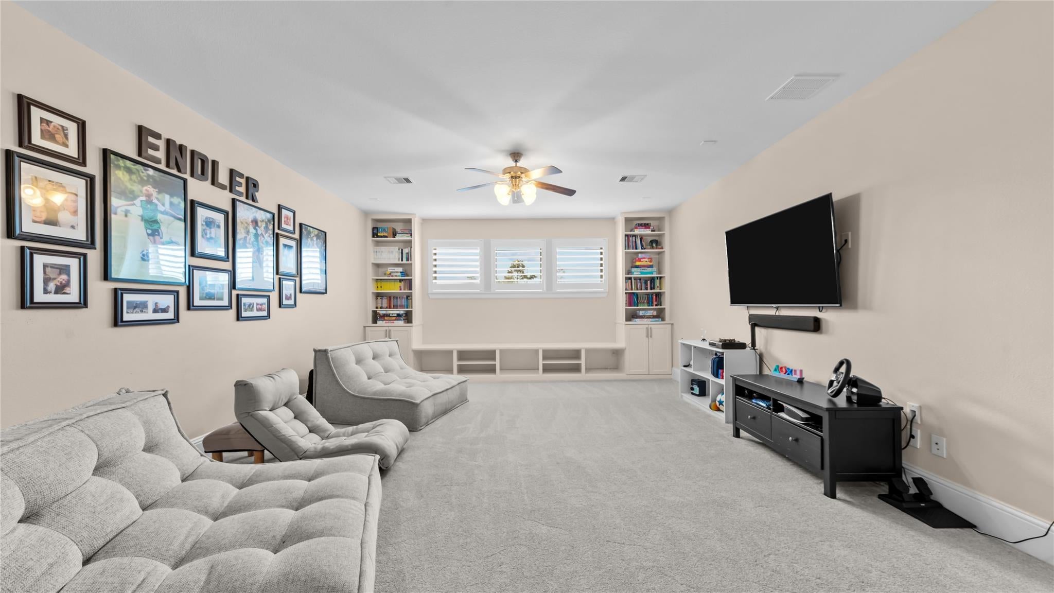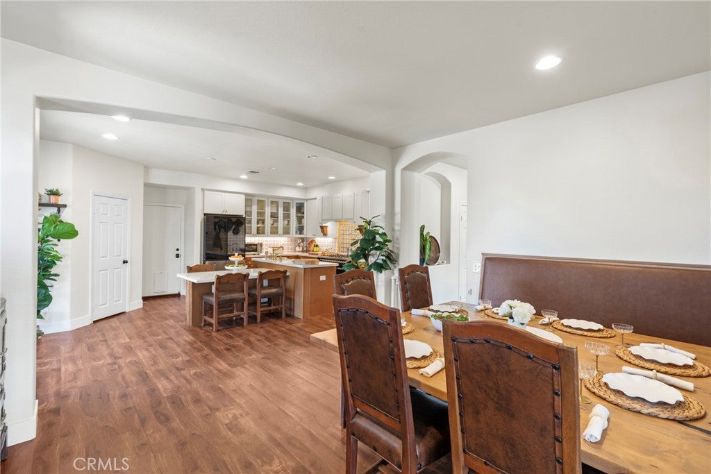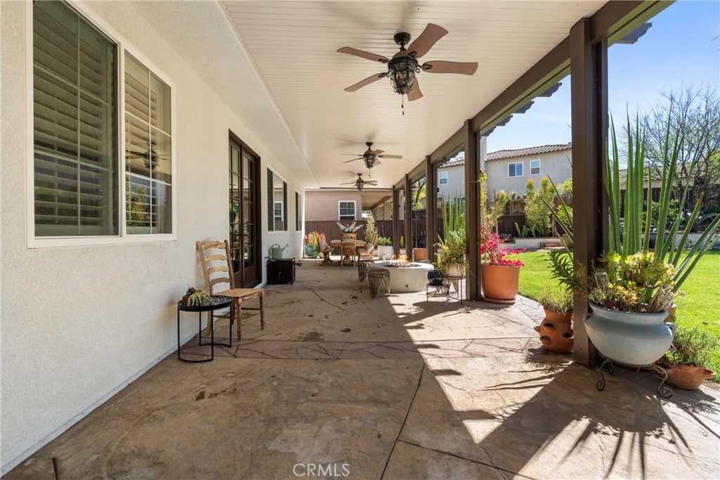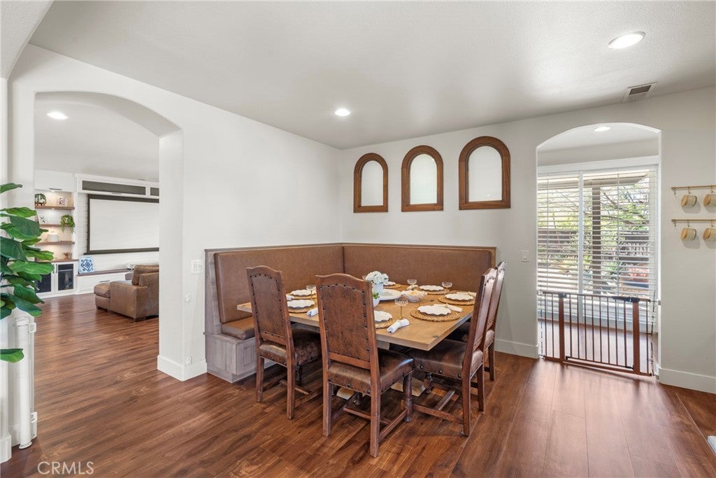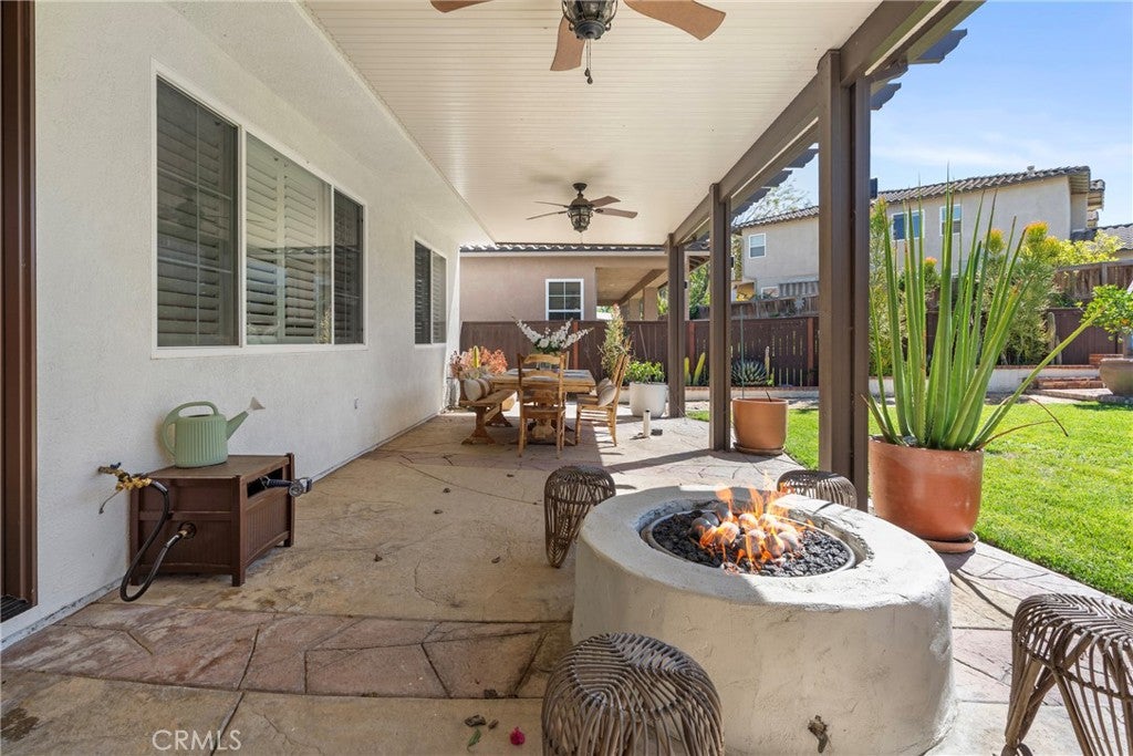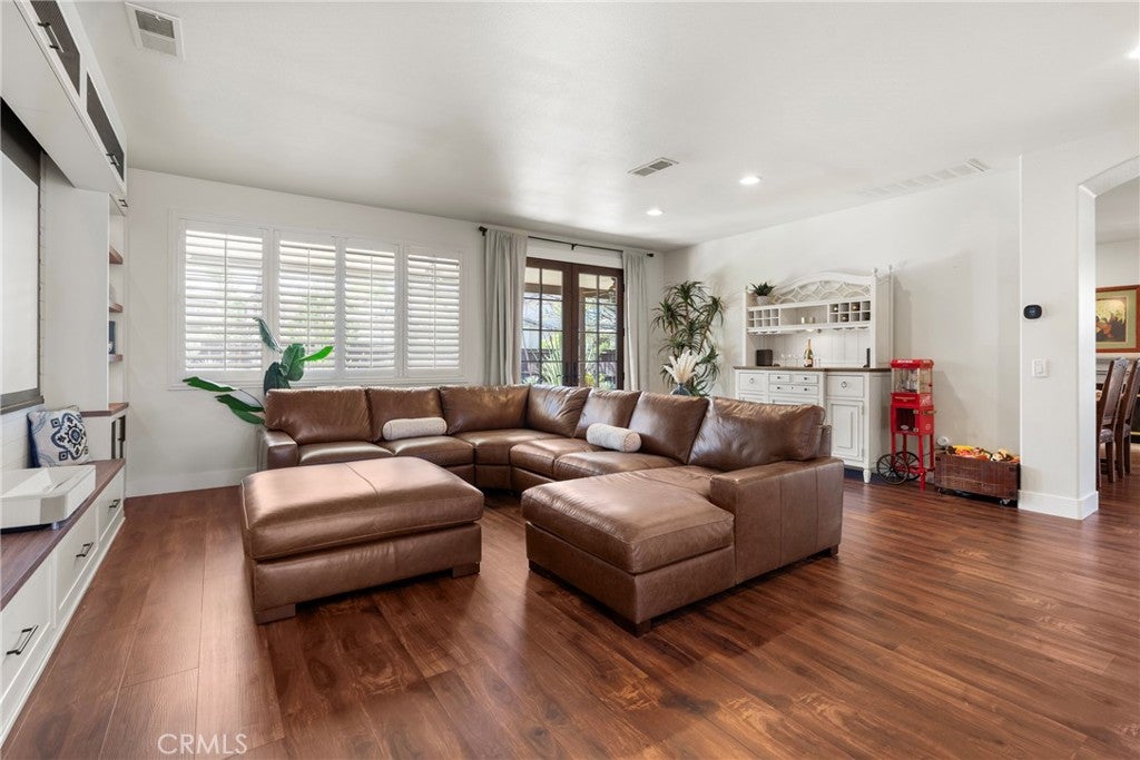 Resort-style living meets designer upgrades in this stunning Temeku Hills home featuring a chefs kitchen, private home theater, paid solar, and access to golf, pickleball, tennis, pool, spa, and fitness amenities.Welcome to this stunning 5 bedroom, 3 full bath home with a 3-car garage offering resort-style amenities and exceptional upgrades throughout.Step inside to find luxury plank vinyl flooring throughout the first floor, a tiled entry, and vinyl shutters throughout the entire home, creating a warm and polished feel. The living area features custom built-in bookcases and storage with dimmable lighting, along with newly installed French doors and a sliding door that enhance natural light and indoor-outdoor flow.Entertainers will appreciate the private home theater with retractable screen, surround sound system, and Epson short-throw projector, perfect for movie nights or game day.At the heart of the home is the fully remodeled designer kitchen. Features include quartz countertops with a drop-down island, solid wood cabinetry with brushed brass hardware, farmhouse Kohler enameled cast iron sink, and a stunning Italian-made Ilve 8-burner range with griddle topper and double oven. Additional highlights include a brass pot filler, high-flow quiet range hood, under-cabinet lighting, coffee bar with wine fridge, and a four-door smart Samsung TV refrigerator.Custom storage throughout the kitchen includes pull-out pot and baking pan shelves, dual spice pull-outs, lazy susan, hidden storage behind the stove hood corbels, double trash pull-out, and storage beneath the island and banquet seating.The dining space is perfect for gatherings with built-in banquet seating for 812 guests and a handcrafted solid wood pedestal dining table from James & James.Additional upgrades include tankless water heater, water softener and purification system, The garage has upgraded doors, epoxy-coated floors, above head storage racks and upper cabinets .Step outside to a backyard designed for relaxation and entertaining, featuring Alumawood patio covers with built-in fans and lighting and a cozy outdoor gas fire pit.Located within the Temeku Hills Master Association, residents enjoy golf, tennis courts, pickleball courts, resort-style pool and spa, fitness center, clubhouse, and beautifully maintained community spaces.Even better, the home includes a fully paid-for solar system, helping reduce energy costs while providing long-term efficiency.
