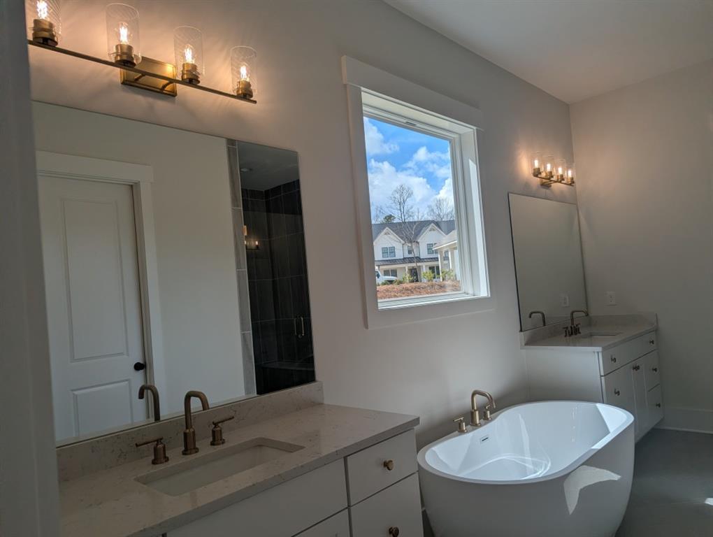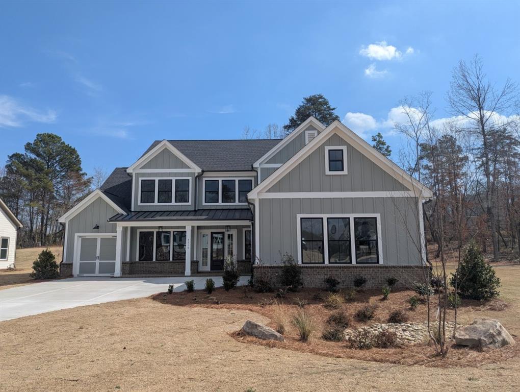 The Chatsworth Plan by Peachtree Residential. Quick Move-In! Lakeside living has never been better! The unique courtyard entry garage and charming craftsman-style exterior create exceptional curb appeal. A welcoming porch, towering double entry front doors, and a wide, open foyer greet your guests and lead into a beautifully flowing layout from the spacious great room to the breakfast area and oversized island kitchen, perfect for entertaining family and friends. The formal dining room offers an ideal setting for more intimate gatherings. Step outside to the fabulous covered porch, perfect for summer evenings and outdoor dining. The main floor primary suite is thoughtfully tucked away for privacy, featuring a spacious bedroom w/ vaulted ceiling & cedar beam accents, luxurious bath with extensive counter space, and an incredible wet-room with a large shower and free standing tub. The oversized closet conveniently connects directly to the laundry room. Upstairs, youll find three generously sized bedrooms, each with its own bath, a versatile loft ideal for a home office or playroom, and ample walk-in storage. Experience all the beauty and lifestyle this lakeside community has to offer! Ask us about our rates as low as 3.99%* with use of sellers preferred lender, Movement Mortgage, with binding contract by 03/15/2026.