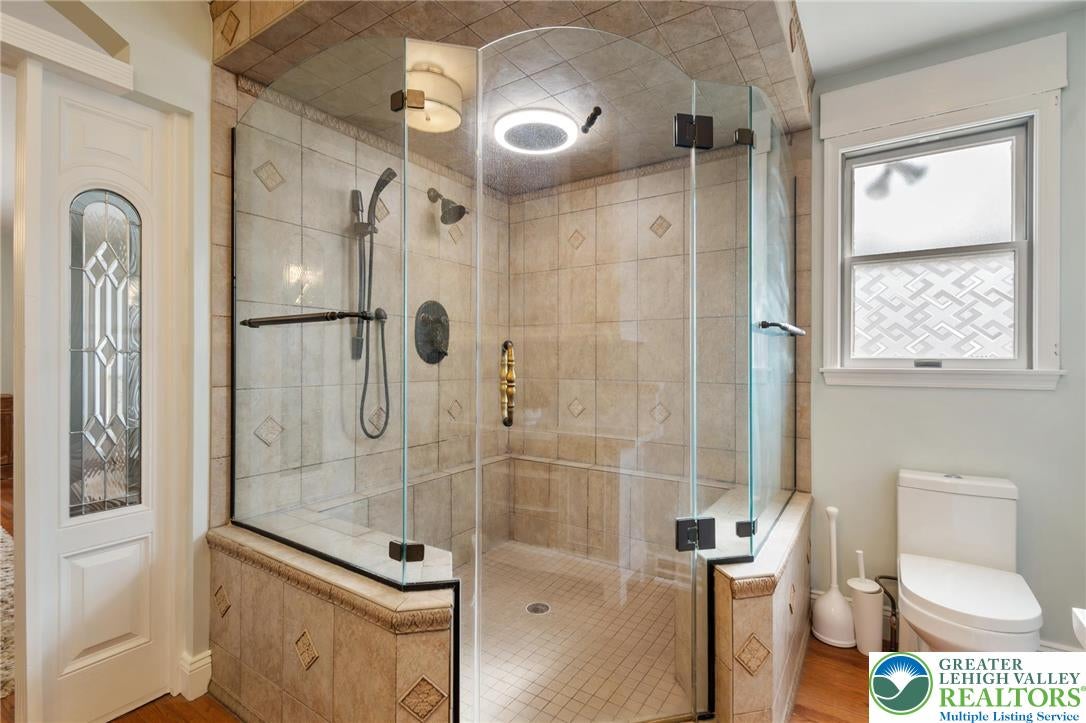 Tucked within the sought-after Robin Hood section of Lehigh Parkway, this distinctive home offers exceptional space, architectural character, and a backyard designed for entertaining. Numerous recent improvementsincluding new roof, newer HVAC, upgrades to the indoor pool and moreprovide a strong structural and mechanical foundation for the next owner. Now offered at a newly adjusted price, the home presents an outstanding opportunity for buyers to bring their own cosmetic vision and build equity in one of the areas most desirable neighborhoods. A welcoming wraparound porch leads to expansive living areas highlighted by hardwood floors, dramatic columns, reclaimed architectural elements, multiple fireplaces, and a striking two-story living room with oversized windows and balcony overlook. The renovated kitchen features custom cabinetry, Italian Calacatta counters, stainless appliances, farmhouse sink, and a large center island with Raven quartz tops. The home offers 56 bedrooms and 5 bathrooms across multiple finished levels. A sun-filled skylit sunroom connects to the unique indoor pool retreat. Upstairs, the spacious primary suite offers hardwood floors and an updated bath with custom tile, stone vessel sinks, and glass shower. The finished third floor provides flexible space with vaulted wood ceilings and skylights, while the finished lower level offers recreation and gym space. Outside, enjoy a large entertaining deck, professionally landscaped yard, custom putting green, pergola seating area, garden beds, hot tub, and extensive new landscape lightingcreating a private backyard retreat just moments from the scenic trails of Lehigh Parkway. The property also includes five garage bays, offering exceptional space for vehicles, storage, or hobby use. *BUY WITH CONFIDENCEPRE-LISTING HOME INSPECTION AVAILABLE * 3D MATTERPORT PLUS INTERACTIVE FLOOR PLAN AVAILABLE, TOO*
