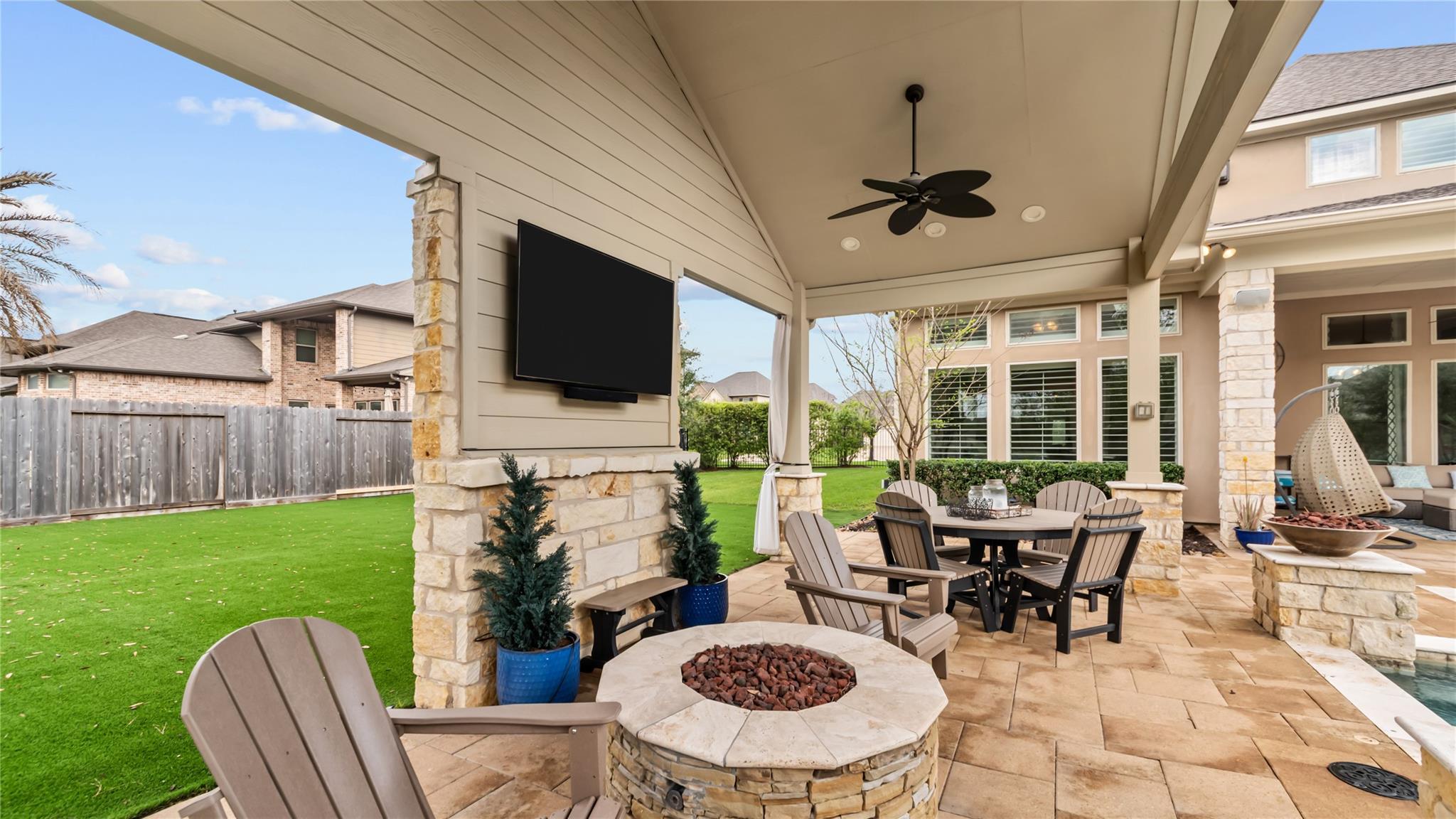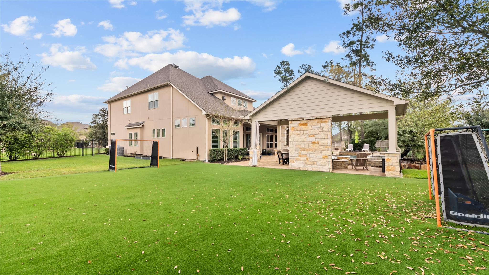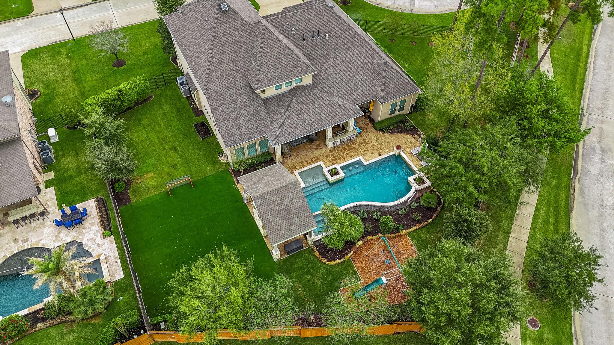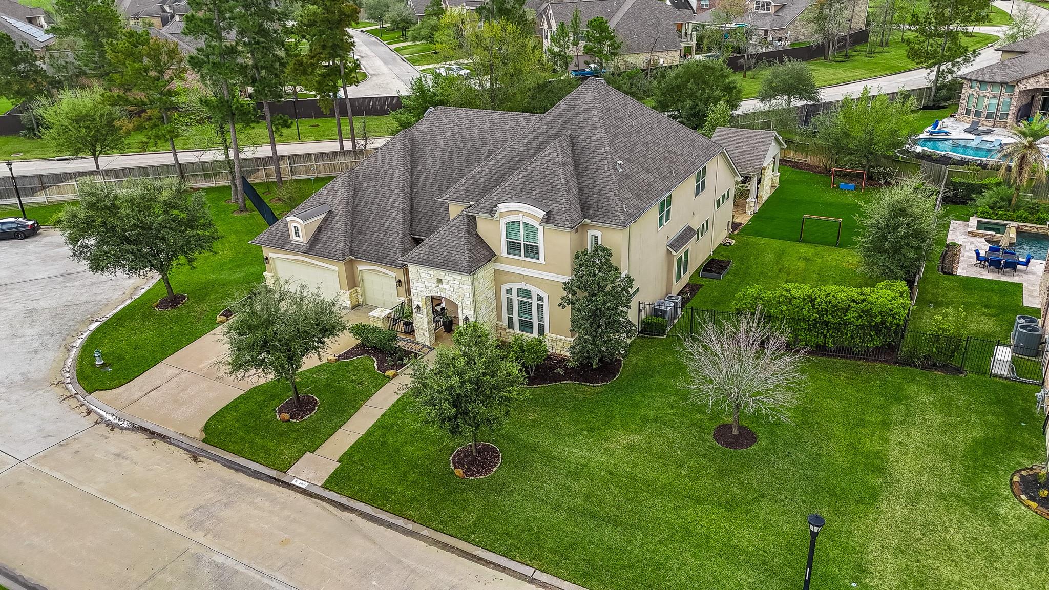 Refined Luxury plus comfortable style is what you will discover in this Stunning 2-story stone & stucco home. Located at the end of a cul-de-sac on an OVERSIZED lot with a private courtyard seating area and attached 3-car garage in the master planned community of Auburn Lakes Retreat, just outside The Woodlands. The features of this home are too numerous to list! Warm and inviting living room w/ stone fireplace opens to the dramatic kitchen and breakfast room. This island itself is a masterpiece with quartz counters, farmhouse sink and cabinets galore. Double ovens, 6-burner gas cooktop, walk-in pantry and updated lighting. Primary suite with seating area, ensuite bath, incredible walk-in closet and doors leading to the outside living space. 2nd guest suite located on the 1st floor. Total backyard retreat with TWO covered living spaces, fire pit, outdoor kitchen, play area & enough space for a turf soccer field! Whole house generator. Plantation shutters. Custom built-ins