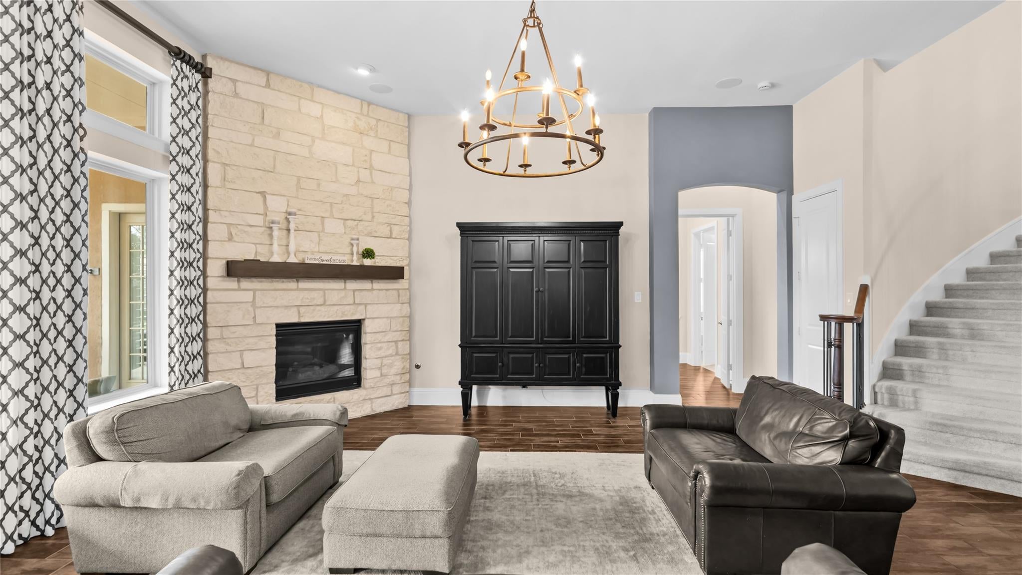Welcome to an extraordinary residence where architectural elegance meets refined luxury. Striking stone & rich wood accents, soaring ceilings & 8 interior doors throughout create an impressive sense of scale & sophistication.