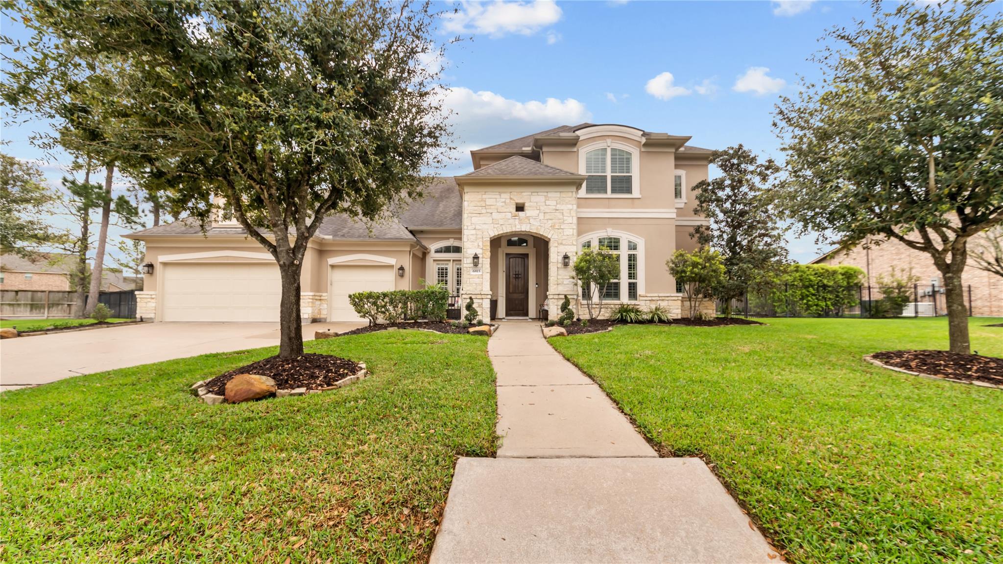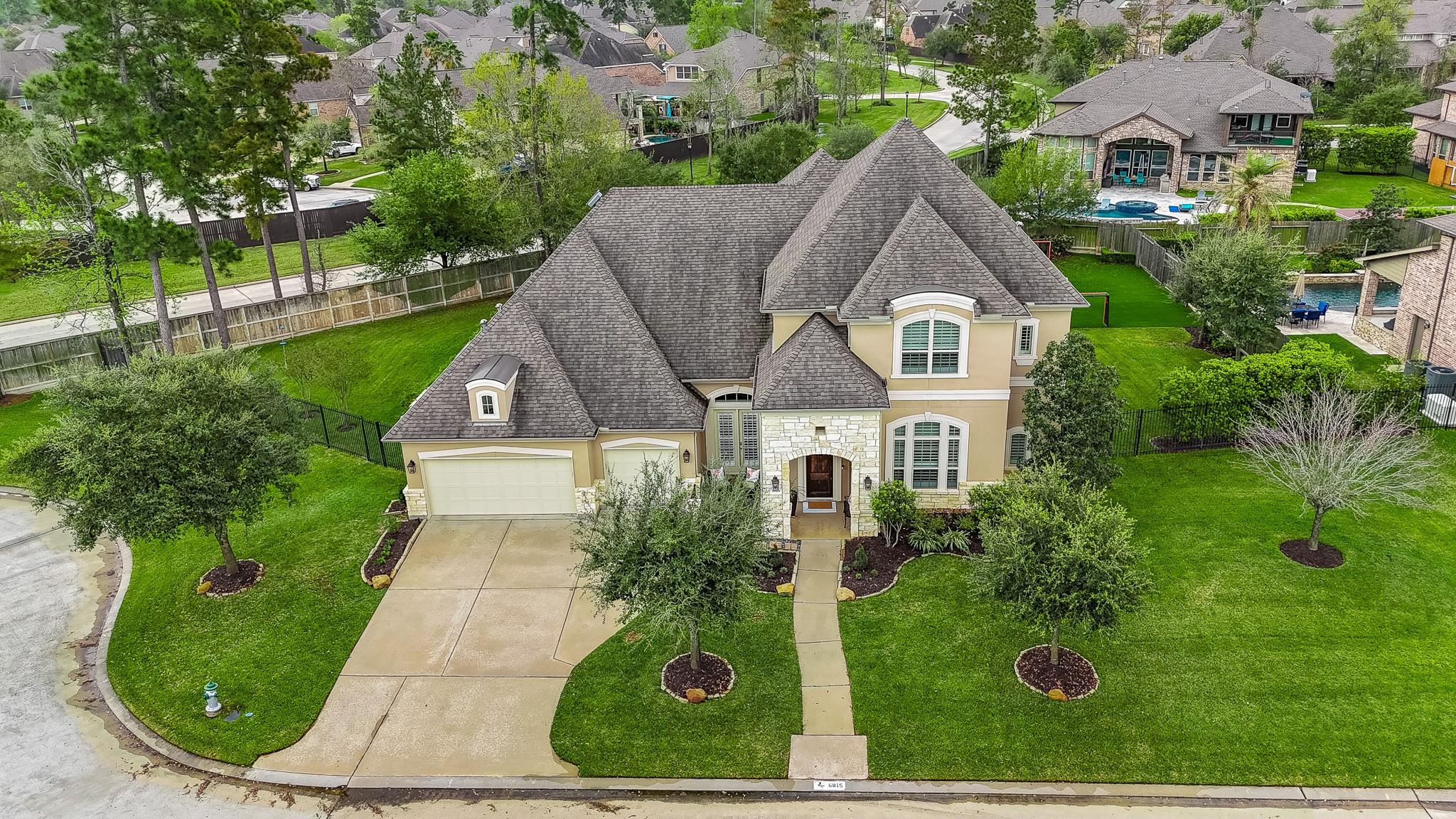 Refined Luxury plus comfortable style is what you will discover in this Stunning 2-story stone & stucco home. Located at the end of a cul-de-sac on an OVERSIZED lot with a private courtyard seating area and attached 3-car garage in the master planned community of Auburn Lakes Retreat, just outside The Woodlands.