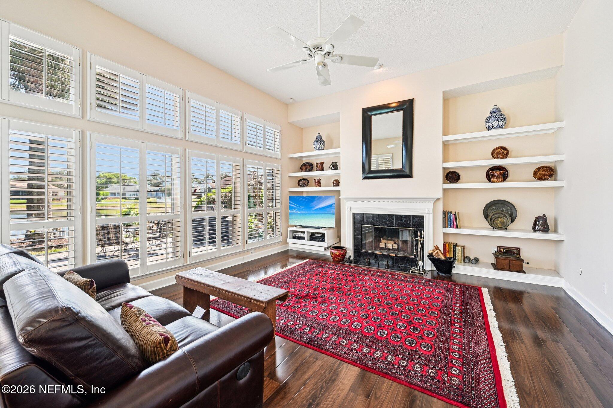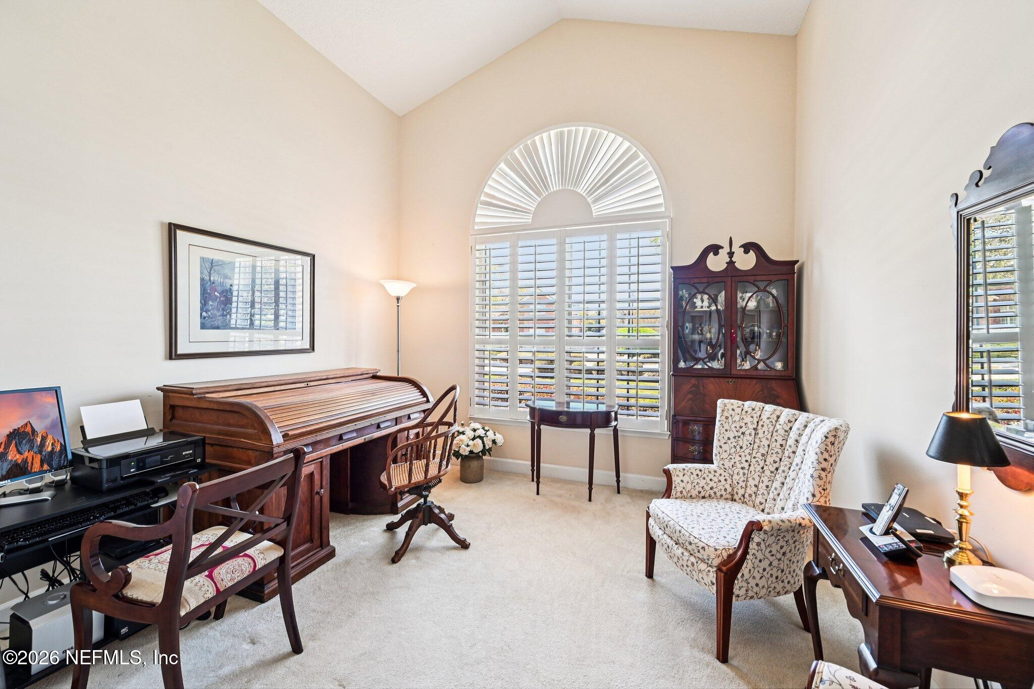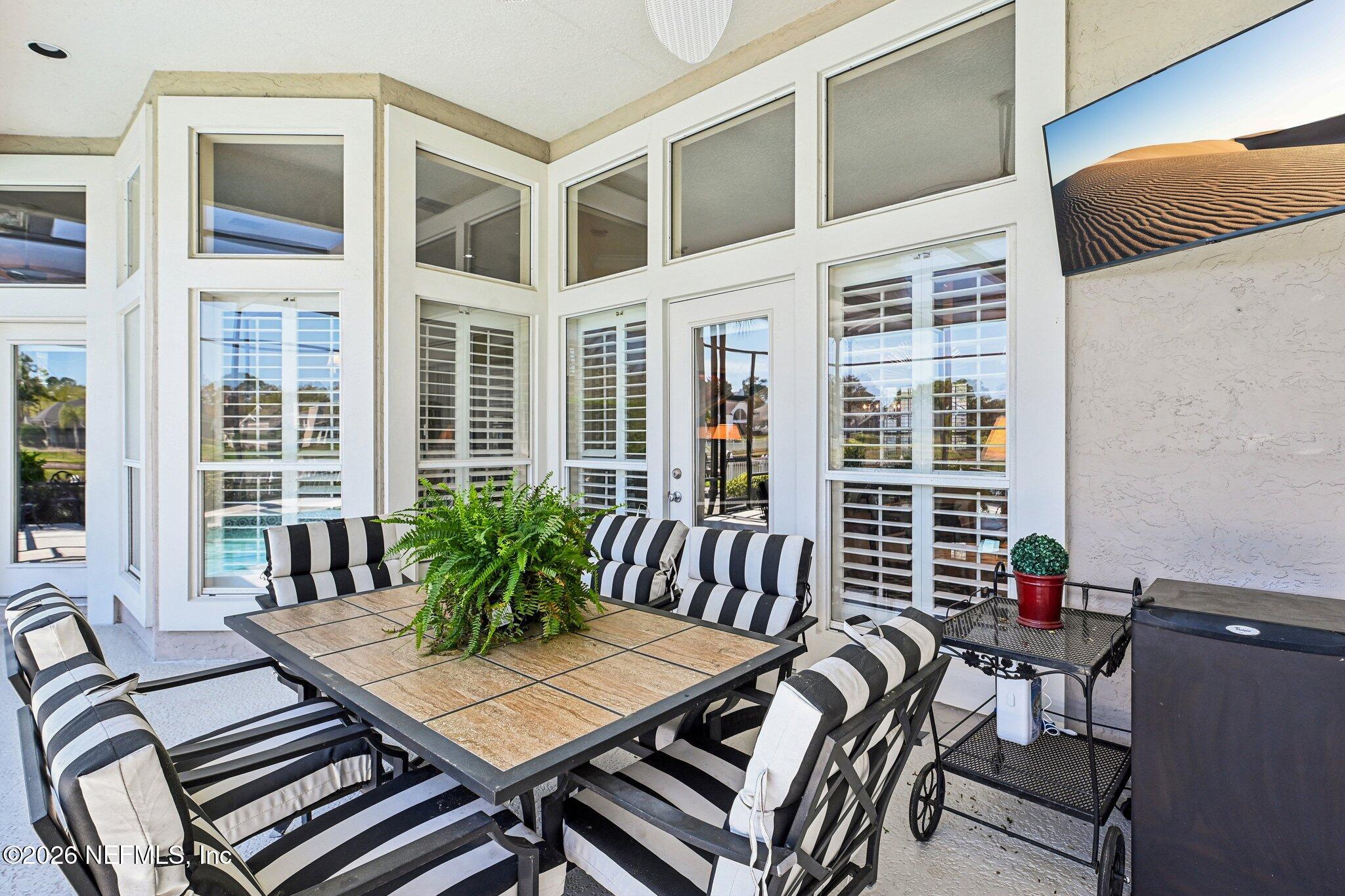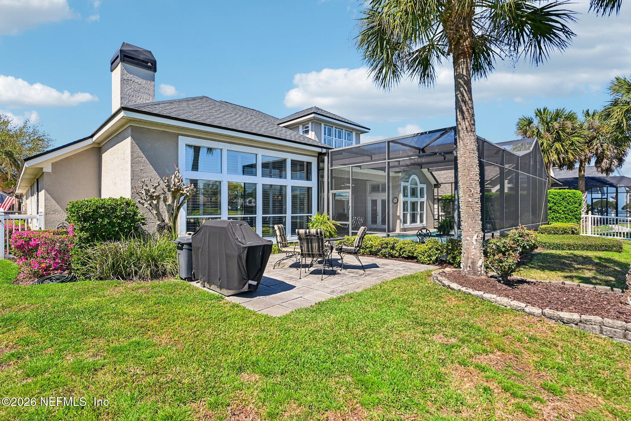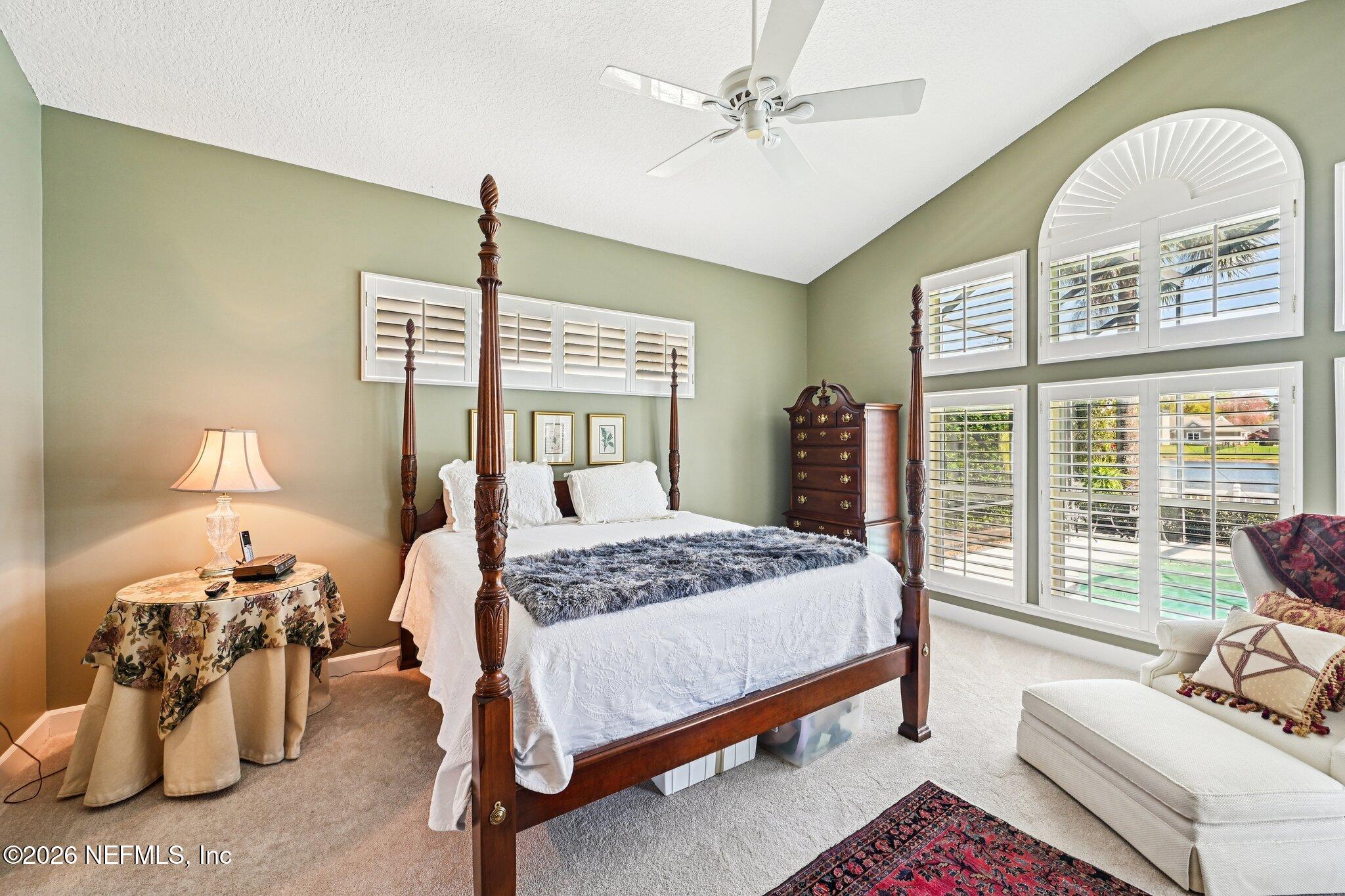 Welcome Home! To this highly desirable home in Jax Golf & Country Club on a beautiful lake lot! This spacious well-maintained home offers a formal living & dining room w/ carpet & wood laminate flooring throughout. The flexible floor plan includes a 5th bedroom guest suite w/ a private bath. The primary suite features walk-in closets with built-in shelving, updated dual vanities, a seamless glass shower, & a separate tub. The kitchen showcases white cabinets, solid surface countertops, & SS appliances. Enjoy a laundry room w/ cabinet storage and sink, shutters throughout, water softener system, smart thermostat, & smoke detectors, plus two AC systems (1 yr old). Step outside to a screened pool enclosure w/ a gas-heated pool & hot tub, a fenced yard w/ an additional invisible fence, & a circular driveway for extra parking. NEW roof 2026.