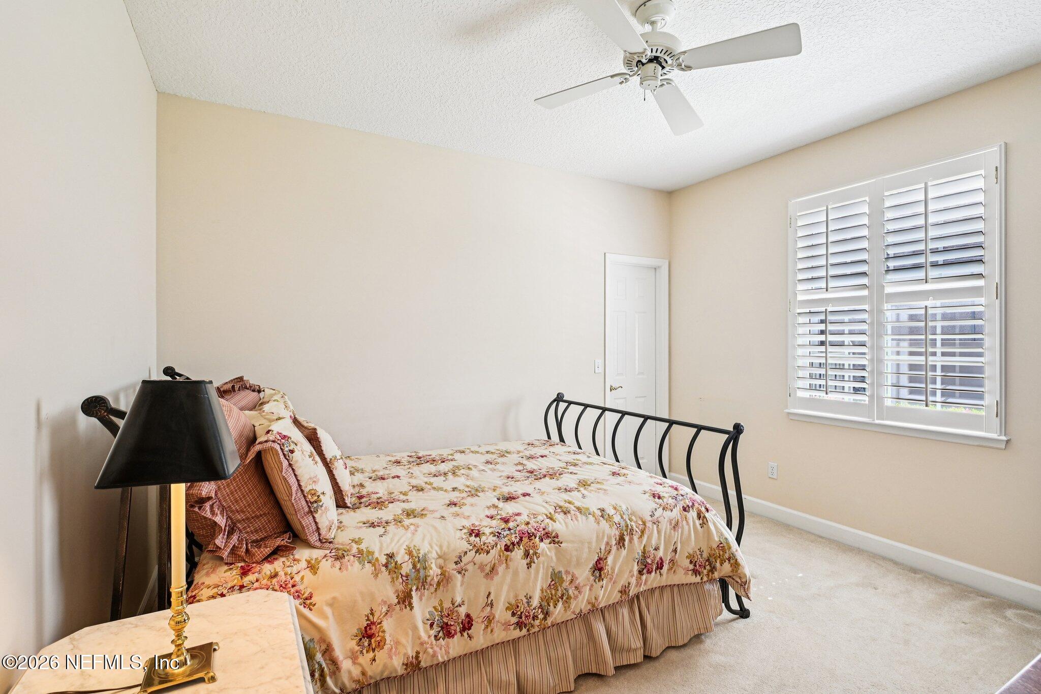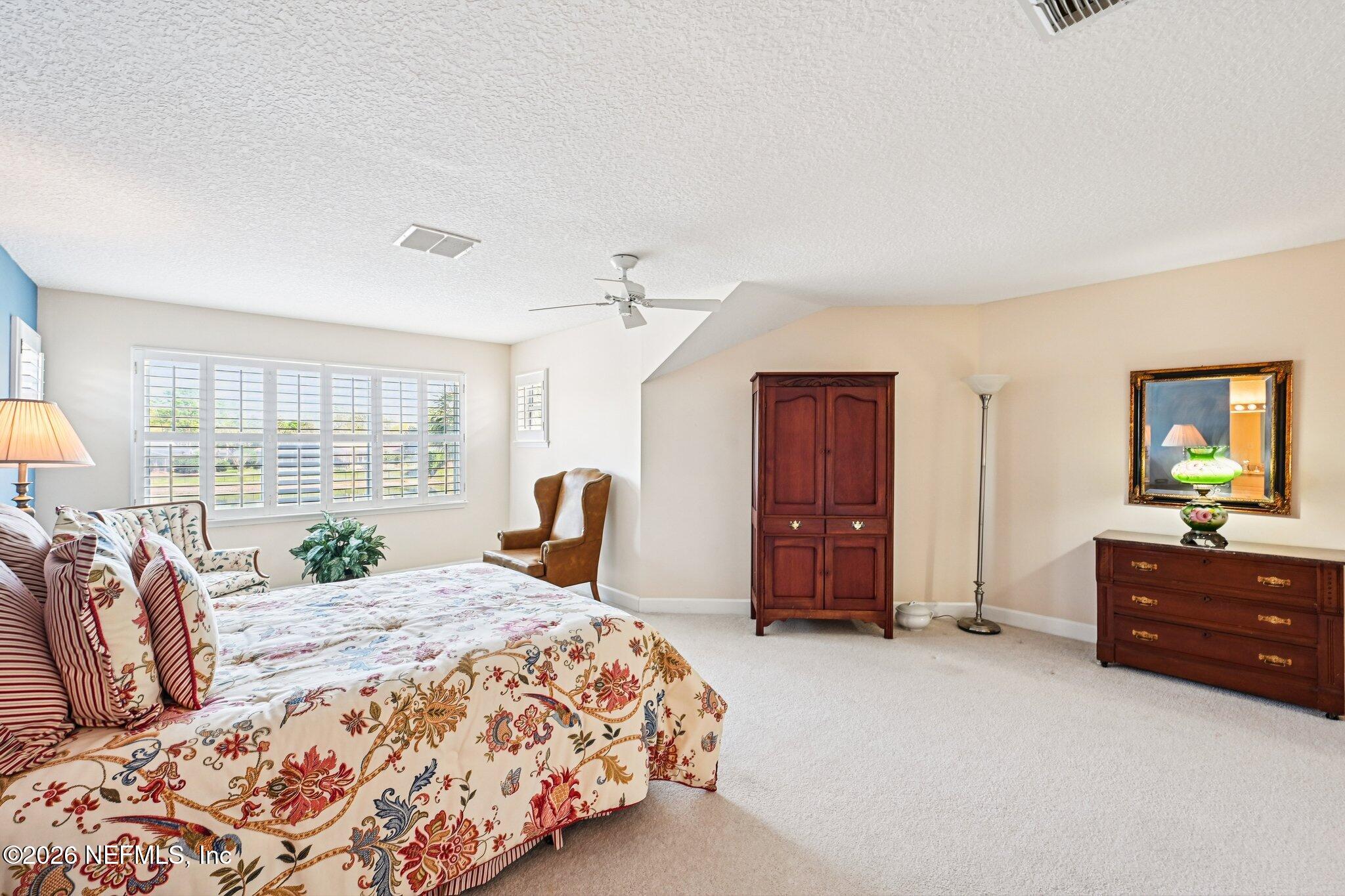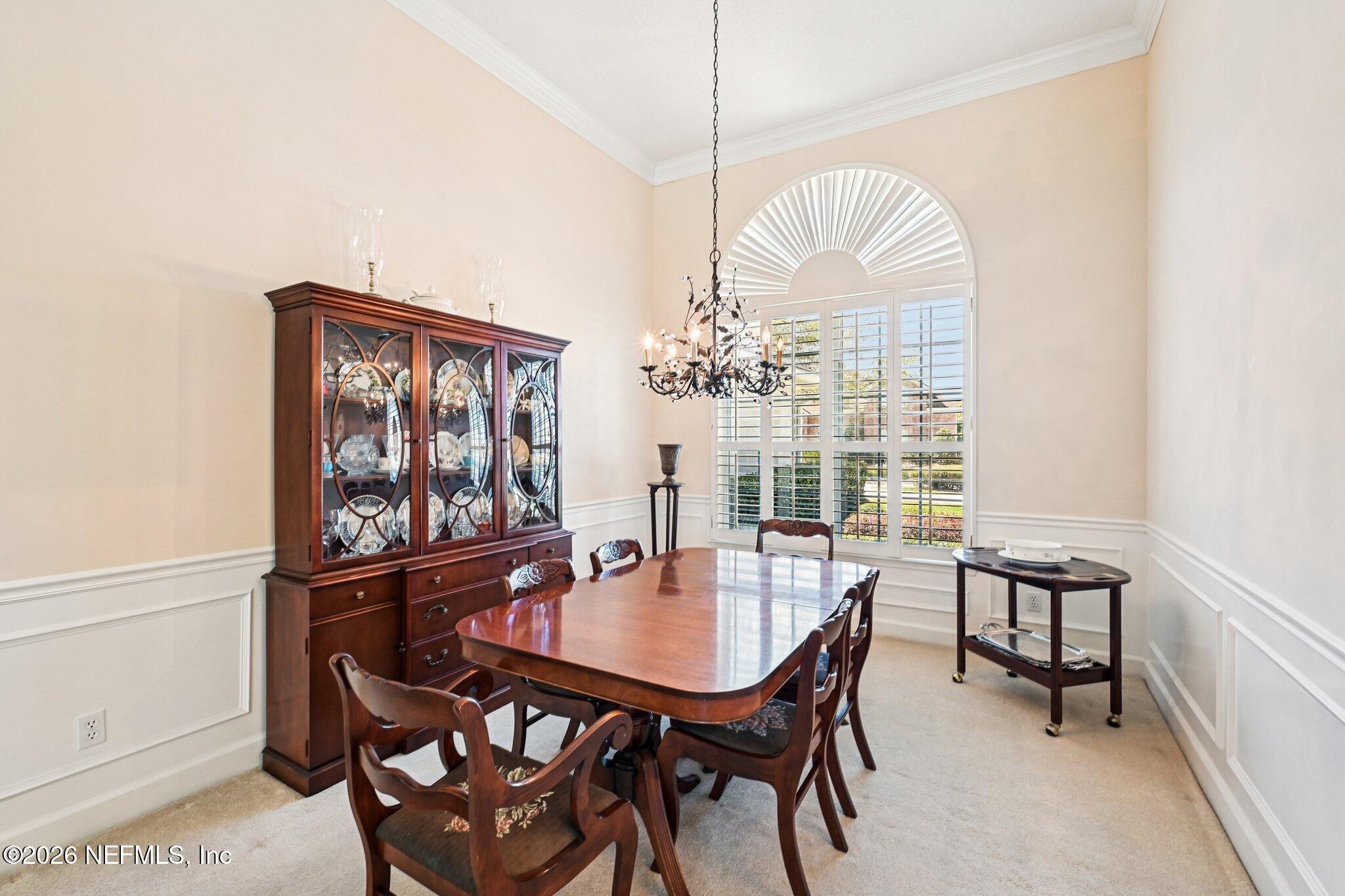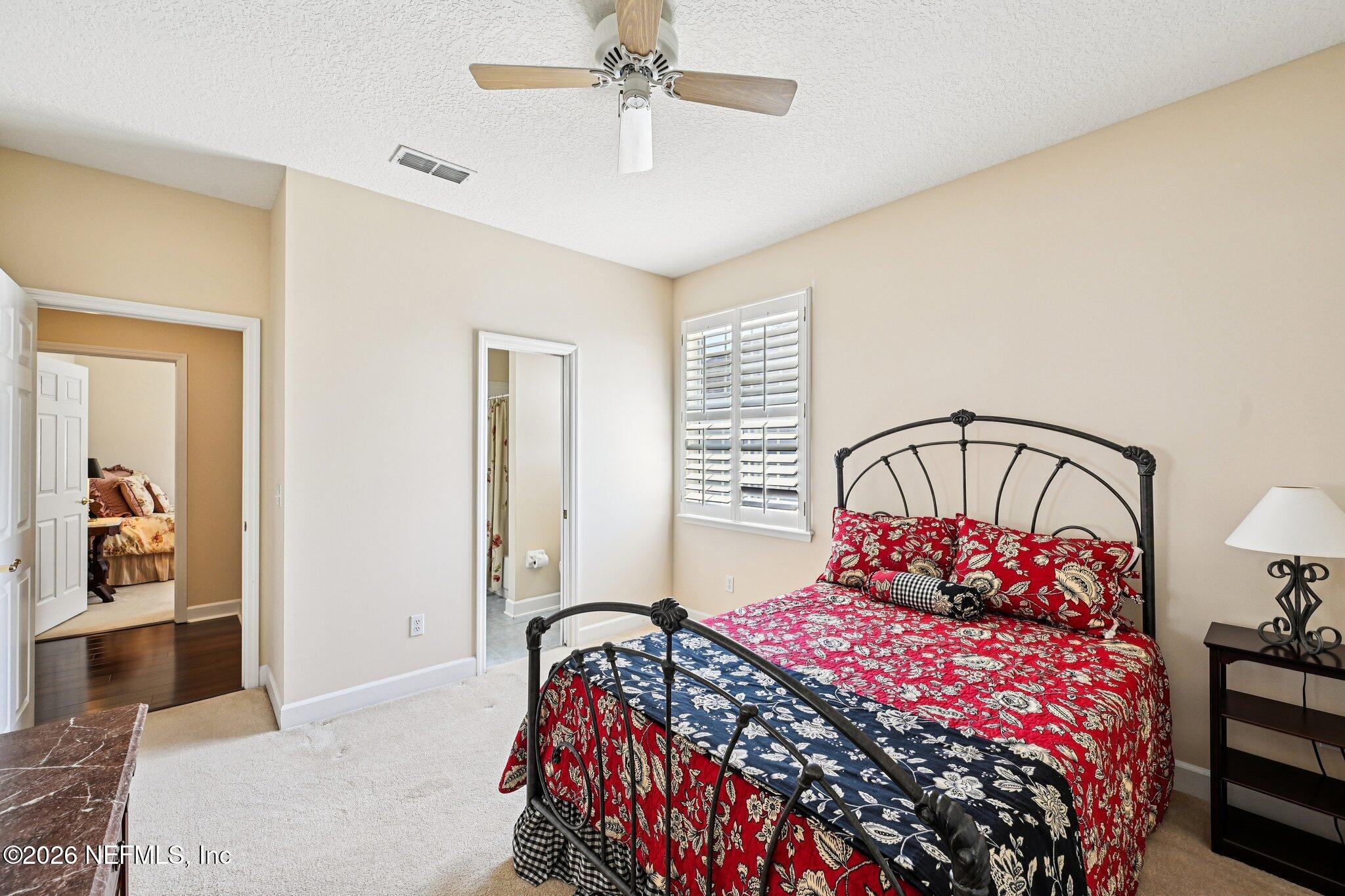Welcome Home! To this highly desirable home in Jax Golf & Country Club on a beautiful lake lot! This spacious well-maintained home offers a formal living & dining room w/ carpet & wood laminate flooring throughout. The flexible floor plan includes a 5th bedroom guest suite w/ a private bath. The primary suite features walk-in closets with built-in shelving, updated dual vanities, a seamless glass shower, & a separate tub. The kitchen showcases white cabinets, solid surface countertops, & SS appliances. Enjoy a laundry room w/ cabinet storage and sink, shutters throughout, water softener system, smart thermostat, & smoke detectors, plus two AC systems (1 yr old). Step outside to a screened pool enclosure w/ a gas-heated pool & hot tub, a fenced yard w/ an additional invisible fence, & a circular driveway for extra parking. NEW roof 2026.