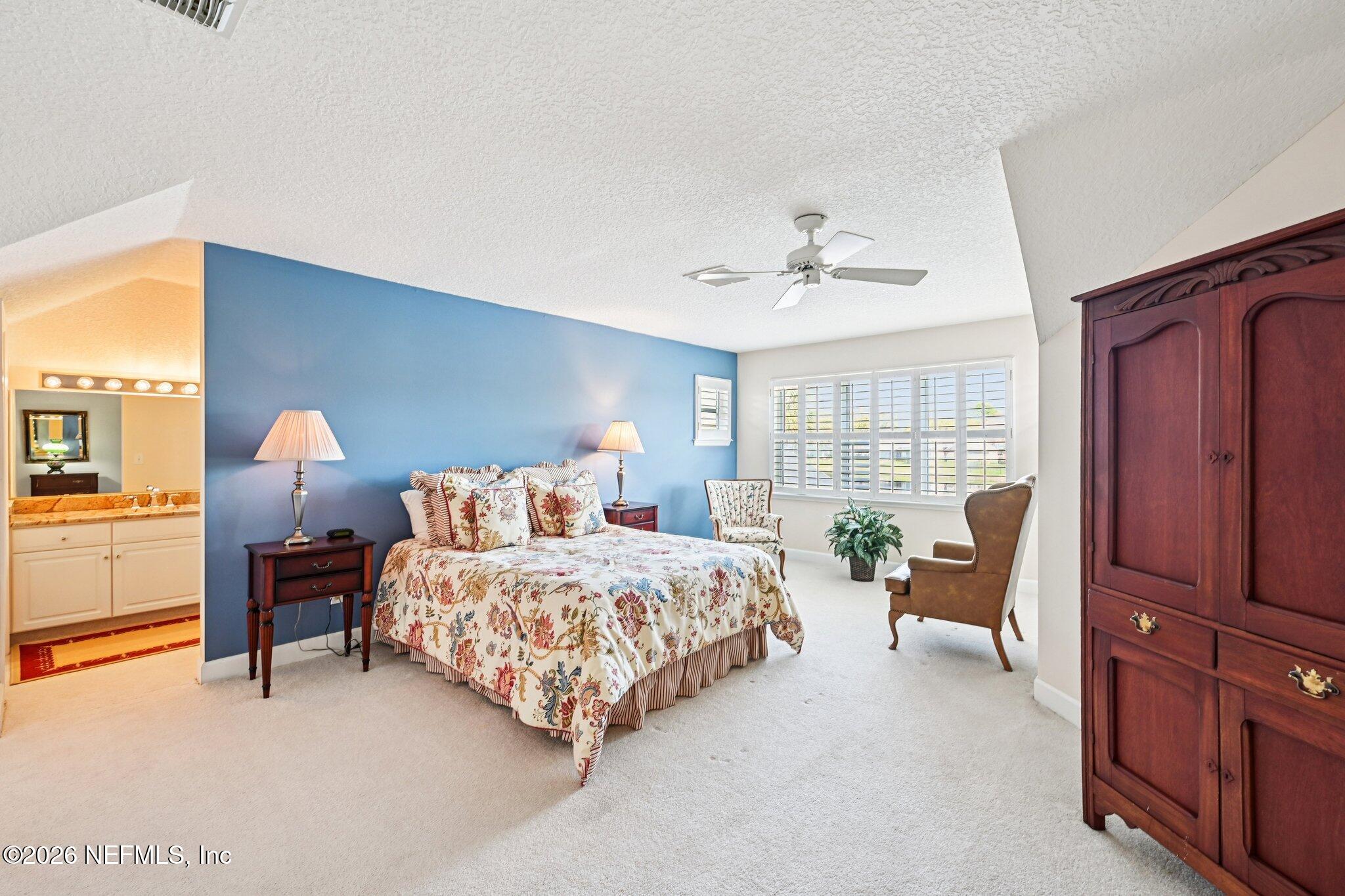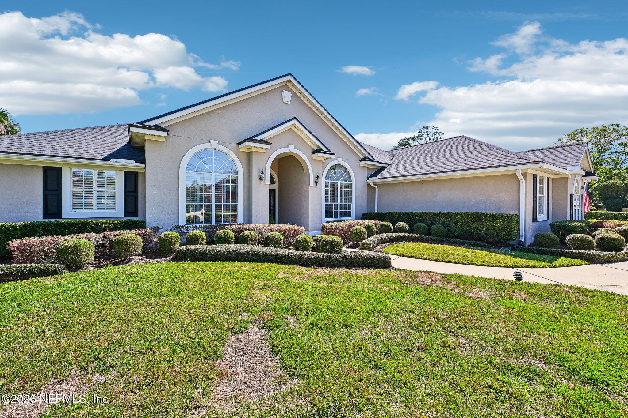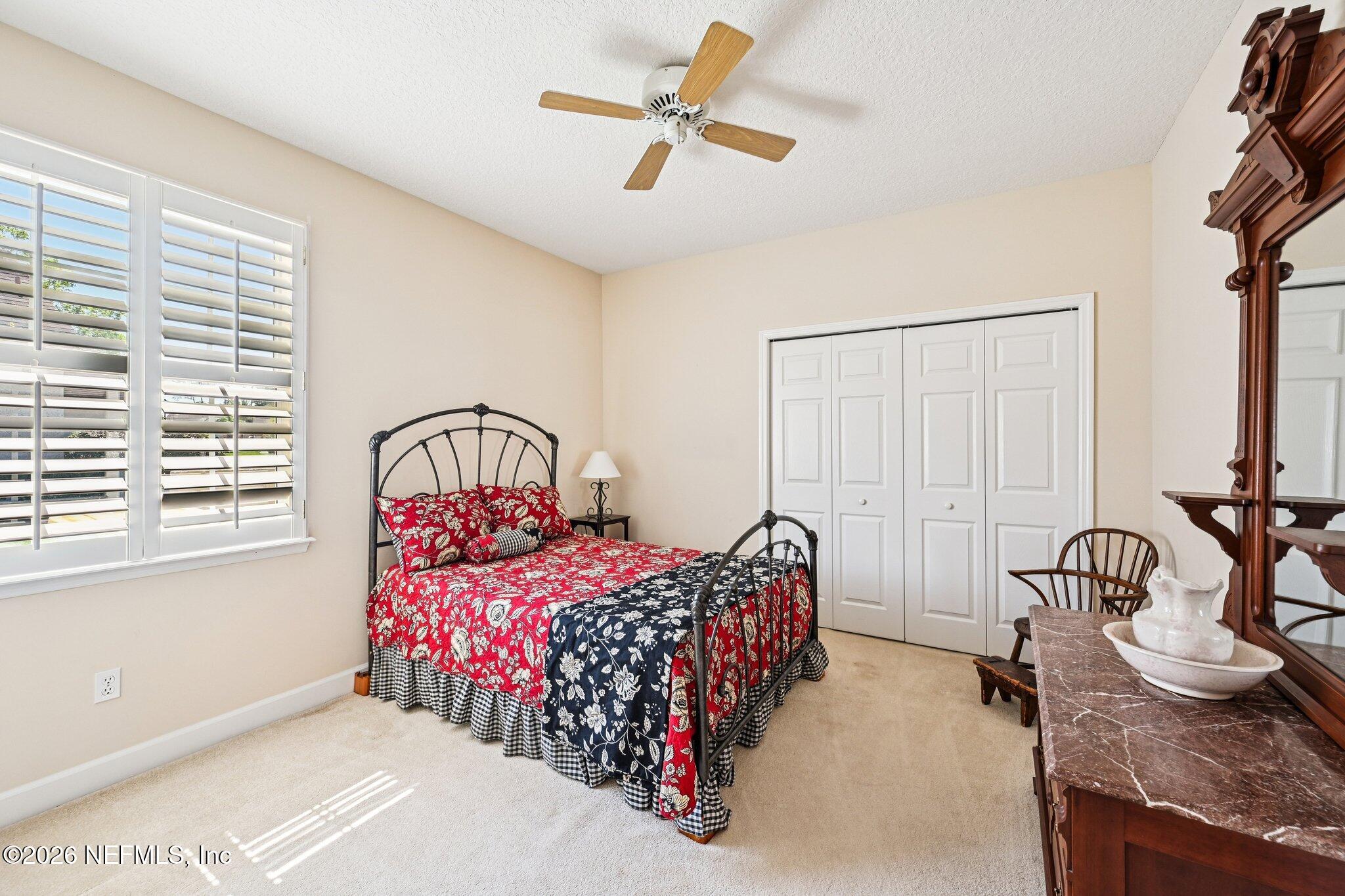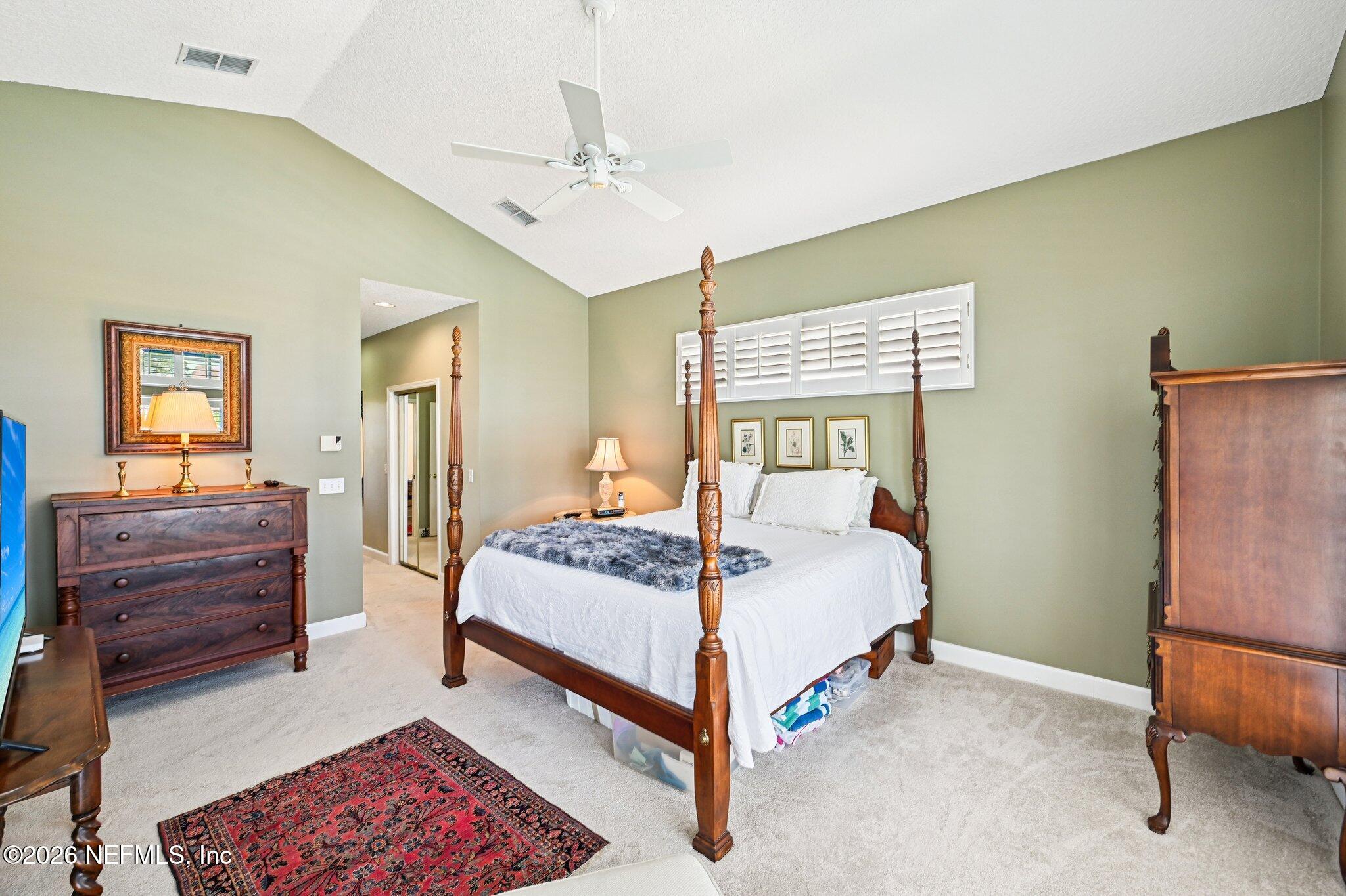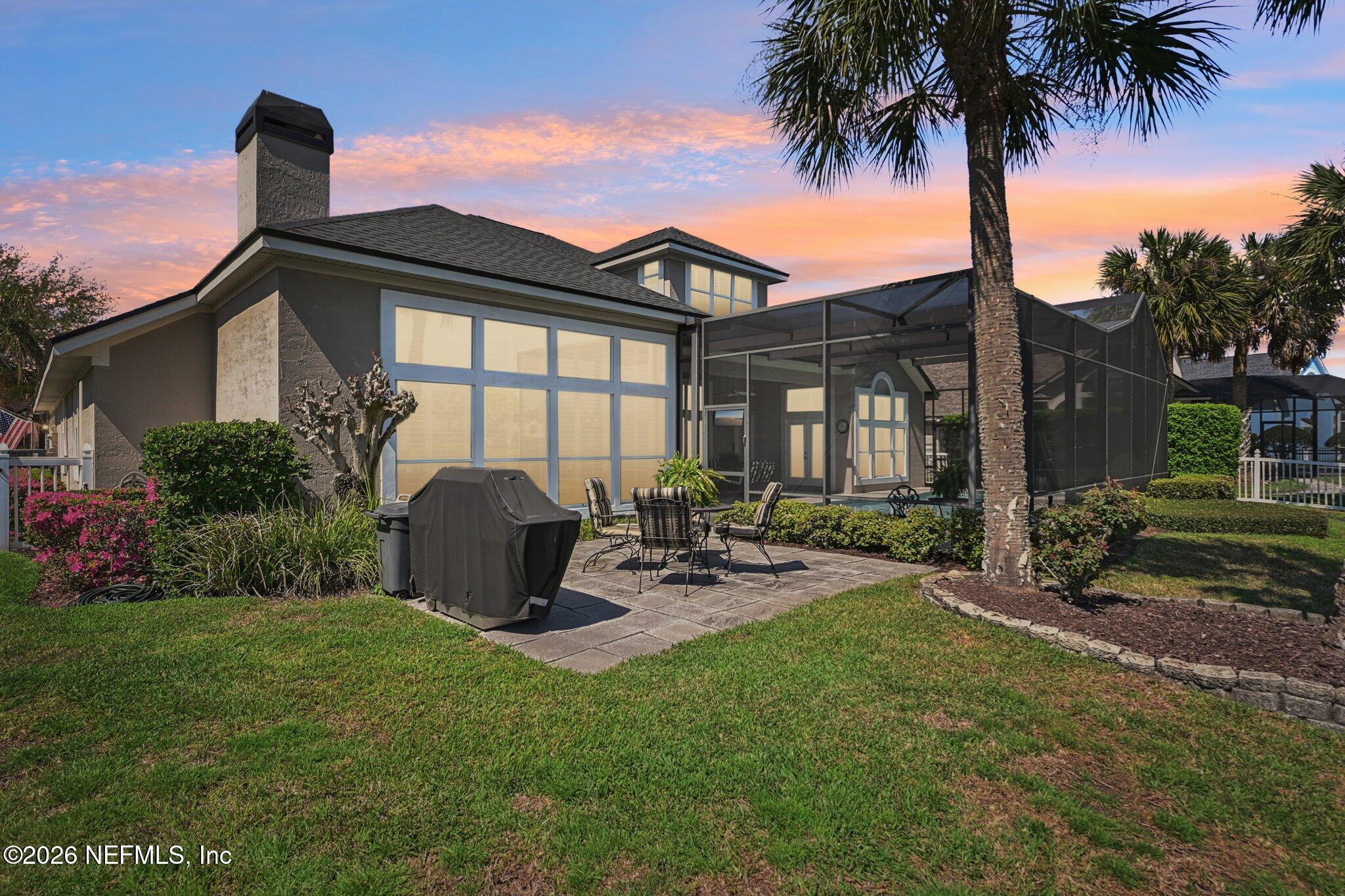 Welcome Home! To this highly desirable home in Jax Golf & Country Club on a beautiful lake lot! This spacious well-maintained home offers a formal living & dining room w/ carpet & wood laminate flooring throughout. The flexible floor plan includes a 5th bedroom guest suite w/ a private bath. The primary suite features walk-in closets with built-in shelving, updated dual vanities, a seamless glass shower, & a separate tub. The kitchen showcases white cabinets, solid surface countertops, & SS appliances. Enjoy a laundry room w/ cabinet storage and sink, shutters throughout, water softener system, smart thermostat, & smoke detectors, plus two AC systems (1 yr old). Step outside to a screened pool enclosure w/ a gas-heated pool & hot tub, a fenced yard w/ an additional invisible fence, & a circular driveway for extra parking. NEW roof 2026.