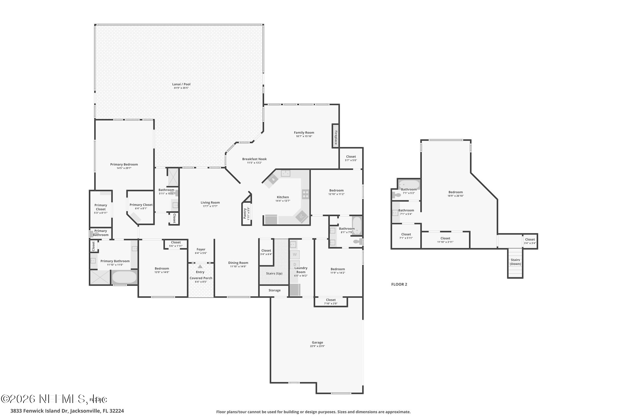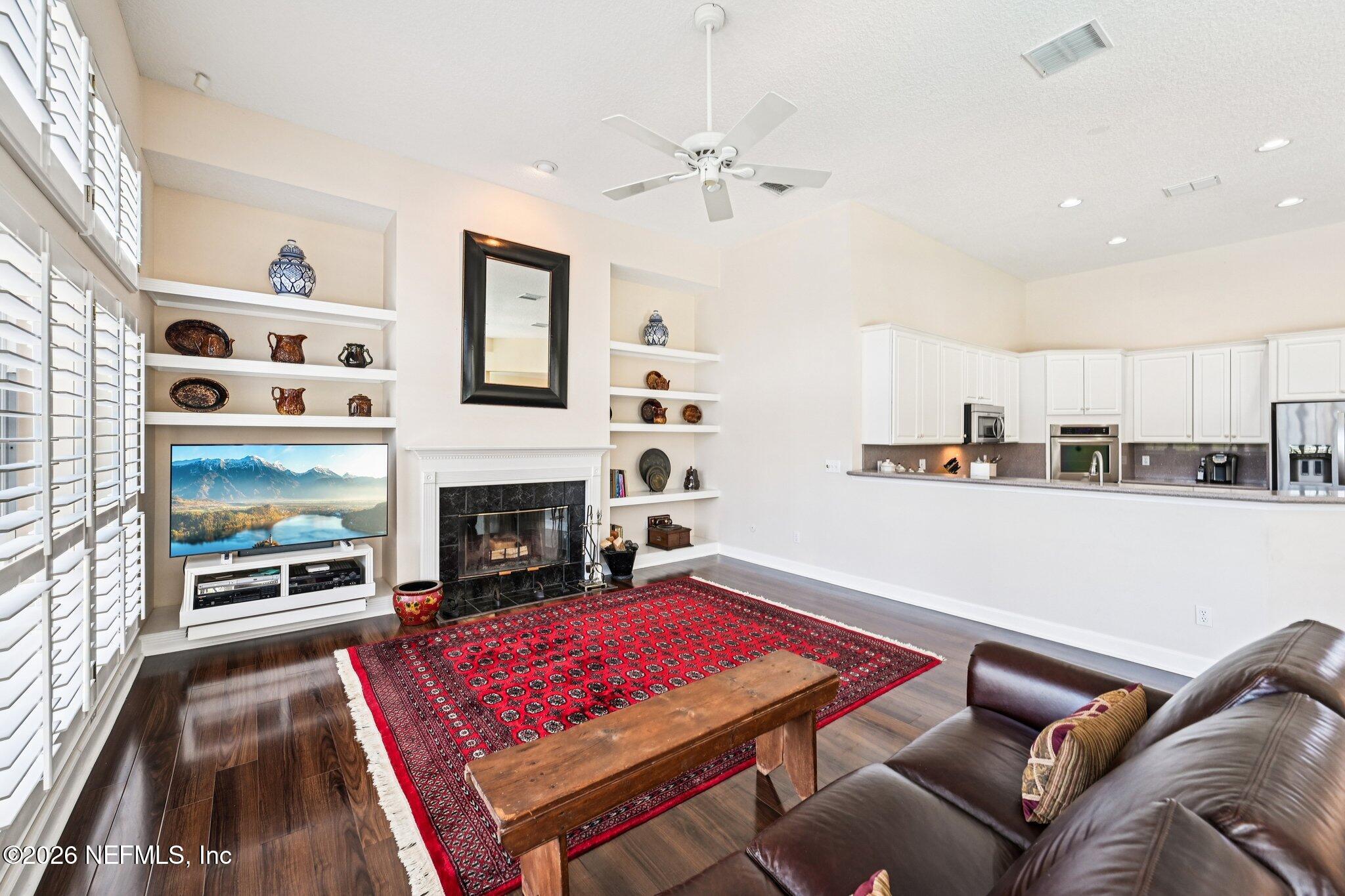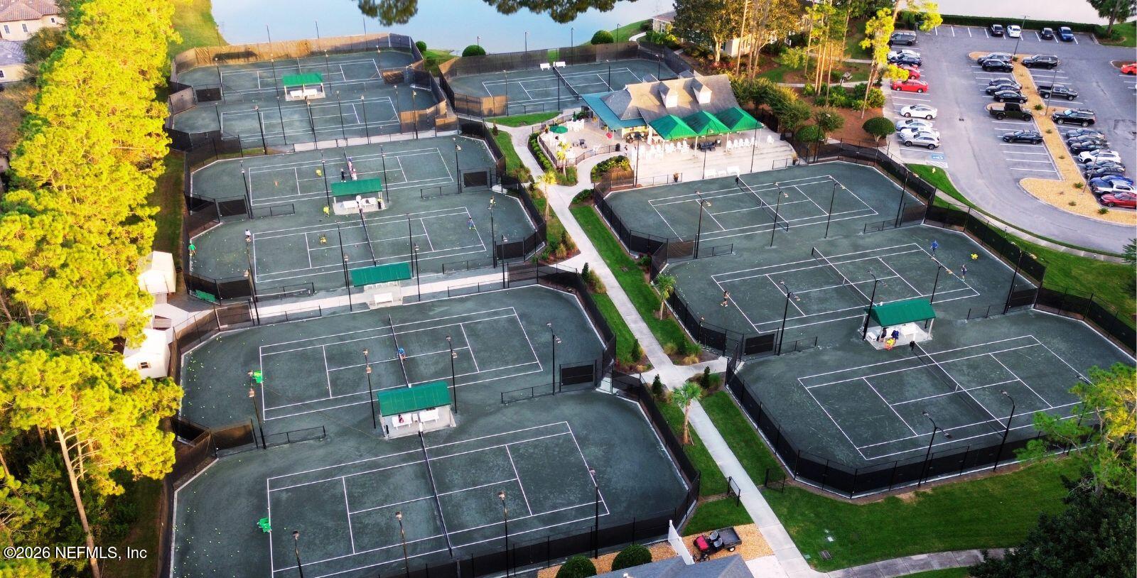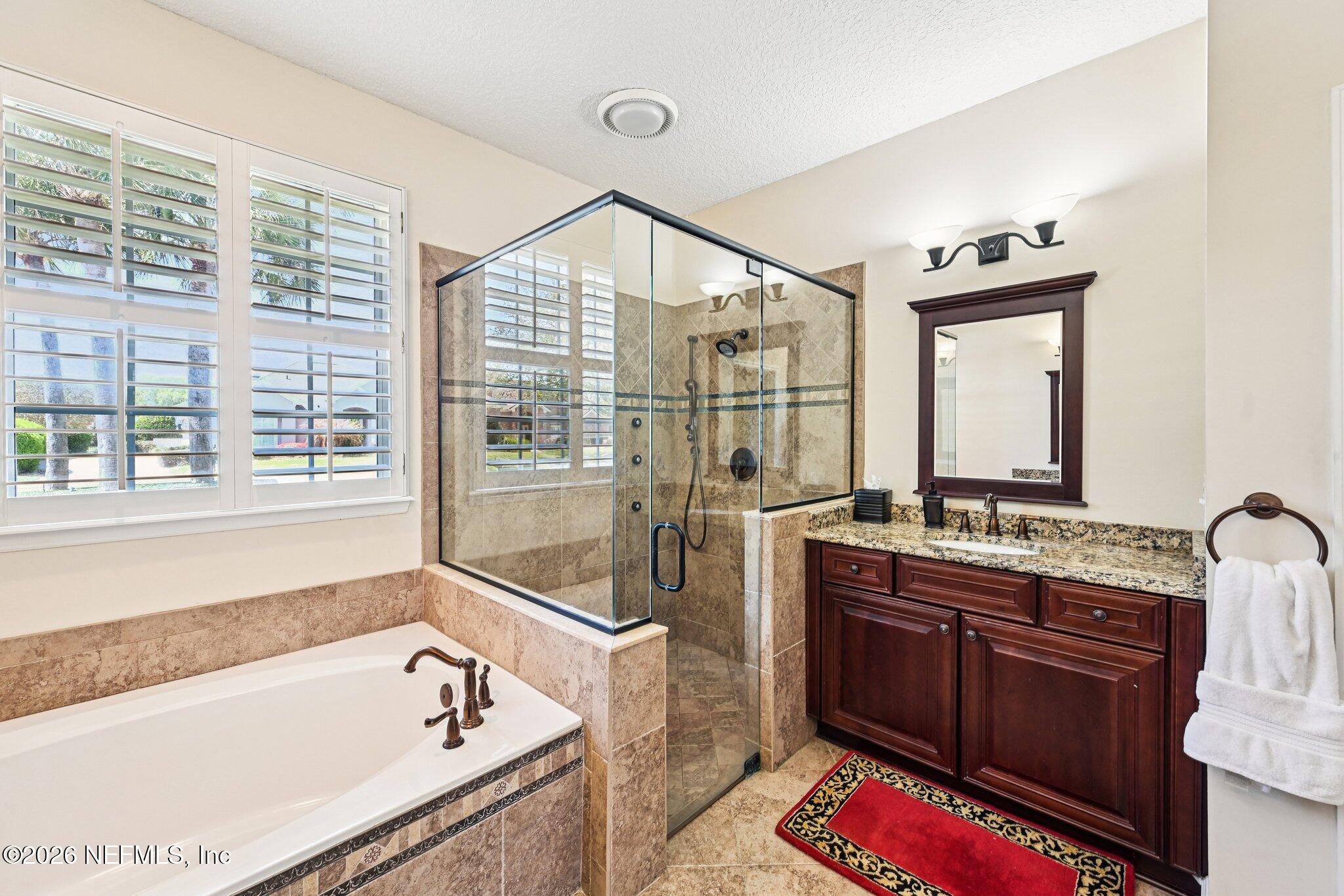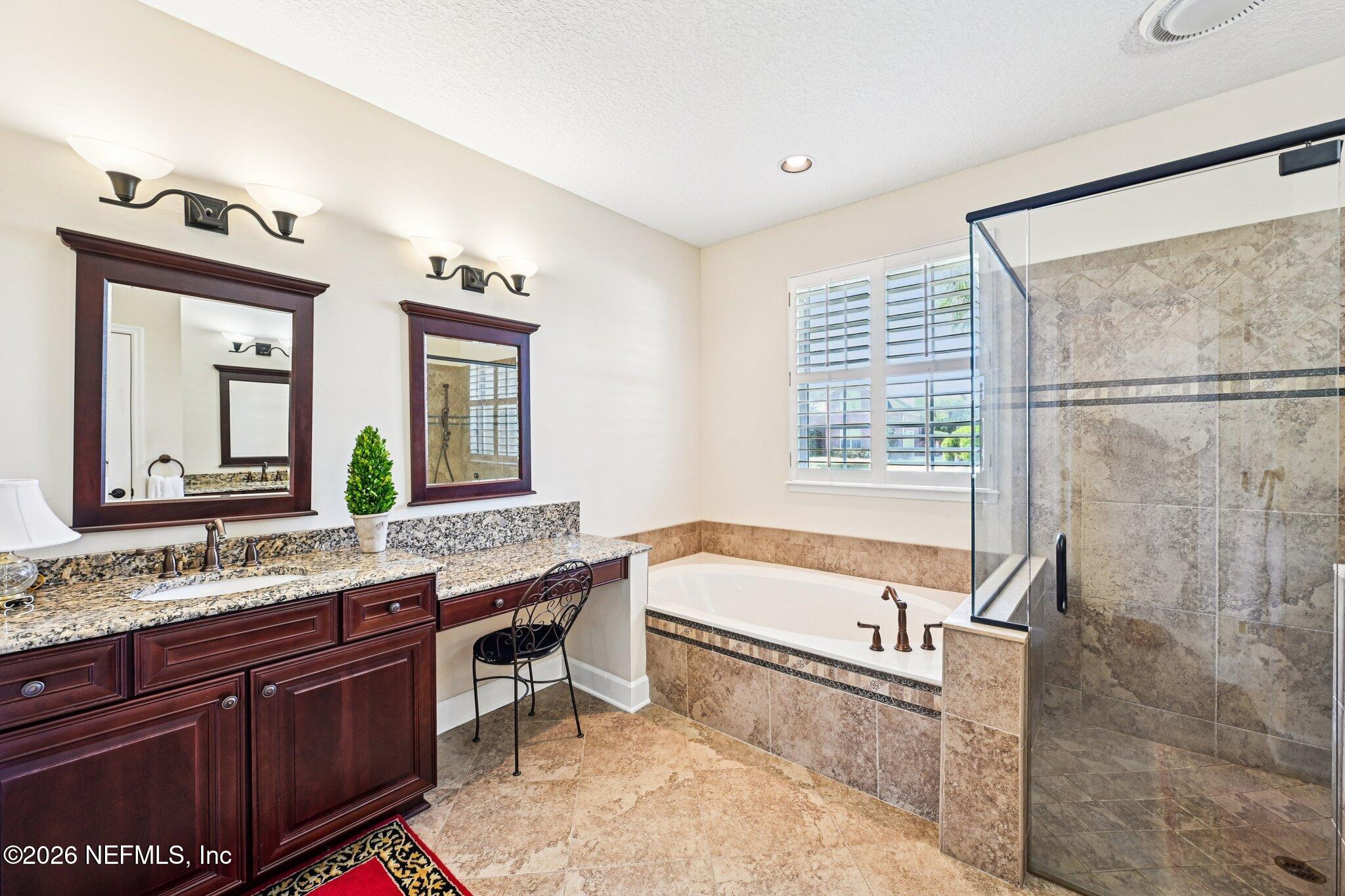 Welcome Home! To this highly desirable home in Jax Golf & Country Club on a beautiful lake lot! This spacious well-maintained home offers a formal living & dining room w/ carpet & wood laminate flooring throughout. The flexible floor plan includes a 5th bedroom guest suite w/ a private bath. The primary suite features walk-in closets with built-in shelving, updated dual vanities, a seamless glass shower, & a separate tub. The kitchen showcases white cabinets, solid surface countertops, & SS appliances. Enjoy a laundry room w/ cabinet storage and sink, shutters throughout, water softener system, smart thermostat, & smoke detectors, plus two AC systems (1 yr old). Step outside to a screened pool enclosure w/ a gas-heated pool & hot tub, a fenced yard w/ an additional invisible fence, & a circular driveway for extra parking. NEW roof 2026.