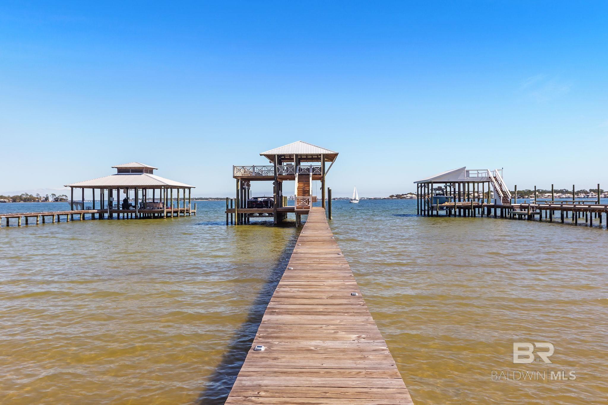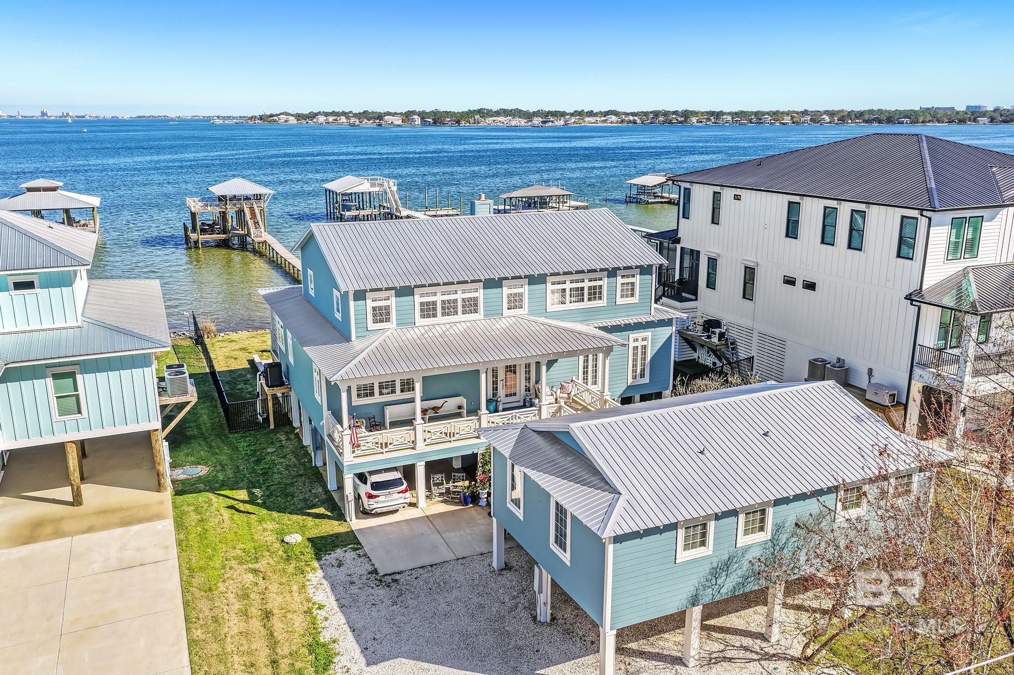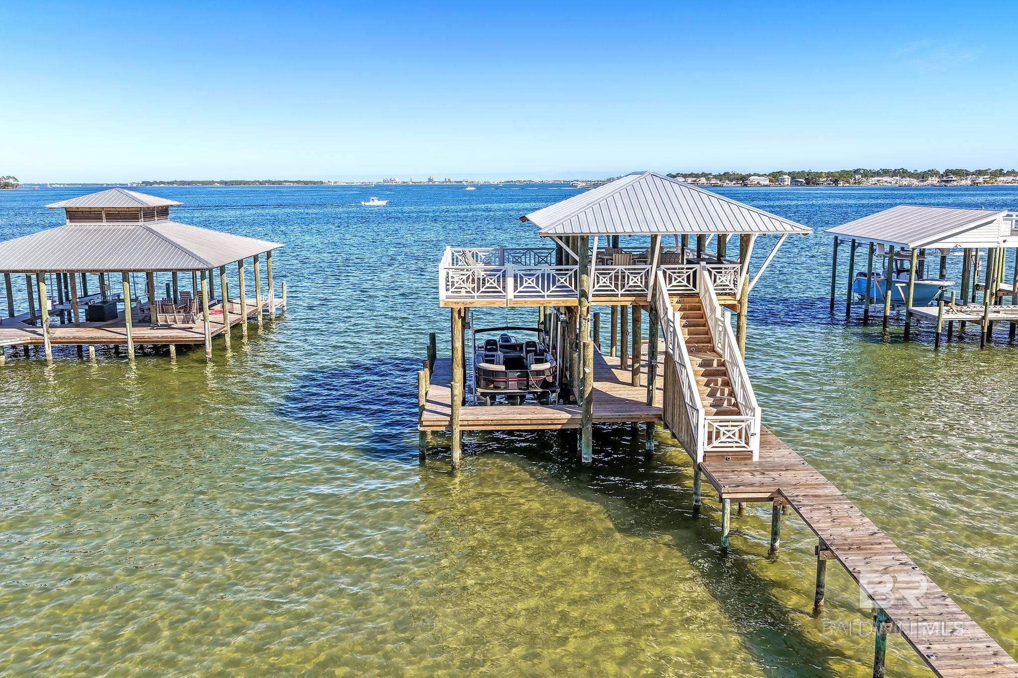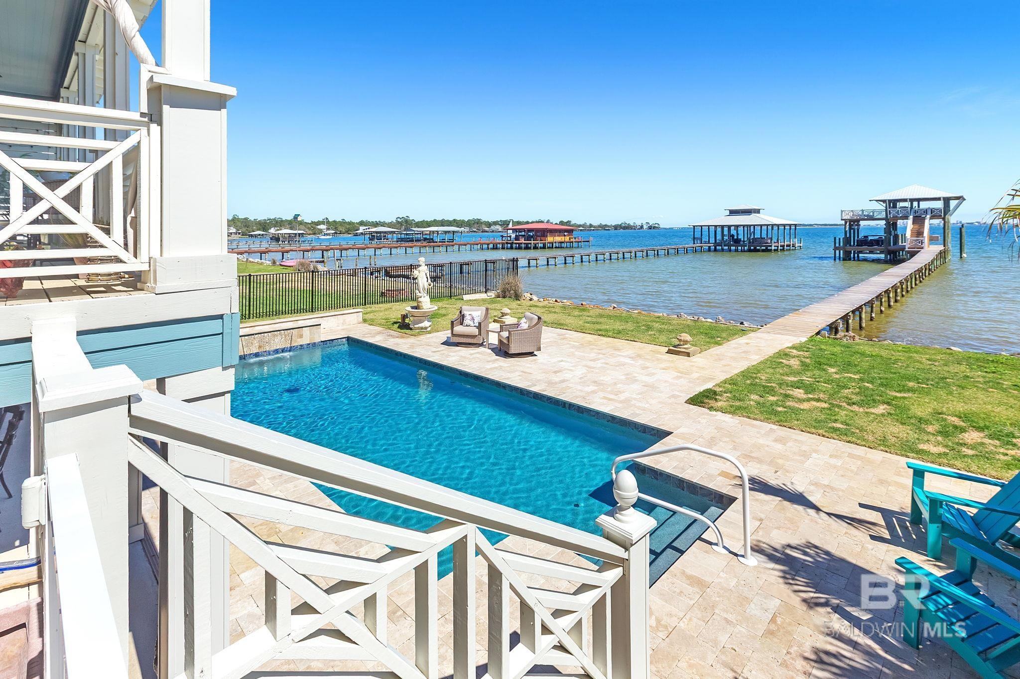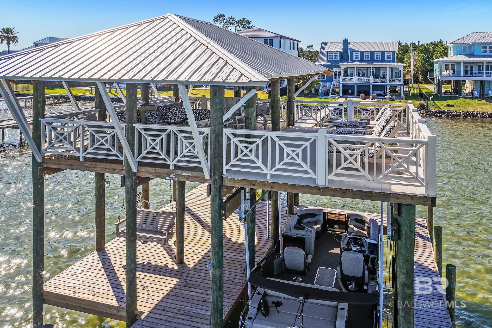 RARE BIG WATER SHORT-TERM RENTAL APPROVAL GUEST HOUSE CUSTOM PIER HEATED POOL Big-water home near Pirates Cove approved for short-term rentals, Perfectly positioned on the open waters of Arnica Bay in the Josephine boating community, this exceptional property combines breathtaking bay views, a custom two-level pier, heated saltwater pool, and a detached guest cottage creating the ultimate coastal compound for boating, entertaining, and hosting guests. THE PIER A TRUE DESTINATION ON THE BAY The custom-designed two-level pier is the centerpiece of the property. The covered upper deck captures steady bay breezes and panoramic water views Covered upper entertaining deck Two boat slips Boat lift Second slip for larger vessels Direct boating access to Pirates Cove Marina, Robinson Island, Perdido Pass, and the Gulf of Mexico MAIN RESIDENCE Designed to maximize views and comfortable coastal living. Spacious primary suite with private sitting room Water-view flex space currently used as an office Open living, dining, kitchen, and breakfast nook Built-in storage throughout Elevator Upper Level Three additional bedrooms Large second living / media room Full bath with room to add another Attic storage RESORT-STYLE OUTDOOR LIVING Large heated & cooled saltwater pool with travertine patio Expansive covered entertaining area under the home Waterside back porch overlooking Arnica Bay Classic Southern Living-style front porch Hot-water outdoor shower Irrigated sodded yard DETACHED GUEST COTTAGE Charming 2 bedroom / 1.5 bath guest cottage (approx. 940 sq ft) ideal for visiting guests, extended family, or additional short-term rental income potential. PRIME BOATING LOCATION Located in the heart of the beloved Josephine waterfront community, just a short walk or golf cart ride to: Pirates Cove Marina & Restaurant BIG WATER SHORT-TERM RENTAL APPROVAL GUEST HOUSE CUSTOM PIER HEATED POOL Buyer to verify all information during due diligence.